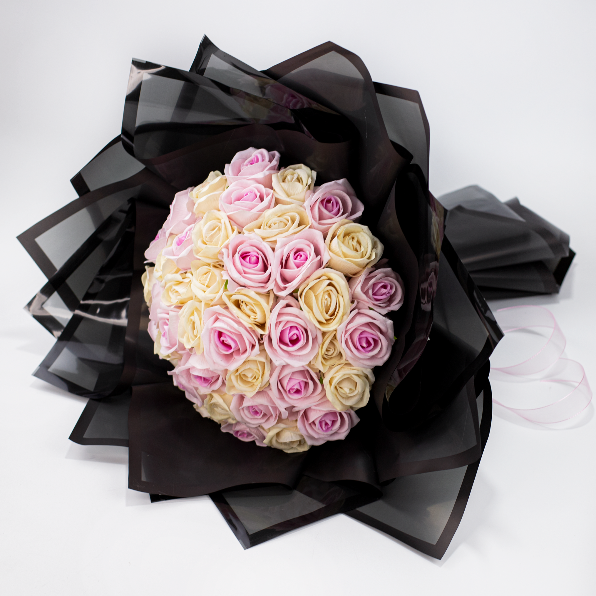 41 gül konseptli isteme buketi (pembe & krem tonlarında)