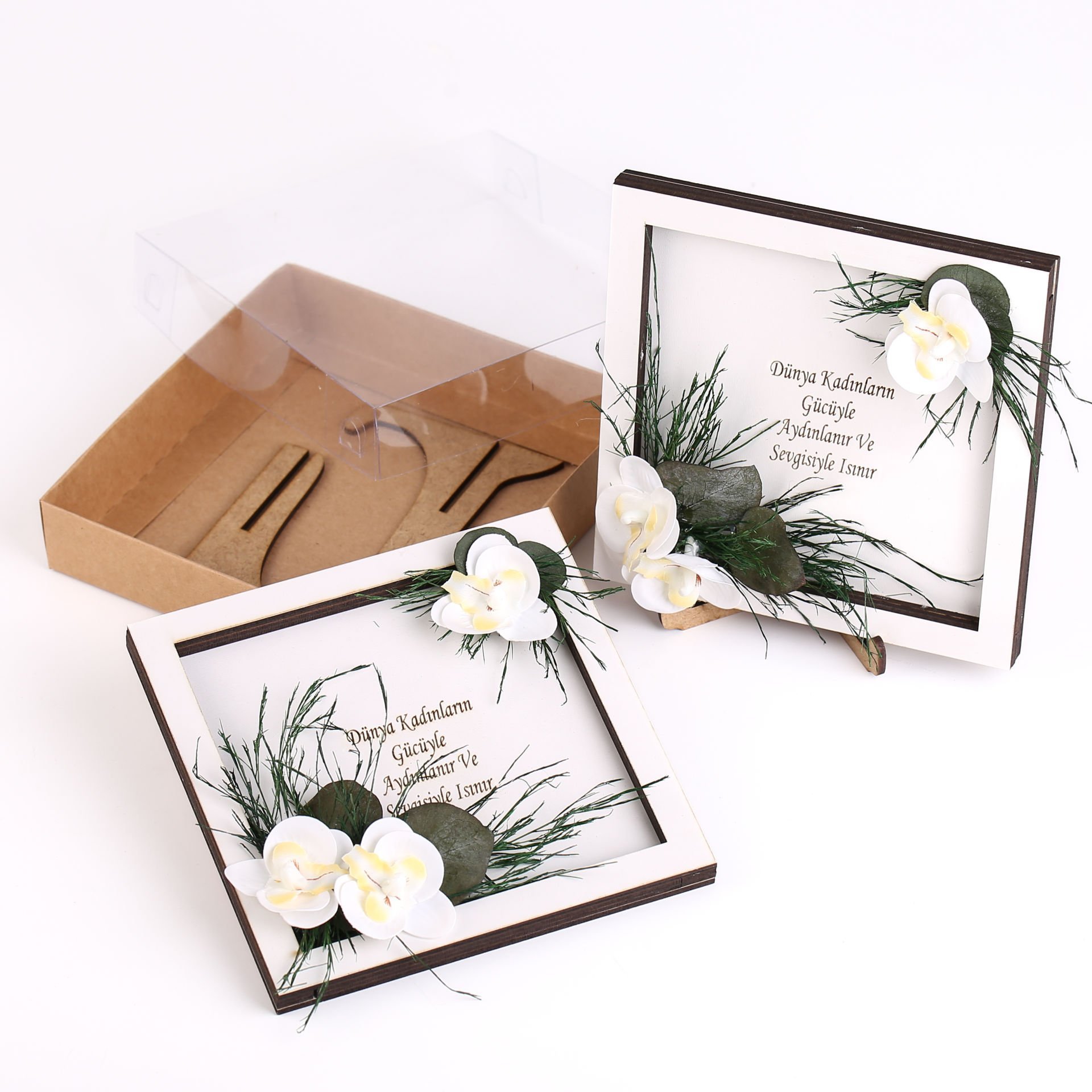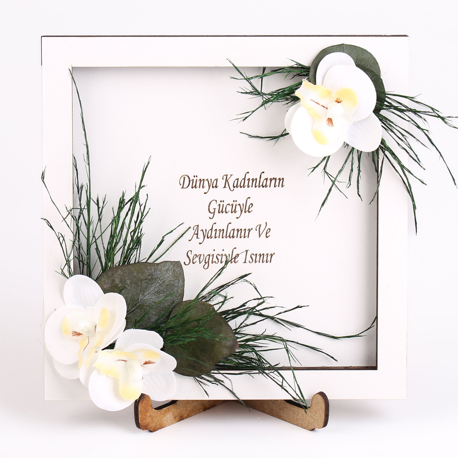 15x15 cm ölçülerindeki bu şık çerçeve, Kadınlar Gününe özel tasarlanmış anlamlı bir Kadınlar Günü hediyesidir. İki köşesindeki zarif çiçek detayları ve sağlam ayaklığıyla masa üzerinde dekoratif bir kullanım sağlar; dilerseniz duvara da asılabilir. Özel süslemeleri sayesinde sevdiklerinize değer ve sevgi hissettirecek bu çerçeve, hem estetik hem anlamlı bir hediye arayanlar için ideal bir tercihtir.