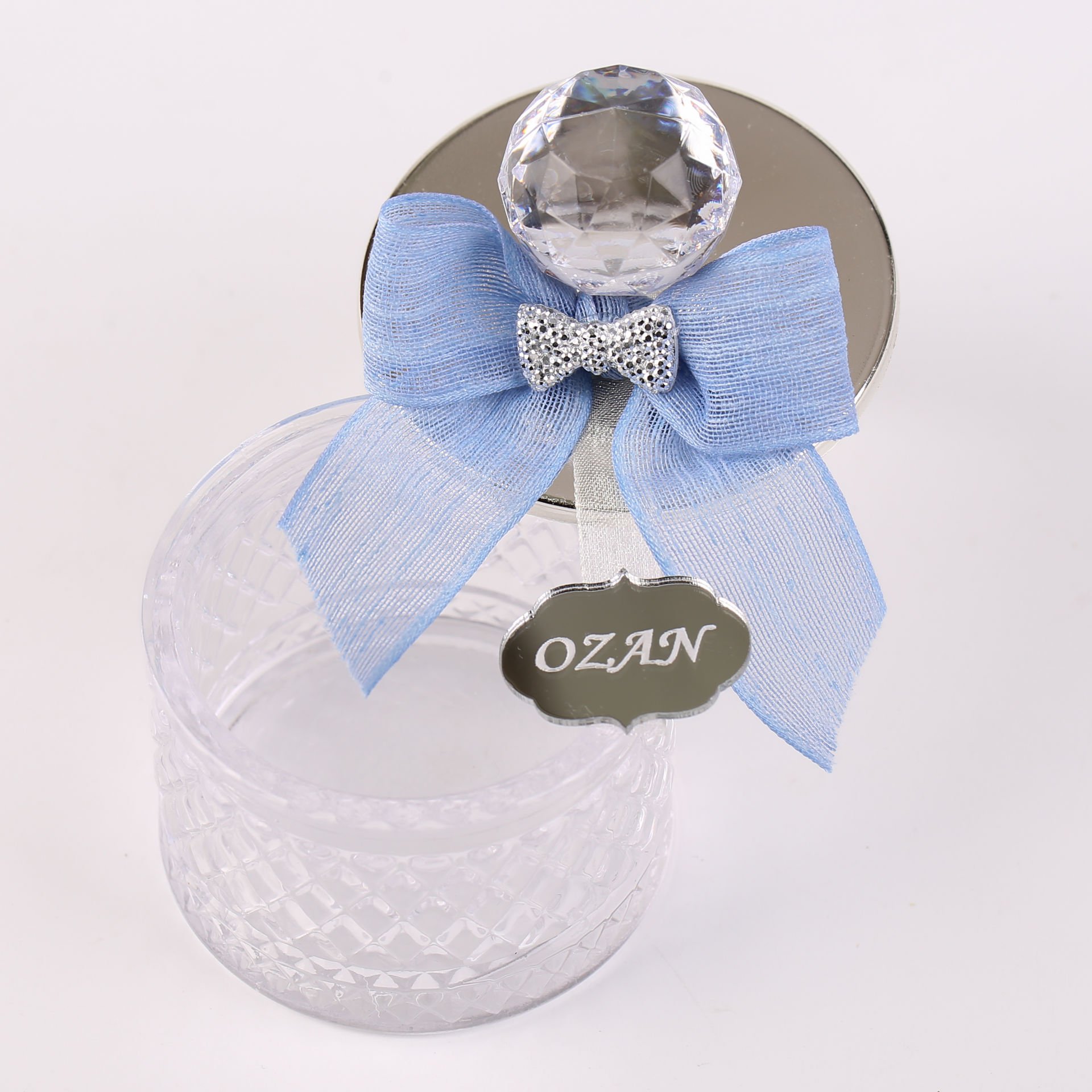 Baklava desenli cam gövdesi ve kristal tepeli kapağıyla hazırlanan şekerlik / drajelik; zarif ve şık görünümüyle söz, nişan, düğün, kına gecesi, nikah, mevlit ve özel gün organizasyonlarında ikramlık sunumları veya hediyelik hazırlıkları için kullanılabilecek estetik bir tamamlayıcıdır. Dekoratif tasarımı sayesinde hem konseptinize uyum sağlar hem de uzun süre hatıra olarak saklanabilir.