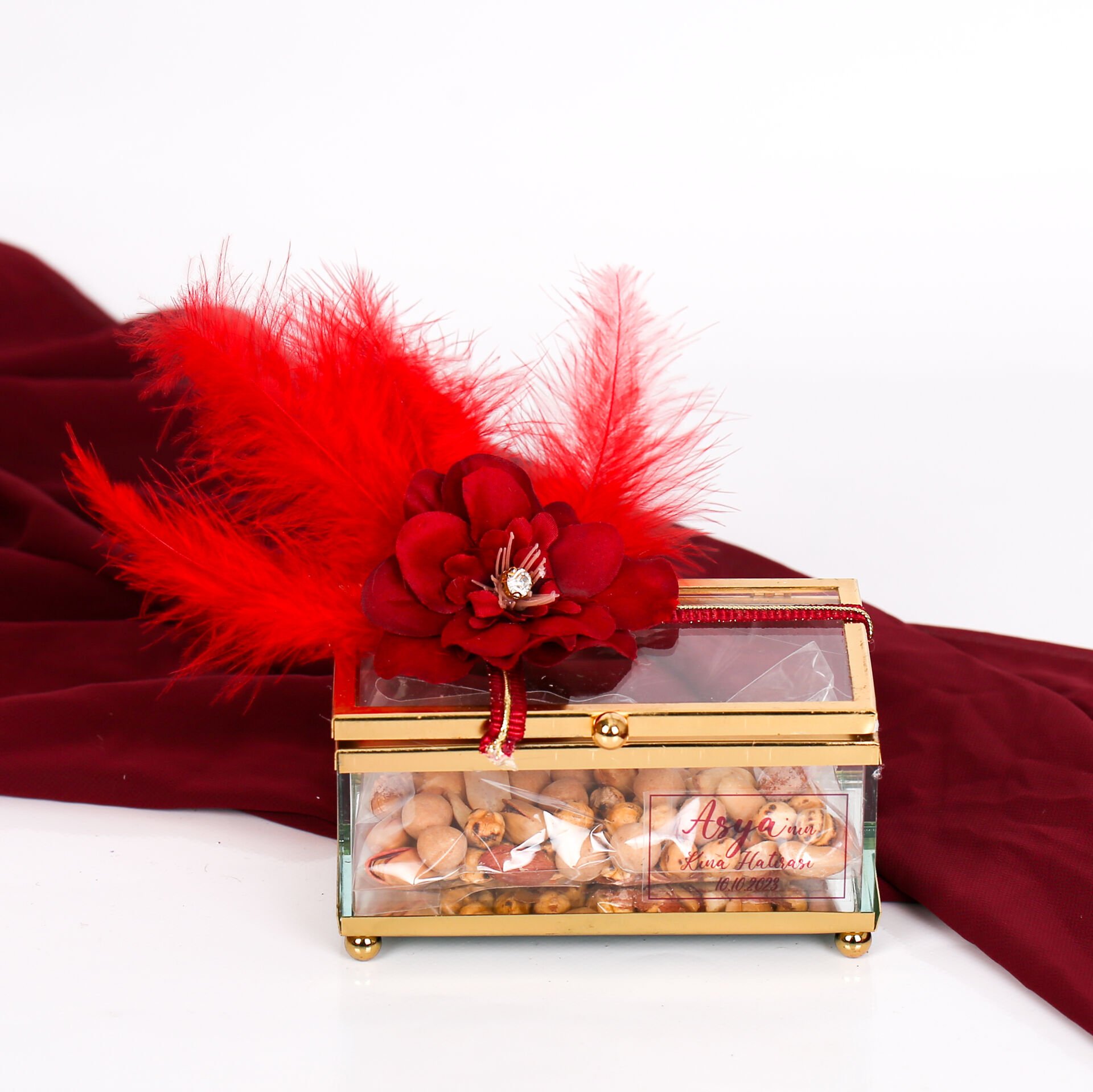 Çerez kutusu veya cam kutu, şık tasarımıyla düğün, nişan, kına gecesi gibi özel günlerde ikramlıkları sunmak için mükemmel bir alternatiftir. 8 x 13 x 6 cm boyutlarında olan bu kutu, hem estetik hem de kullanışlıdır. İkramlıkları ya da küçük hediyeleri sunmak için zarif bir seçenek olarak tercih edilebilir.