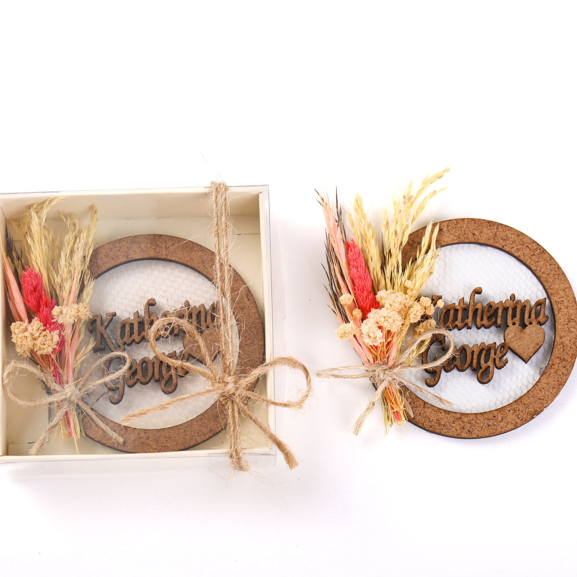 Doğal ve zarif tasarımıyla hazırlanan kişiselleştirilebilir çiçekli ahşap magnet, söz, nişan, kına, nikah ve özel organizasyonlarda misafirlere dağıtılabilecek anlamlı bir hediyelik seçeneğidir. İsim, tarih veya özel not eklenebilen ahşap magnet hediyelik, dekoratif çiçek detaylarıyla estetik bir görünüm sunarken kalıcı bir hatıra oluşturur. Nikah hediyeliği, kına hediyeliği, söz nişan hediyelikleri ve organizasyon hatıralıkları arasında hem doğal hem şık bir alternatif olarak öne çıkar. Kutulu sunumu sayesinde hediye etmeye hazır şekilde hazırlanır.
