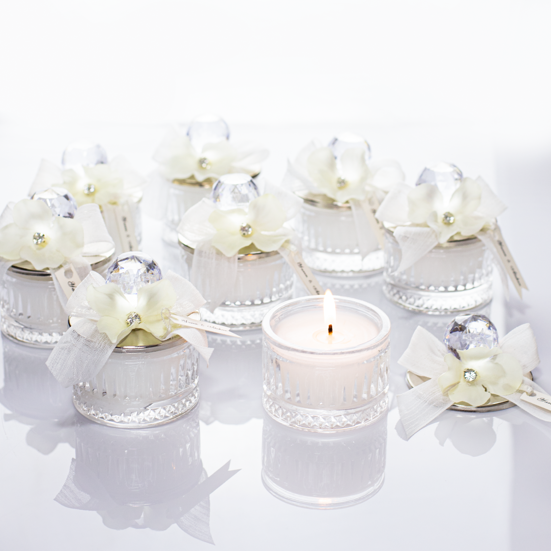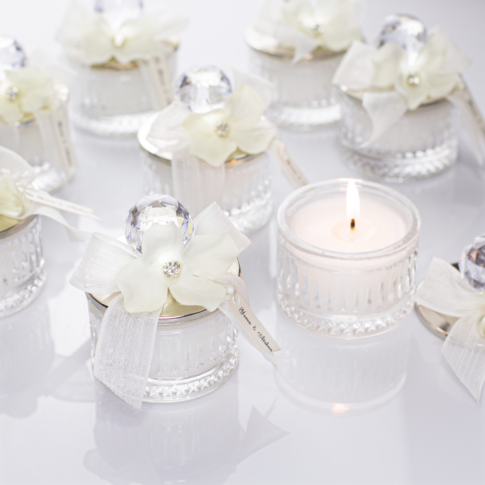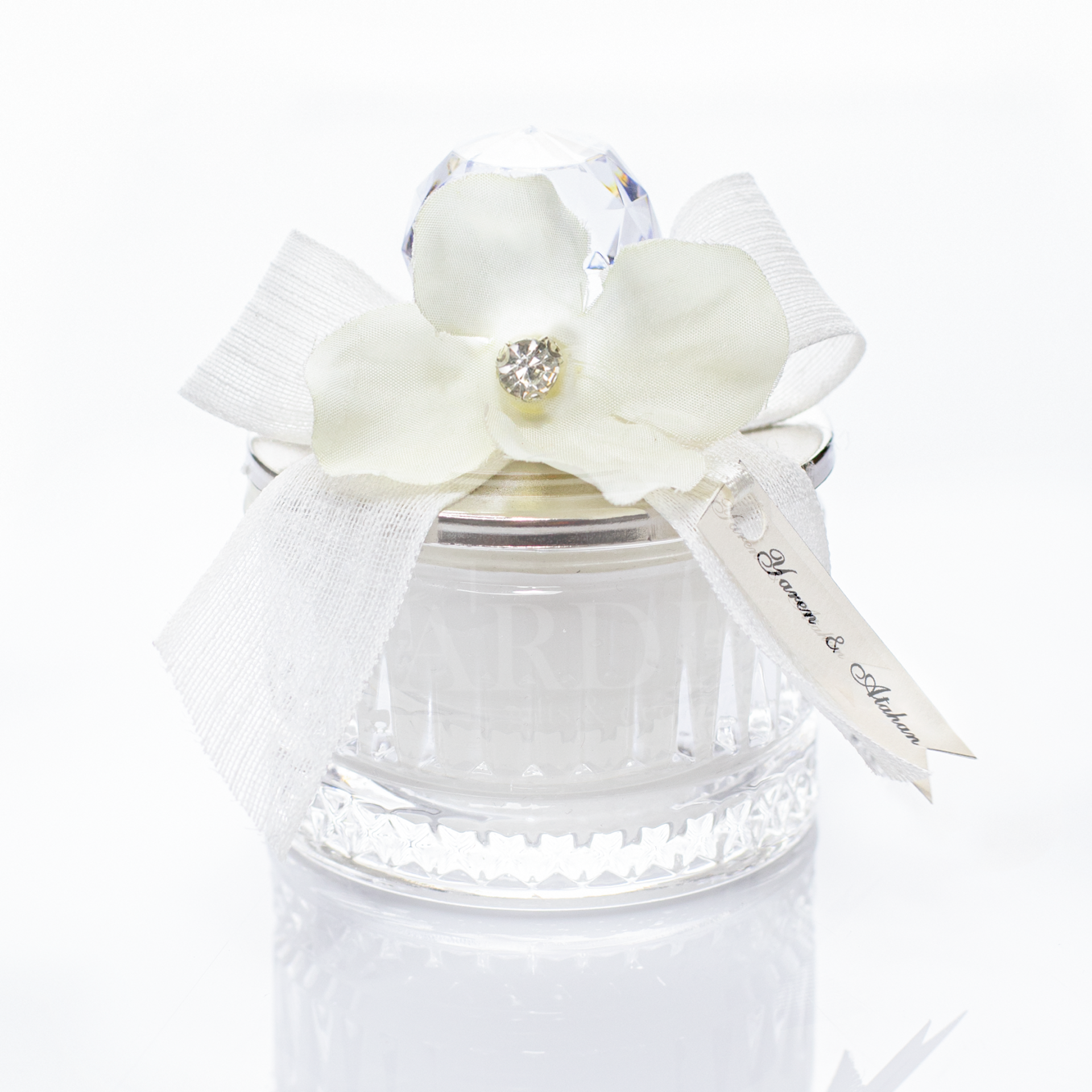 Şık çizgili desenli cam şekerlik içerisinde hazırlanan mum, hem dekoratif hem de kullanışlı bir hediyelik seçeneğidir. Zarif cam tasarımı sayesinde ev dekorasyonunda uzun süre kullanılabilir. Üzerine isim yazılabilen kişiye özel tasarım seçeneğiyle söz, nişan, kına, düğün, mevlit, baby shower, doğum günü gibi özel günlerde misafirlere dağıtılabilecek anlamlı bir hatıra alternatifidir. Kullanım sonrasında şekerlik veya küçük saklama kabı olarak değerlendirilebilir.