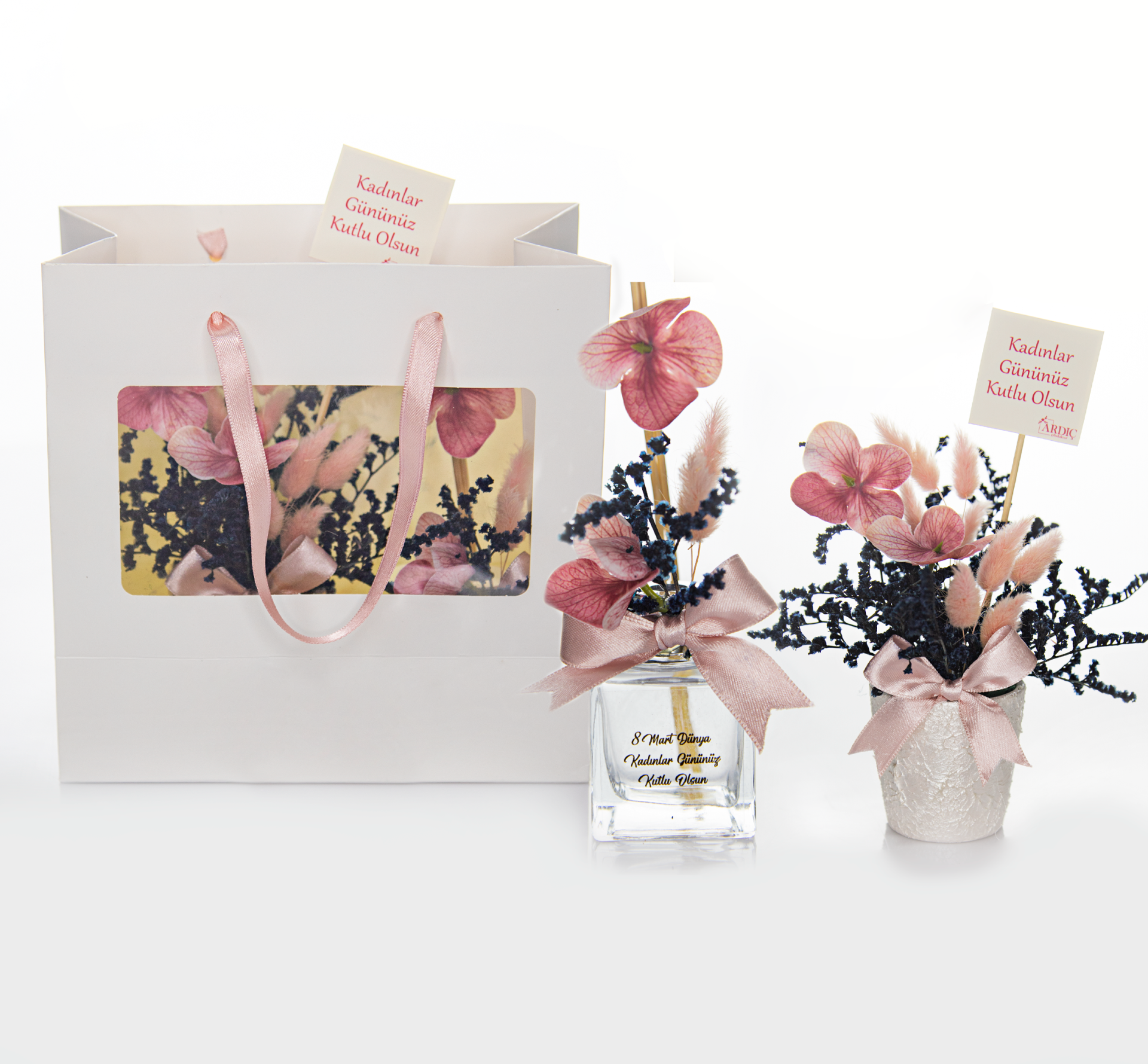 Sevdiklerinize özel hissettirecek anlamlı bir Kadınlar Günü hediyesi arıyorsanız, bu şık hediye seti mükemmel bir seçenektir. Süslemeli karton taşıma çantası içinde sunulan set; cam şişeli oda kokusu ve difüzör çubukları, dekoratif vazo ve Kadınlar Gününe özel kutlama kartı ile özenle tamamlanmıştır. Estetik ve anlamlı tasarımı sayesinde sevdiklerinize kendilerini özel hissettirecek bir hediye sunabilir, Kadınlar Gününü unutulmaz kılabilirsiniz.
