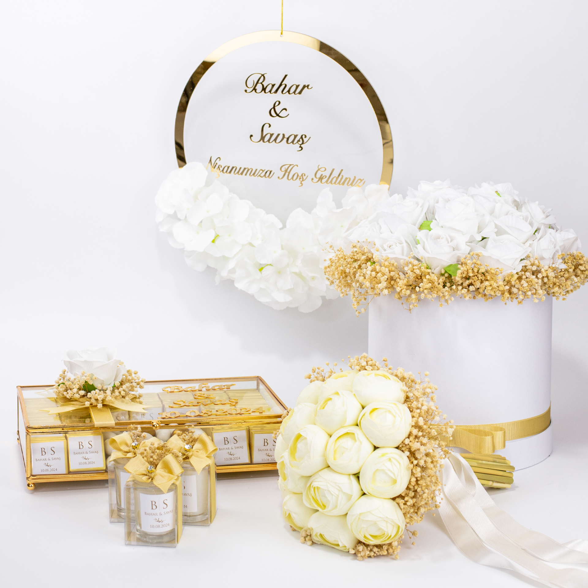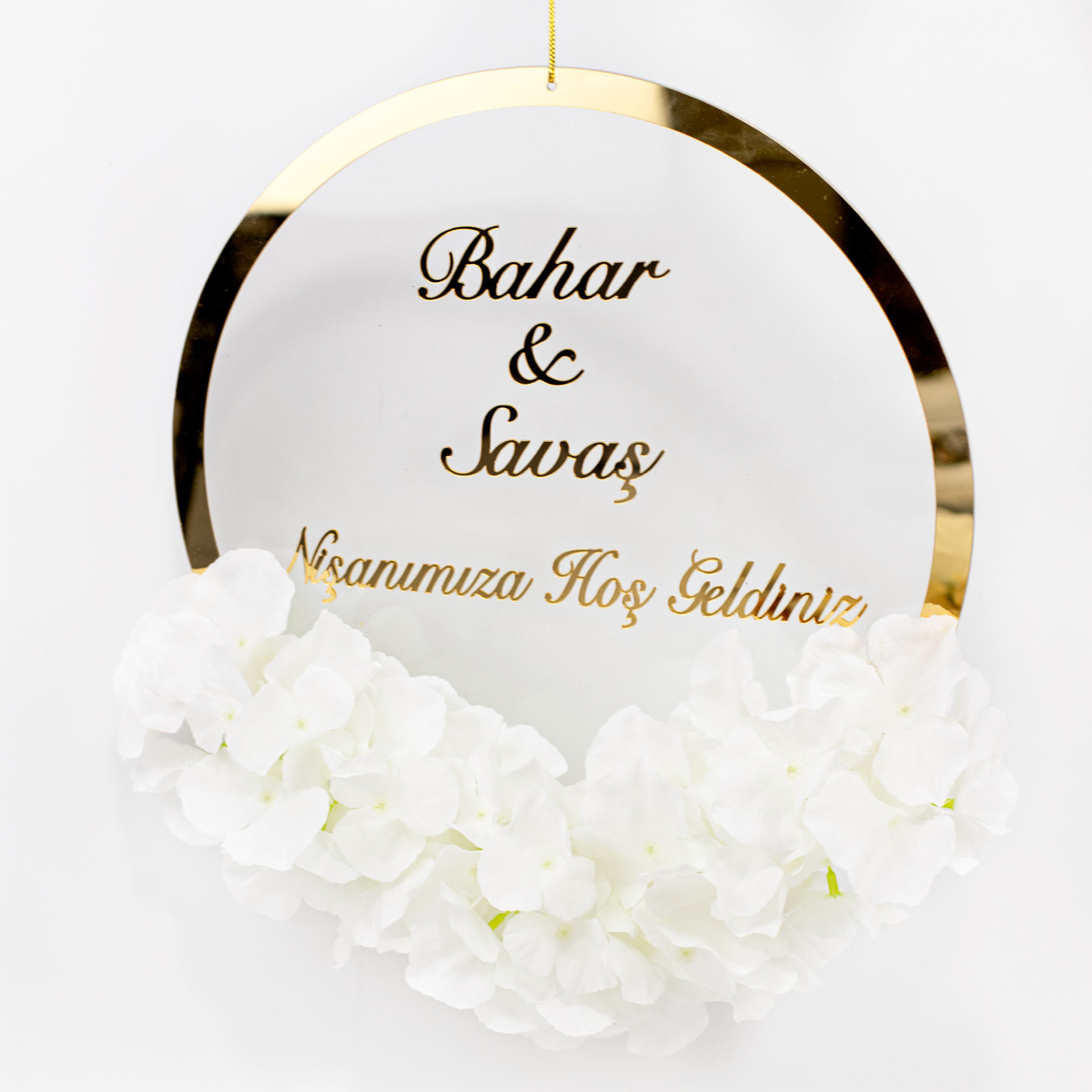 Gold pleksi malzemeden hazırlanan kapı süsü, şık ve modern tasarımıyla ev girişlerinde dekoratif bir detay oluşturur. Söz, nişan, kına, nikah, düğün, yeni ev hediyesi, nişan bohçası, baby shower ve özel gün organizasyonlarında kullanılabileceği gibi hatıra veya hediye olarak da tercih edilebilir. İsteğe bağlı kişiselleştirme seçeneği ile isim, soyisim veya tarih eklenerek tamamen size özel hale getirilebilir.