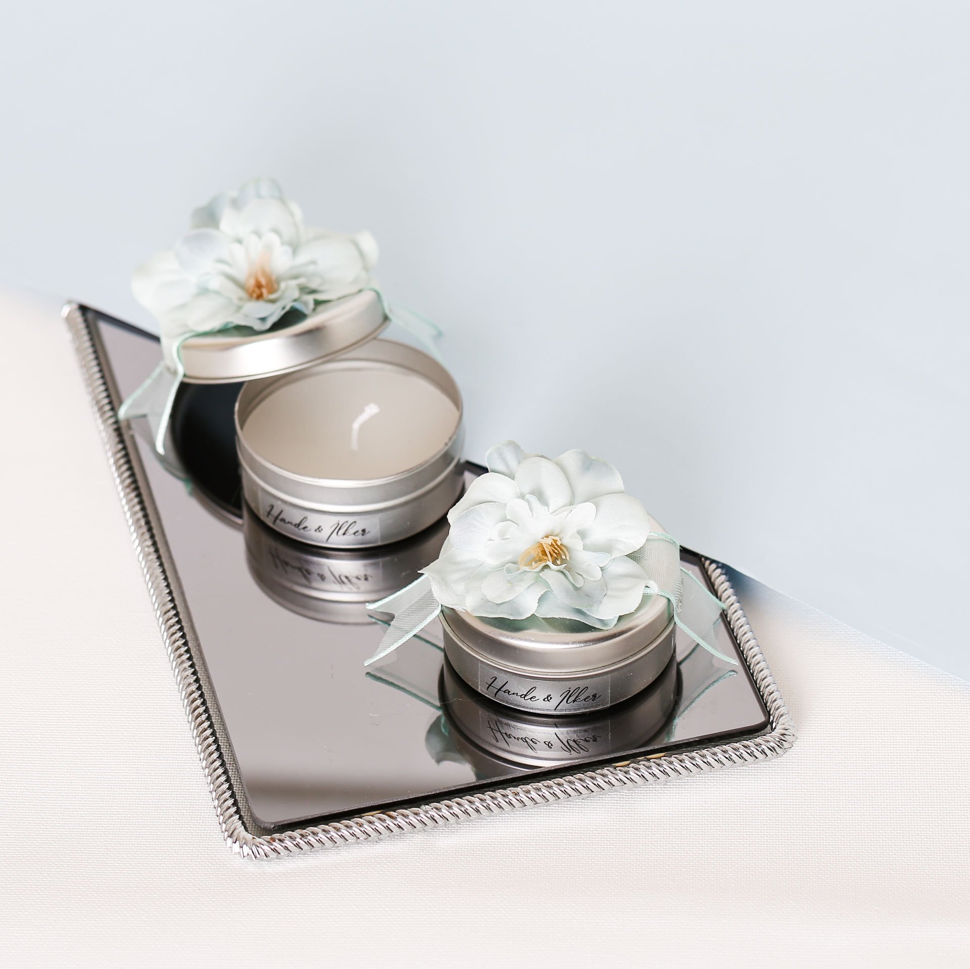 Zarif tasarımıyla hazırlanan gümüş metal kutuda mum, söz, nişan, kına, nikah ve özel organizasyonlarda misafirlere sunulabilecek şık bir hediyelik seçeneğidir. Şebboy kapak detayı ve estetik metal kutu görünümüyle dikkat çeken mum hediyelik, hem dekoratif hem kullanışlı bir hatıra sunar. Nikah hediyeliği, kına hediyeliği, söz nişan hediyelikleri ve organizasyon hatıralıkları arasında zarif detaylarıyla öne çıkan özel bir üründür. Farklı renk seçenekleriyle konseptinize uyum sağlayacak şekilde hazırlanabilir.