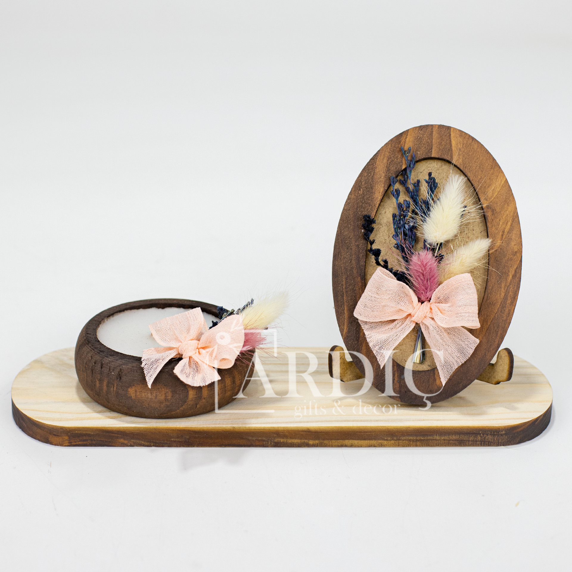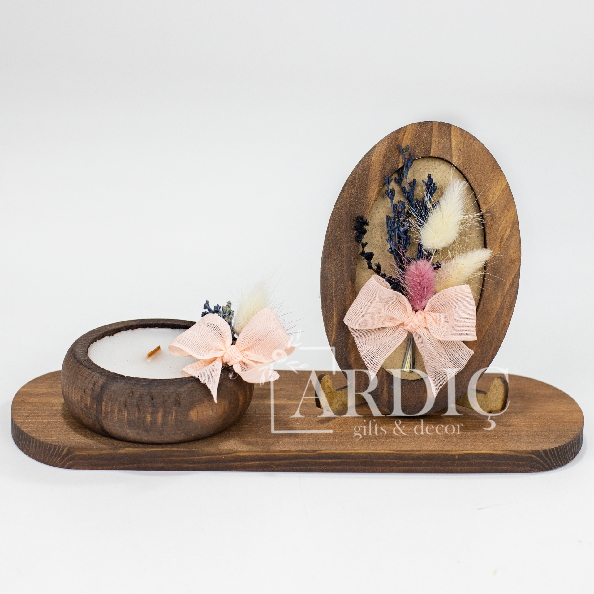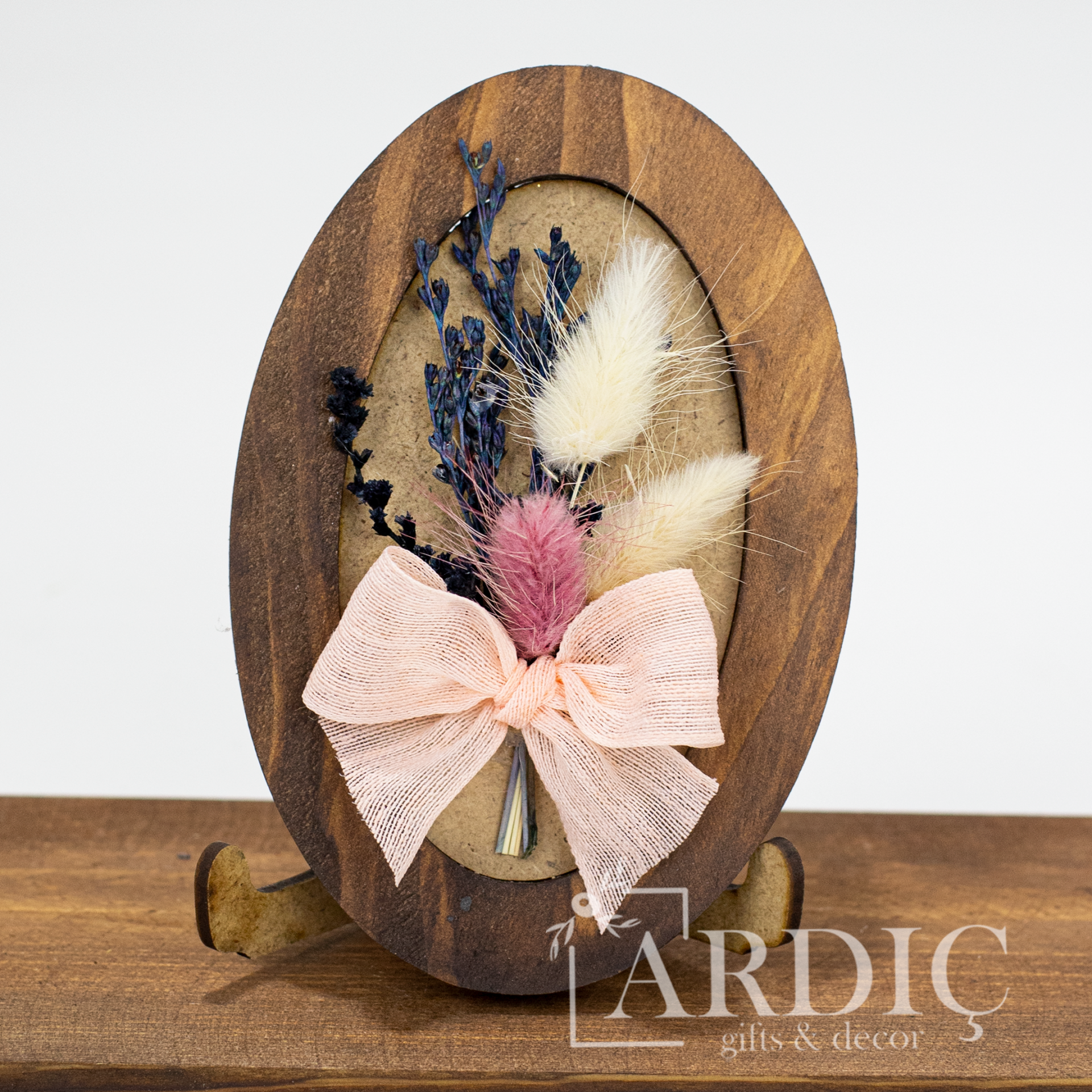 - 1 adet ahşap zeminli kuru çiçek pano
