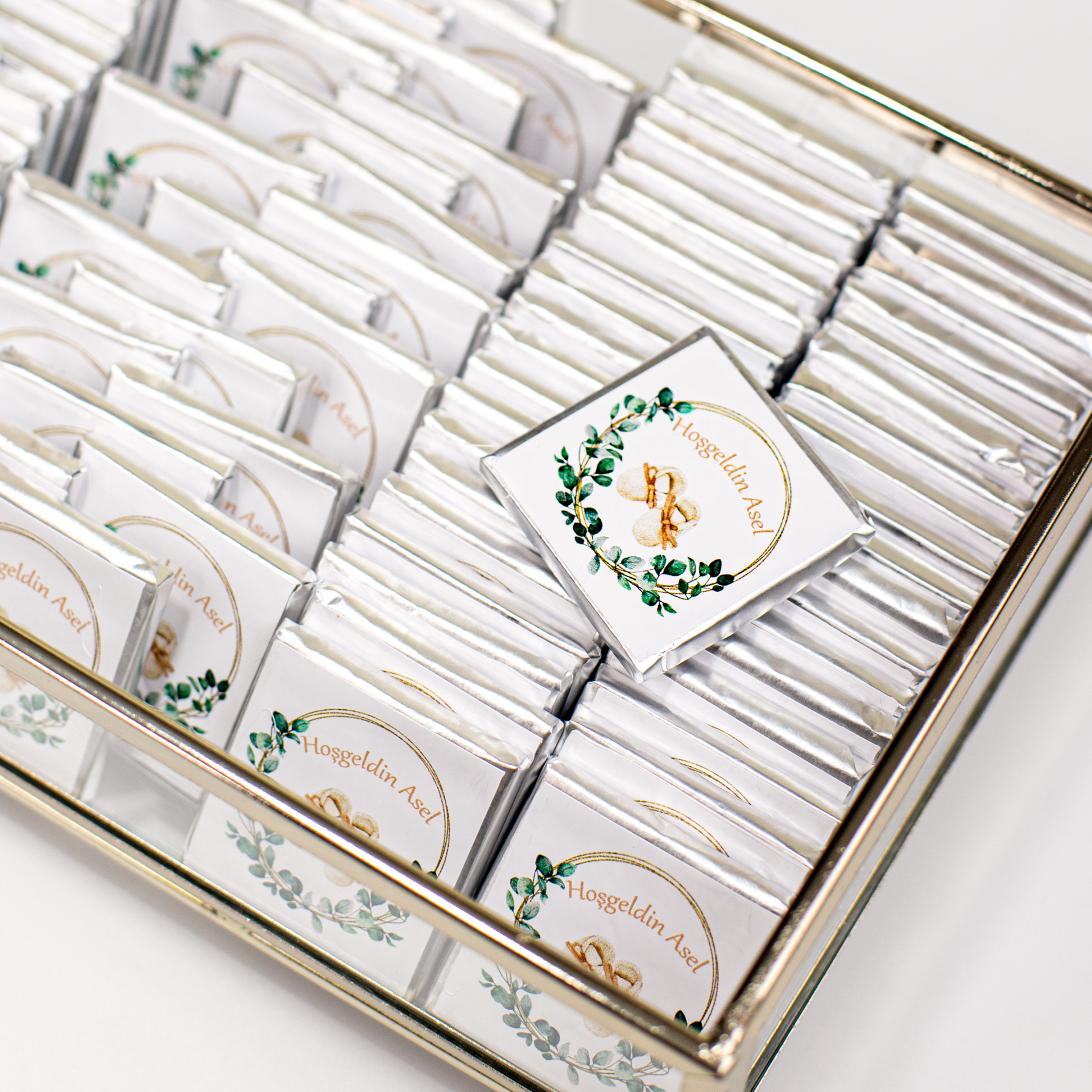 Hoş geldin bebek çikolatası, yeni doğan kutlamalarında misafirlerinize tatlı bir hatıra sunmak için tercih edilebilecek klasik ve şık bir ikramlık seçeneğidir. Hastane çıkışı, bebek mevlüdü, baby shower, diş buğdayı ve doğum günü gibi anne-bebek organizasyonlarında dağıtmalık olarak kullanılabilir. Üzerindeki etiket ile kişiselleştirilebilir ve bebeğinizin ismi ile özel hale getirilebilir.