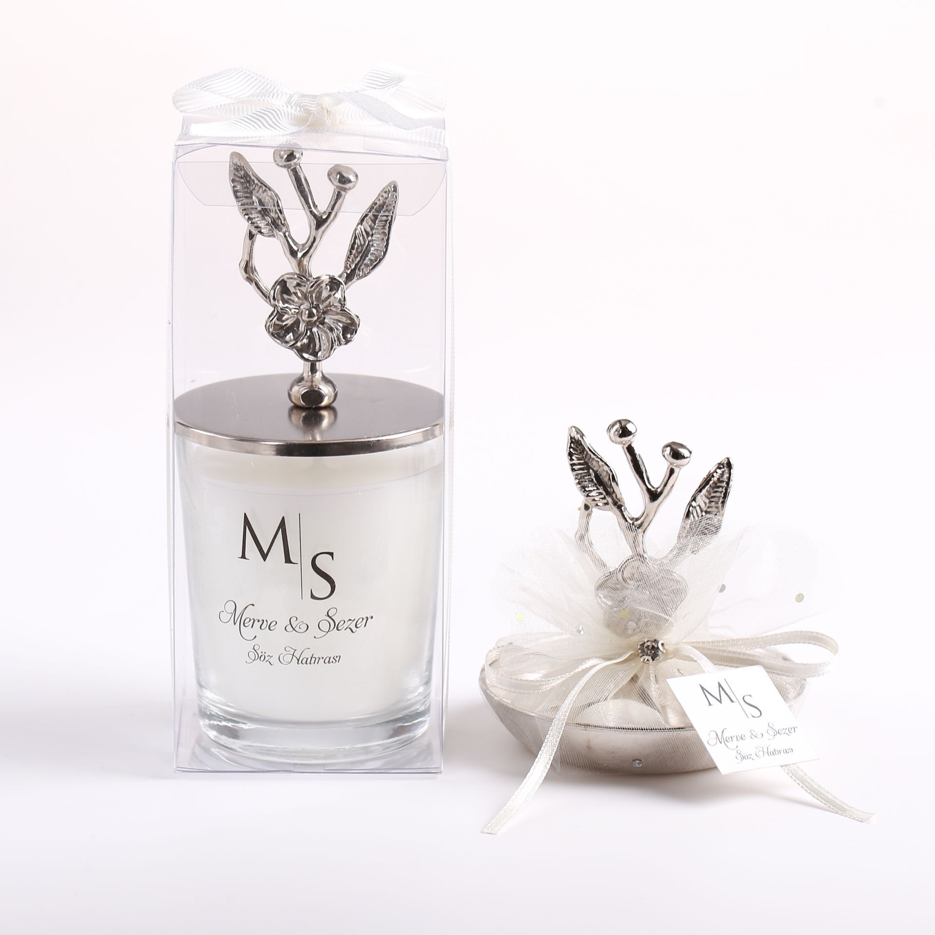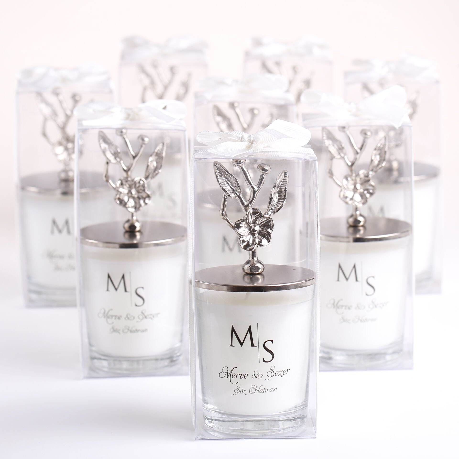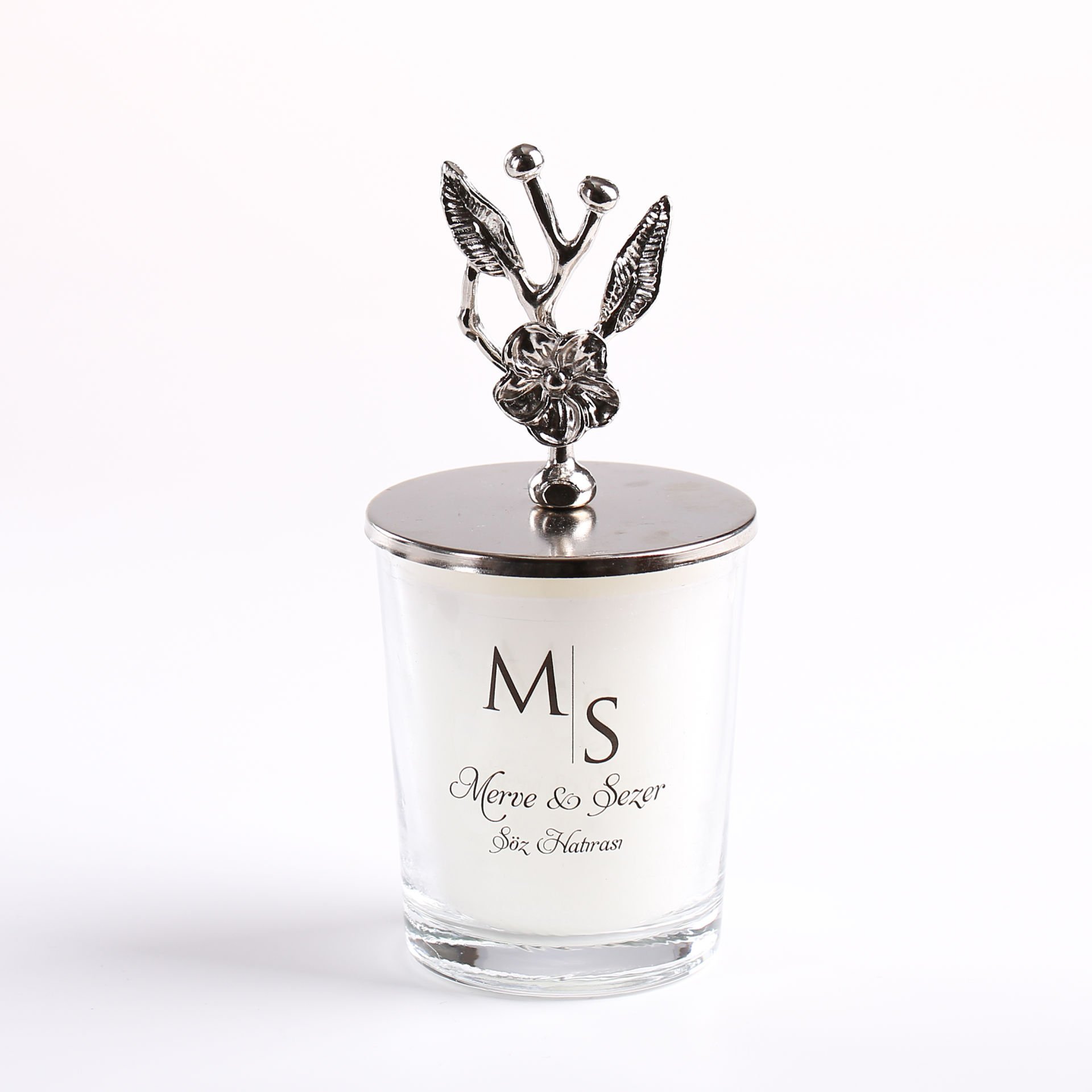 Gümüş renk Japon gülü metal tepeli büyük cam bardak mum; şık ve gösterişli tasarımıyla söz, nişan, düğün, kına gecesi, nikah, mevlit ve özel gün organizasyonlarında misafirlere sunulabilecek zarif bir hediyelik alternatifidir. Dekoratif görünümü sayesinde hem hatıra olarak saklanabilir hem de bulunduğu ortama estetik bir atmosfer katar.