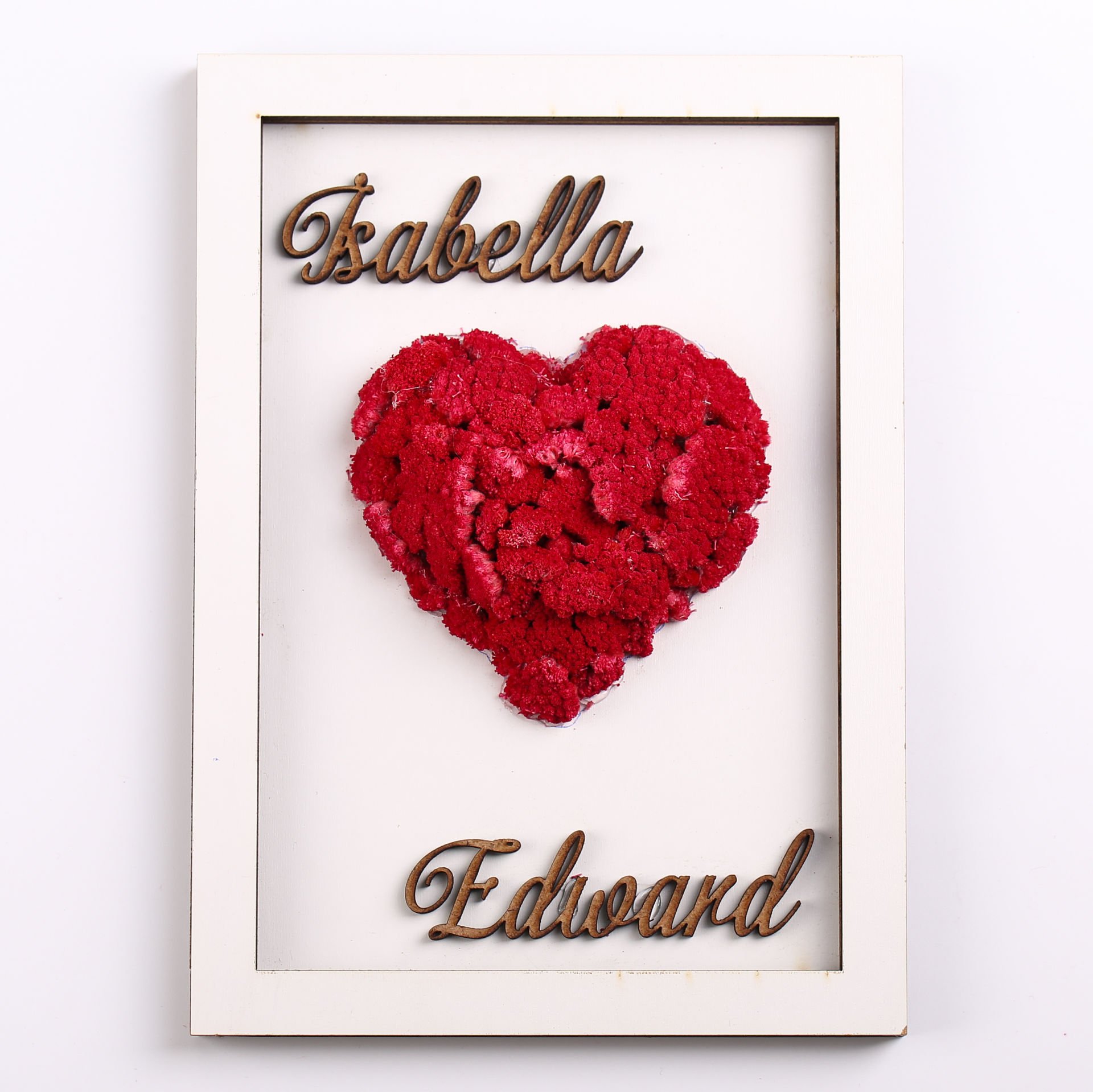 Kalpli İsimli Çerçeve, söz, nişan, nikah, düğün, kına gecesi, baby shower, doğum günü ve özel davet organizasyonlarında anlamlı bir hatıra alternatifi olarak tercih edilebilir. Aynı zamanda yıldönümü ve özel gün hediyesi olarak da değerlendirilebilir.