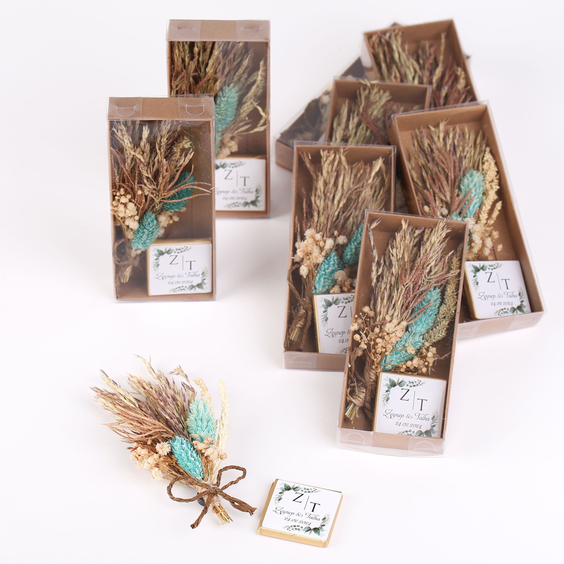 Kraft kutulu mini buket ve 1 adet etiketli madlen çikolata