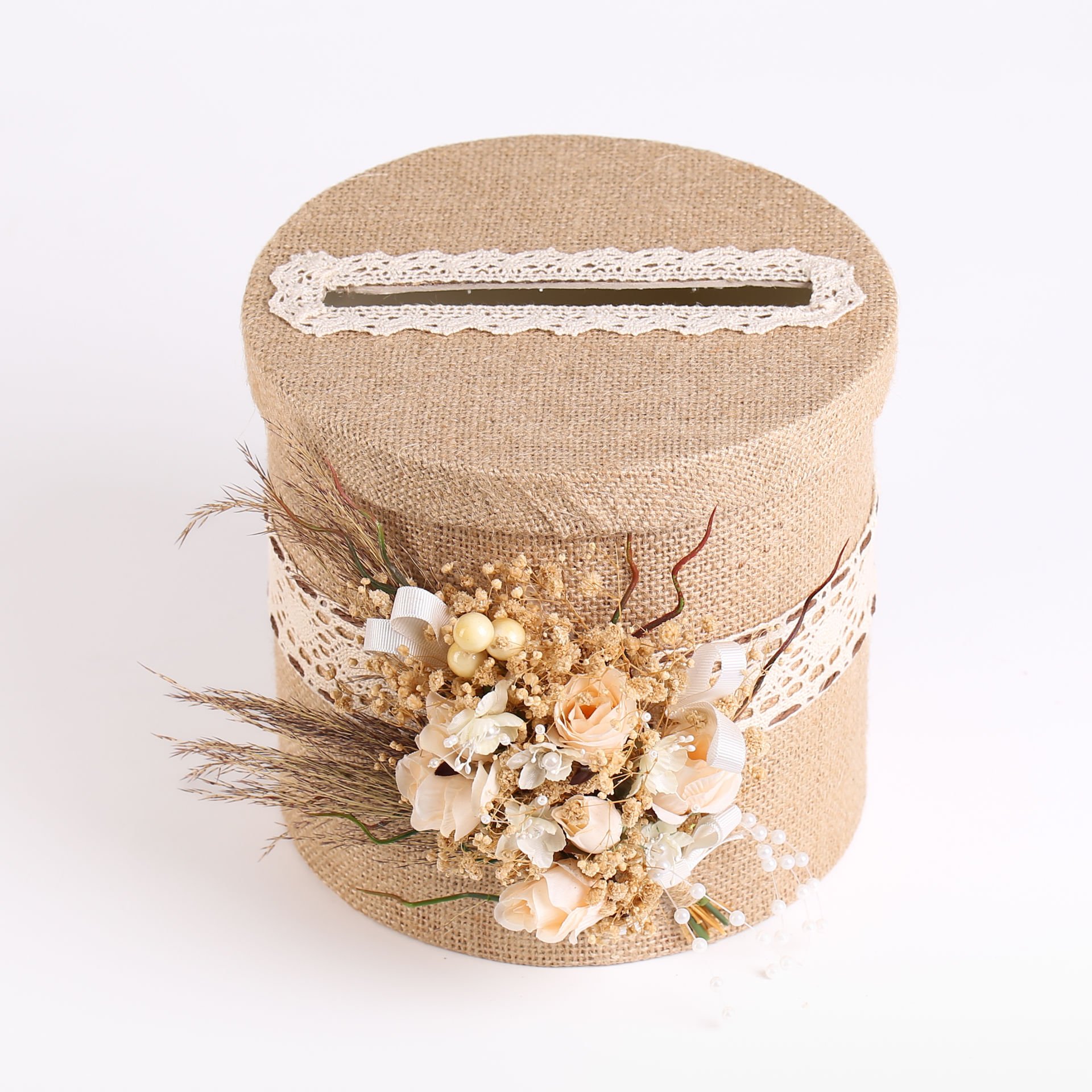 Jüt detaylar ve krem gül süslemeleriyle hazırlanan nikah seti; doğal ve zarif konseptiyle özel günlerinizde uyumlu bir bütünlük sunar. Hem dekoratif hem de hatıra değeri olan parçalarıyla nikah ve düğün organizasyonları için şık bir tercihtir.
