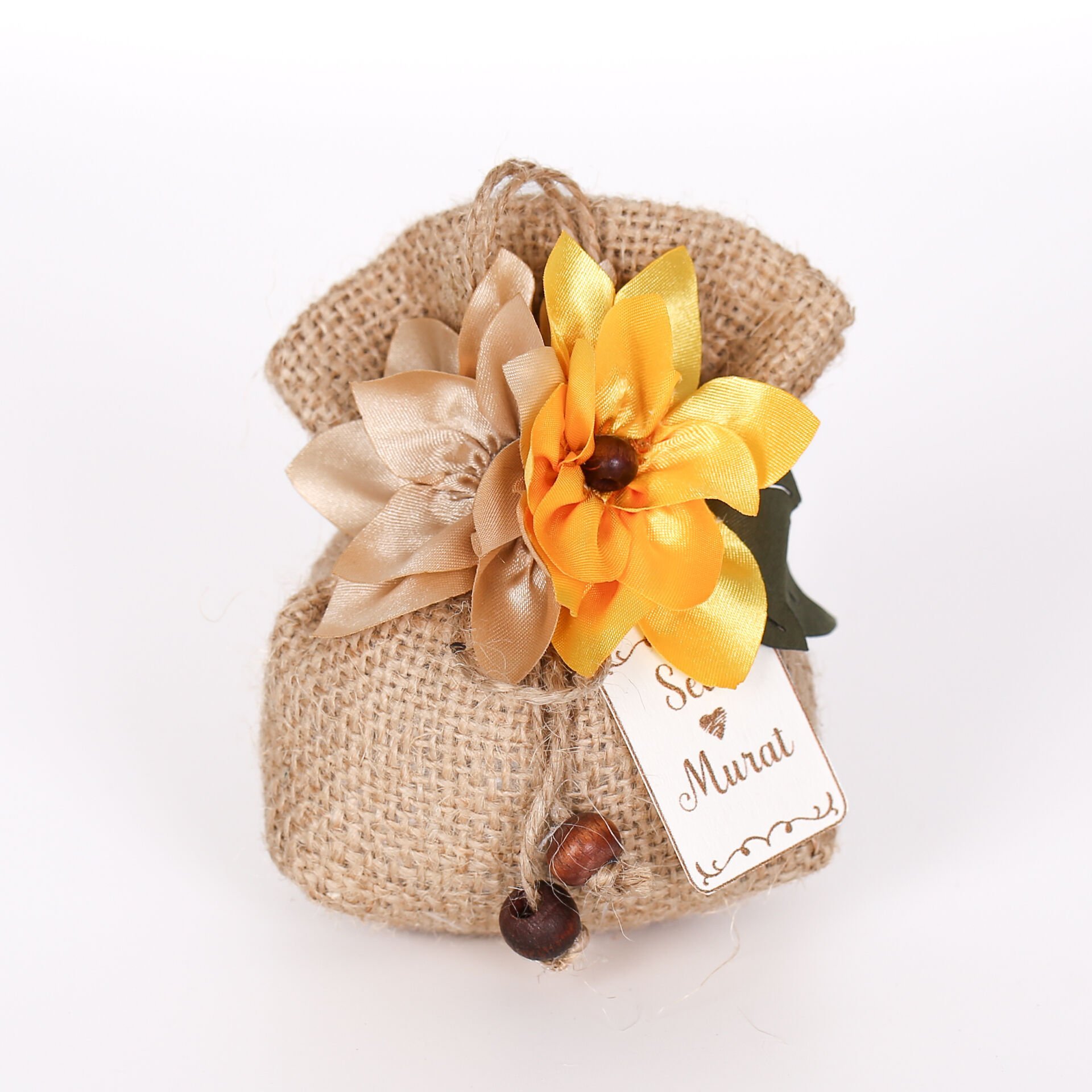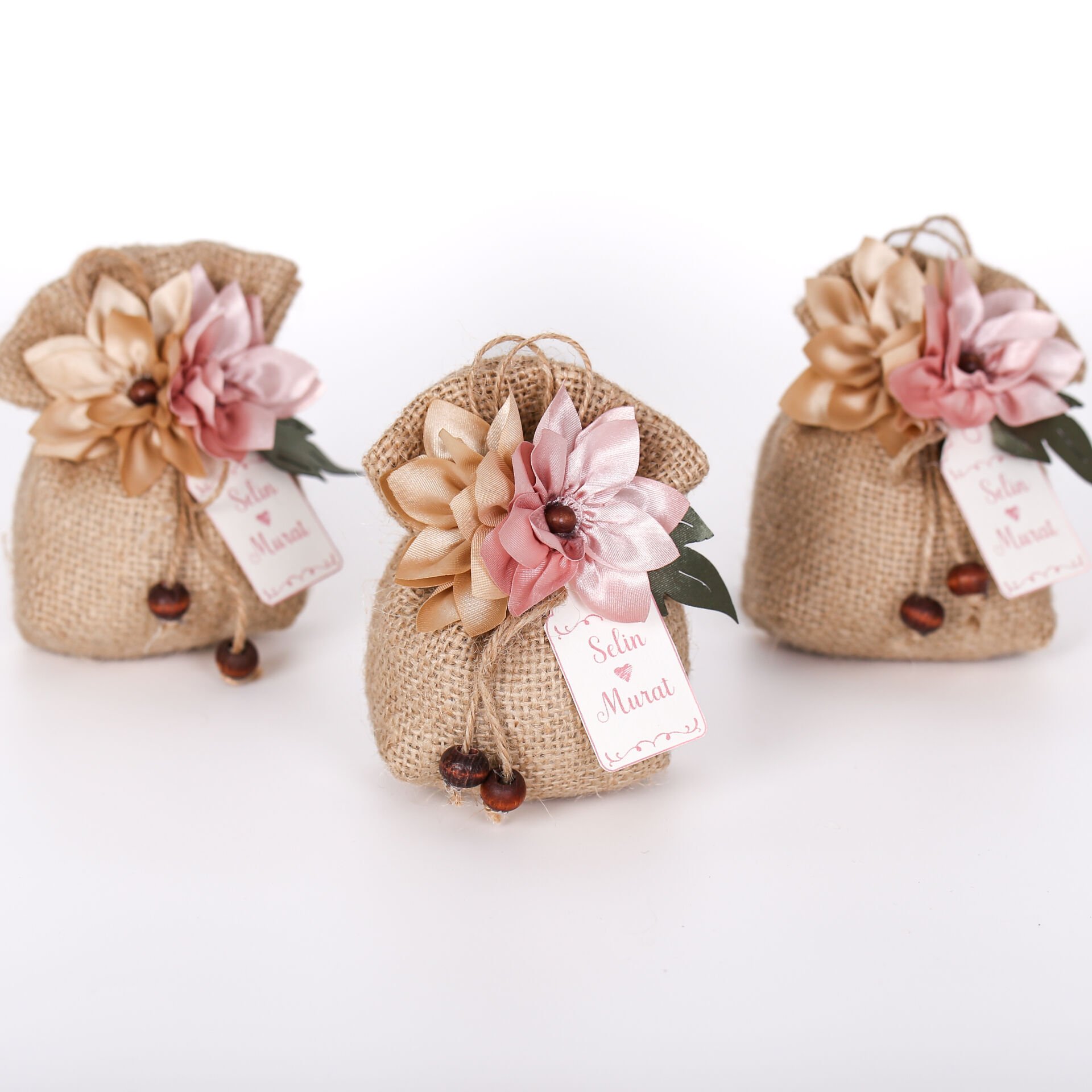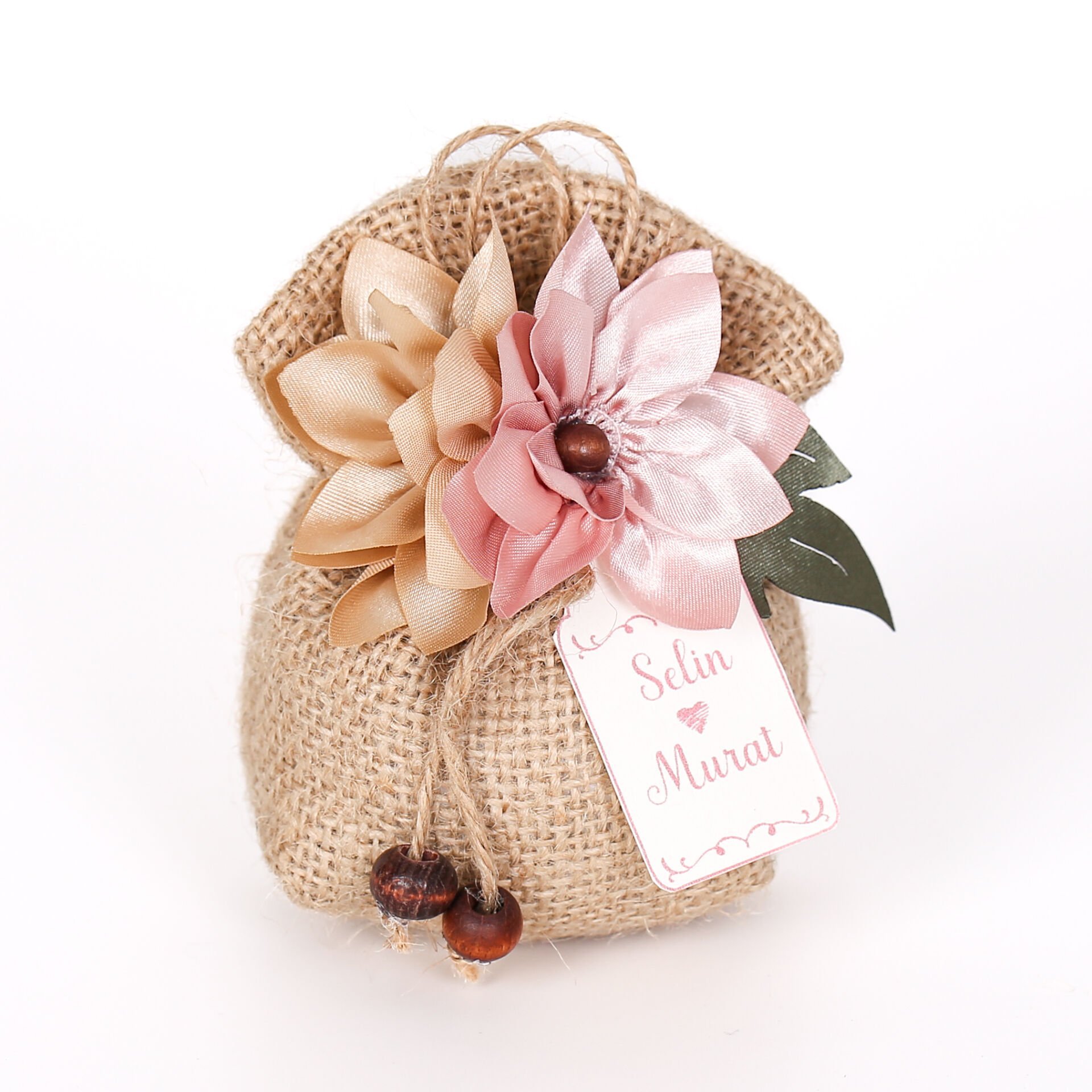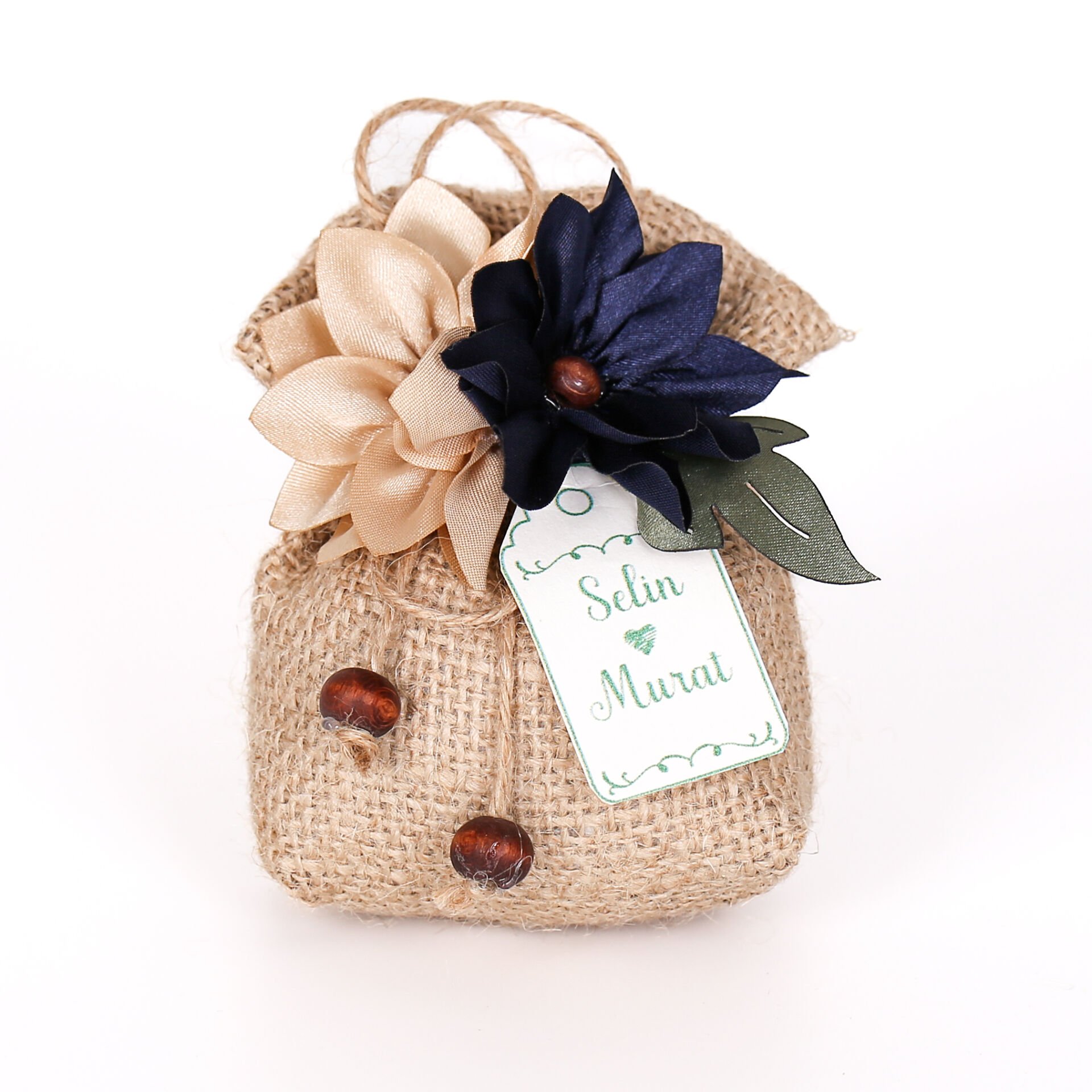Kumaş çiçek detaylı jüt kese; doğal dokusu ve zarif tasarımıyla özel günleriniz için şık bir hediyelik alternatifi sunar. Lavanta ve elyaf dolgusu sayesinde hoş kokulu olup uzun süre saklanabilir. Söz, nişan, nikah, düğün, kına, mevlit ve özel davetlerde konseptinize uyum sağlar. Üç farklı renk seçeneğiyle tercih edilebilir.