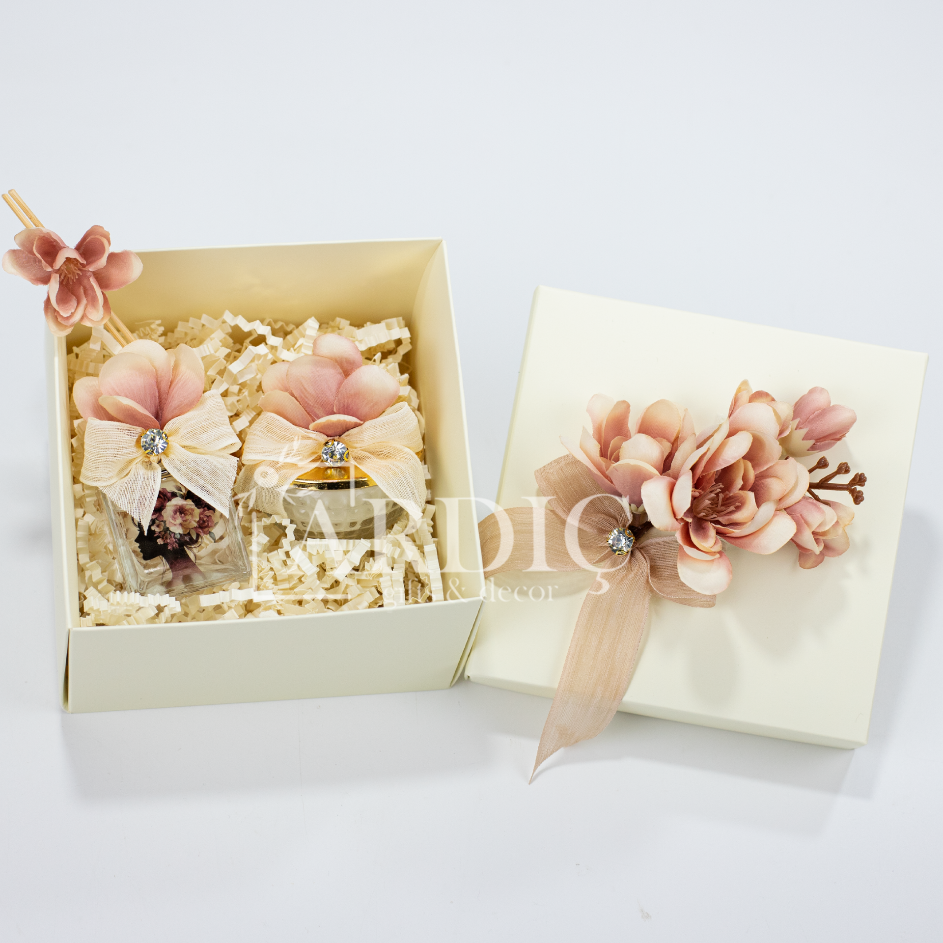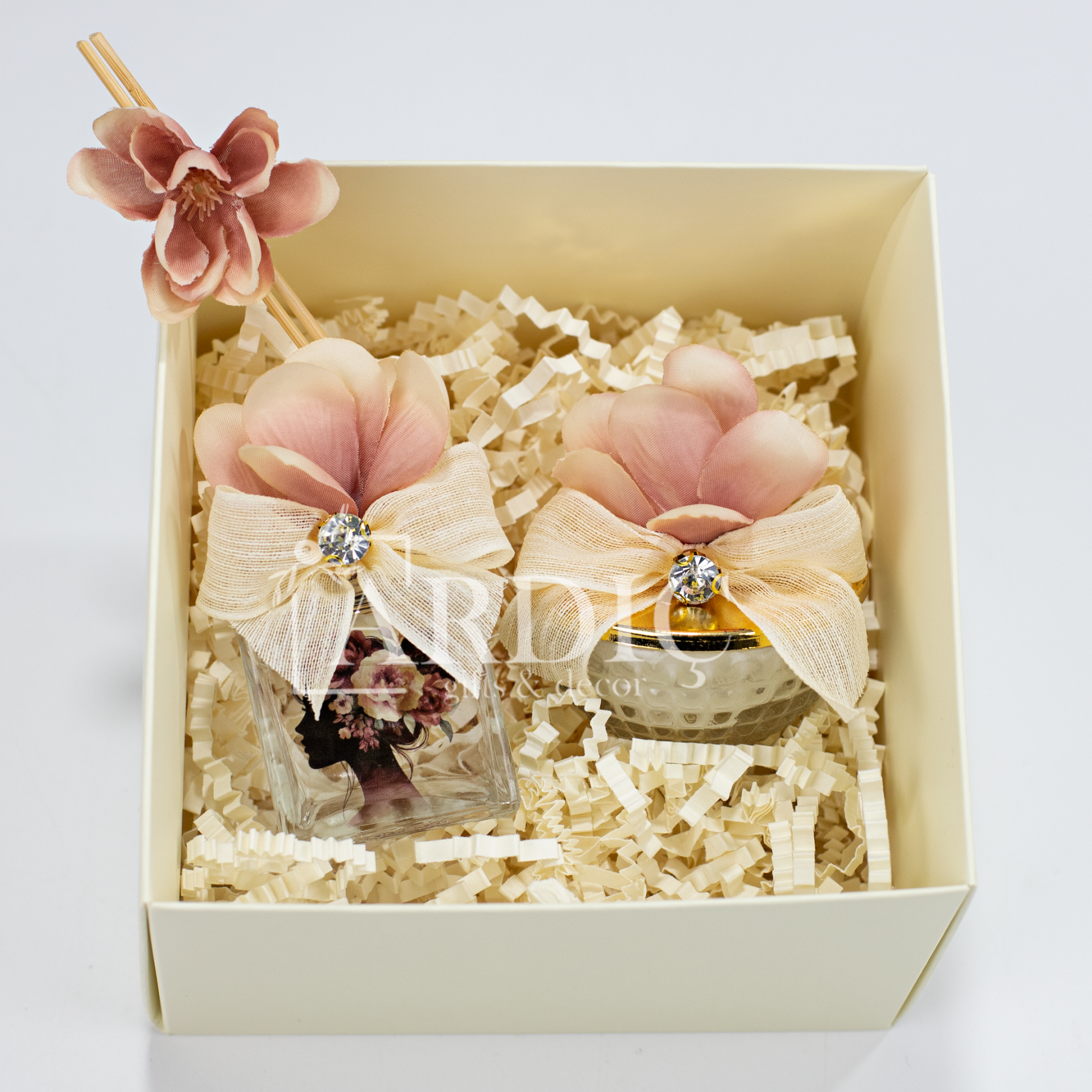 Kırpık kağıt dolgulu ve süslemeli karton kutu içinde sunulan bu şık hediye seti; kristal camlı, gold kapaklı süslemeli mum ve 50 cc cam şişeli oda kokusu ile difüzör çubuklarını bir araya getirir. Zarif ve estetik tasarımı sayesinde sevdiklerinize kendilerini özel hissettirecek, anlam dolu ve unutulmaz bir Kadınlar Günü hediyesi sunar. Hem dekoratif hem de şık bir hediye alternatifi olarak öne çıkar.