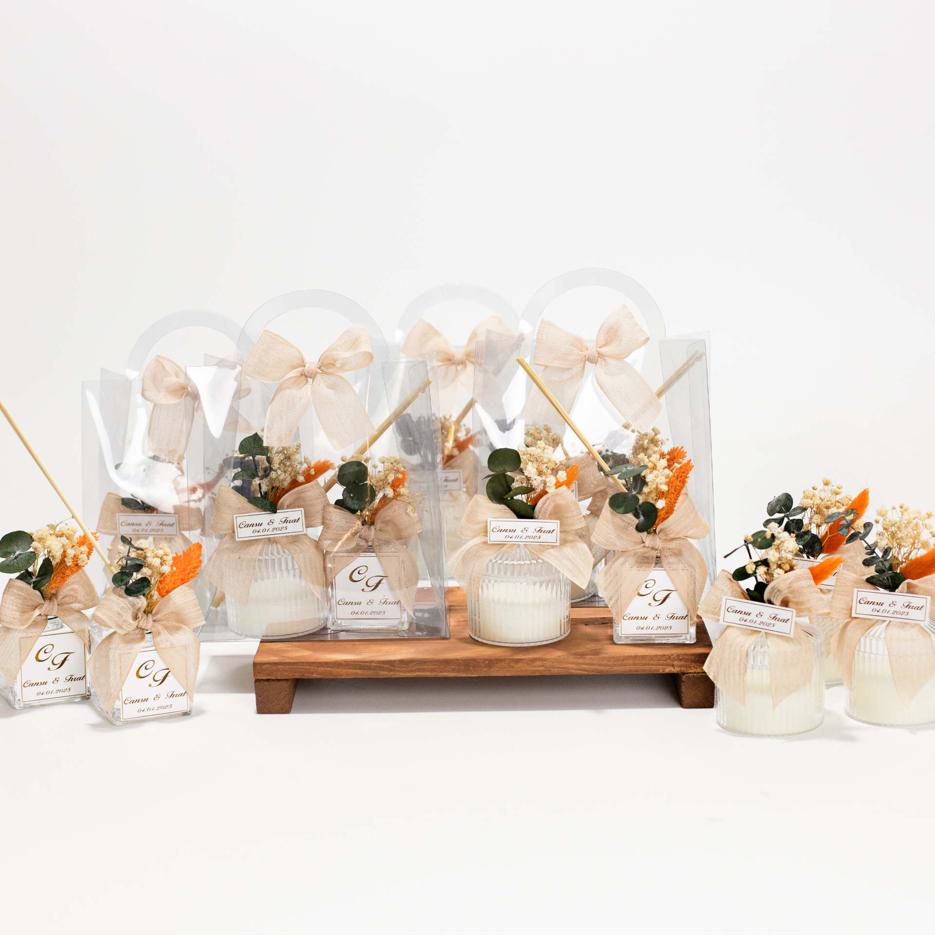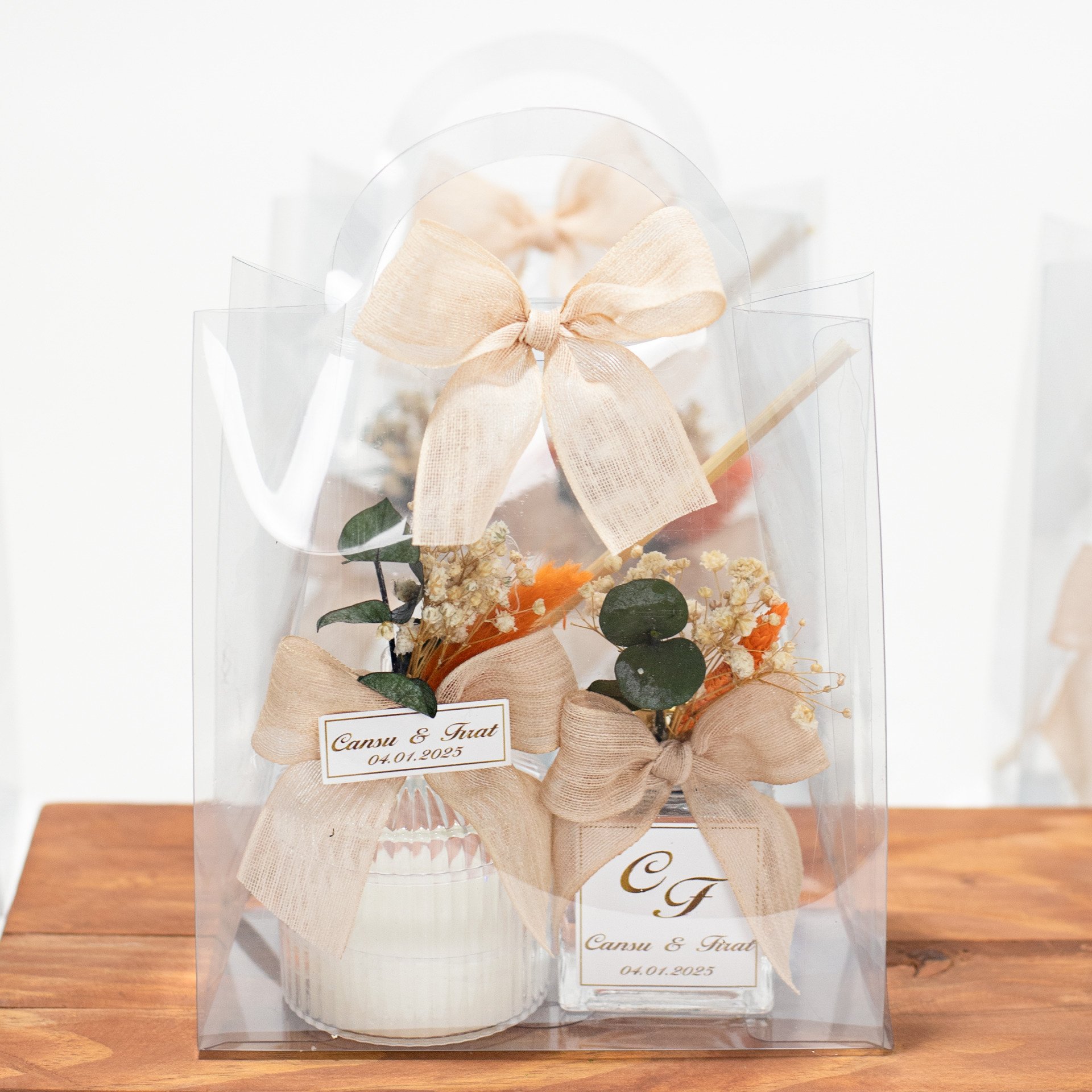 Mika mum ve oda kokusu seti, özel günlerde misafirlerinize hem dekoratif hem de kullanışlı bir hatıra vermek için tercih edilebilecek şık bir hediyelik seçeneğidir. Bebek mevlüdü, hastane çıkışı, baby shower, doğum günü gibi anne-bebek organizasyonlarında kullanılabileceği gibi söz, nişan, düğün ve özel davetlerde de tercih edilebilir. Şeffaf mika tasarımı sayesinde zarif bir görünüm sunar. Üzerine eklenebilen etiket ile kişiselleştirilebilir ve organizasyonunuza özel hale getirilebilir.