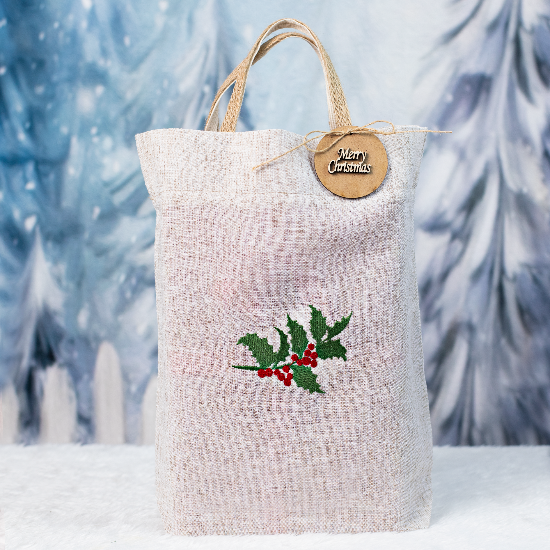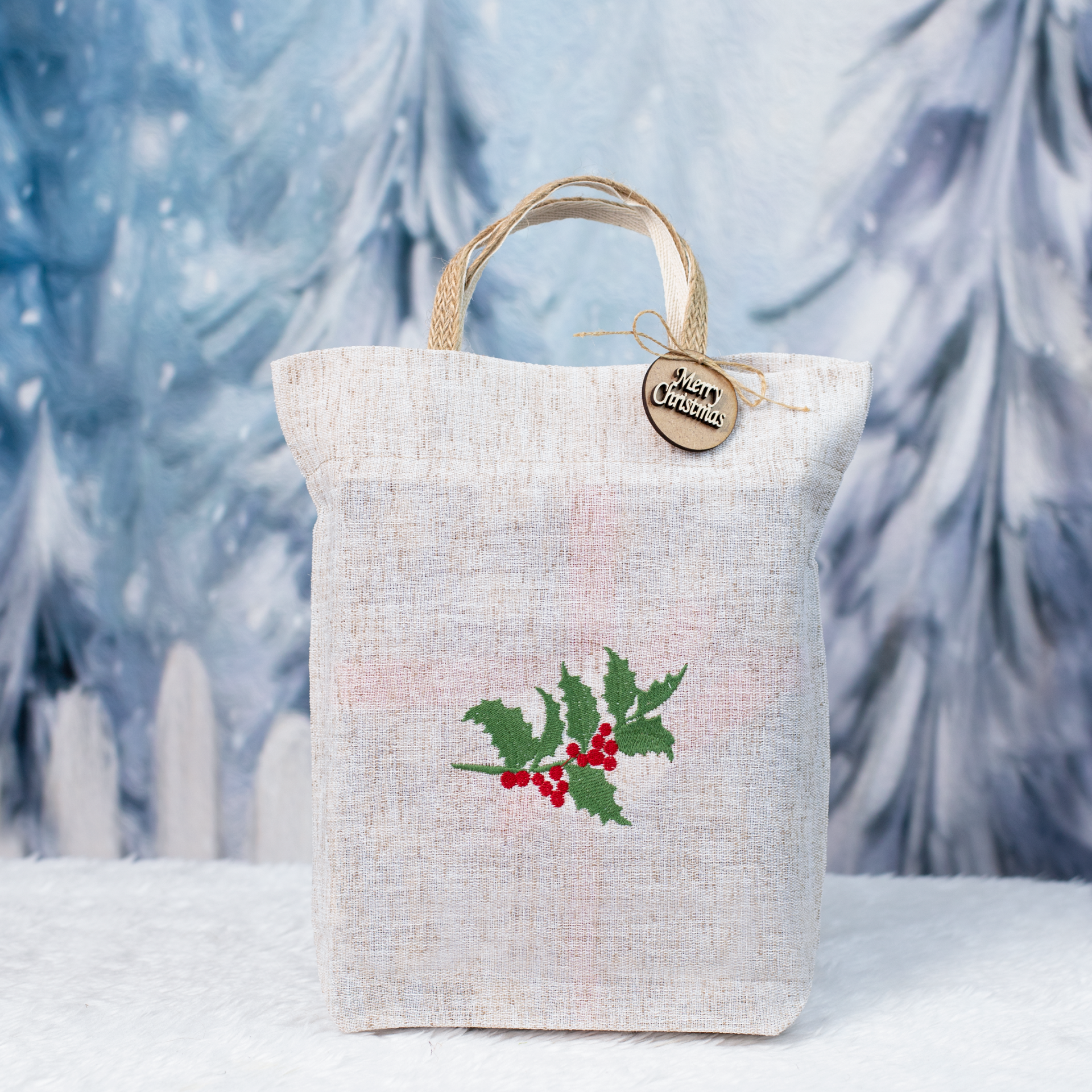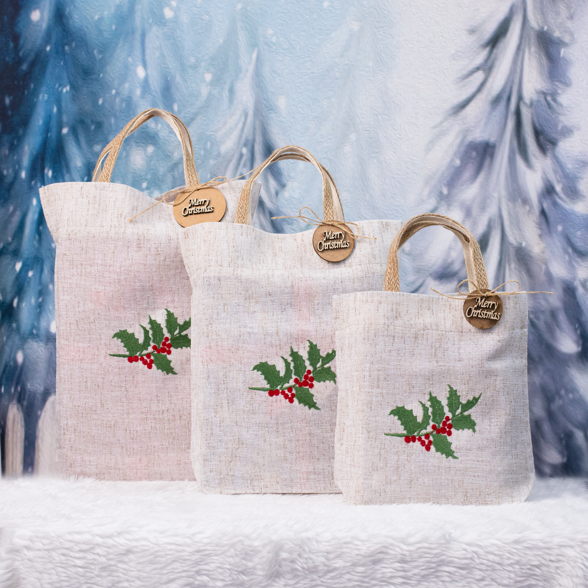 %100 el yapımı nakışlı jüt çanta, hem yılbaşı hediye ambalajı hem de günlük kullanım için değerlendirilebilir. Yeni yıl konsept hediye çantası ve kurumsal yılbaşı promosyon çantası arayanlar için estetik ve kullanışlı bir alternatiftir.