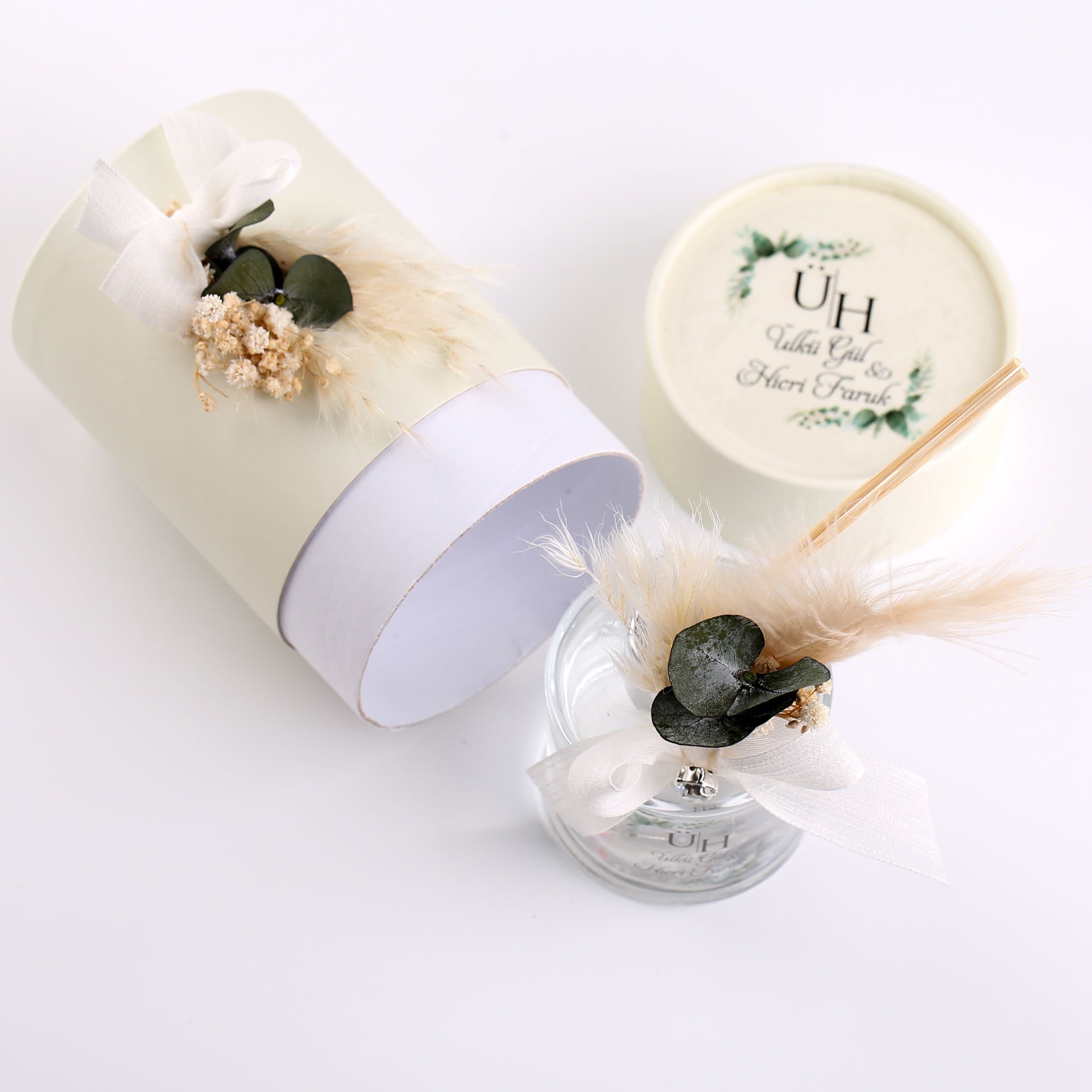 Silindir kutu içerisinde sunulan bambu çubuklu cam oda kokusu; söz, nişan, düğün, kına gecesi, nikah, mevlit, baby shower, doğum günü ve özel gün organizasyonlarında misafirlere verilebilecek şık ve kullanışlı bir hediyelik alternatiftir. Zarif cam şişe tasarımı ve dekoratif sunumuyla hem hoş bir koku deneyimi sunar hem de uzun süre hatıra olarak saklanabilir.