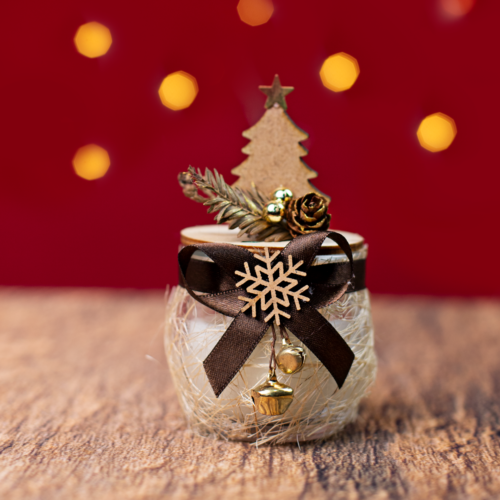 Yılbaşı Ağacı Figürlü Yuvarlak Cam Kavanoz Mum
