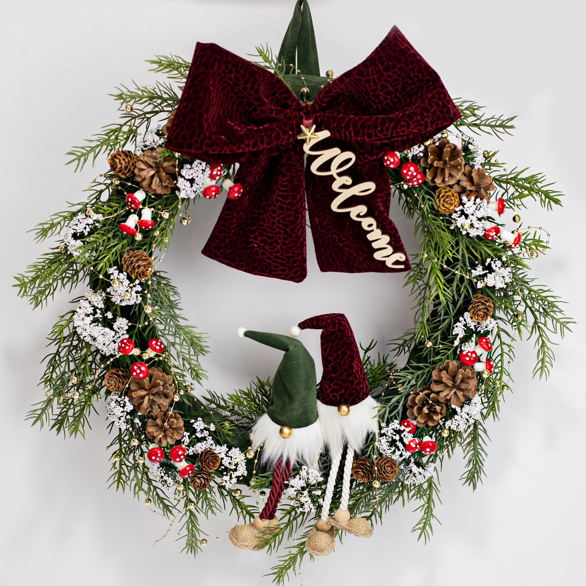 35 x 35 cm ölçüsüyle ev kapıları, ofis girişleri ve mağaza vitrinlerinde dikkat çekici bir görünüm sağlar. Yeni yıl çelengi, yılbaşı giriş dekoru ve kurumsal yeni yıl süslemesi olarak hem bireysel hem kurumsal kullanım için uygundur.