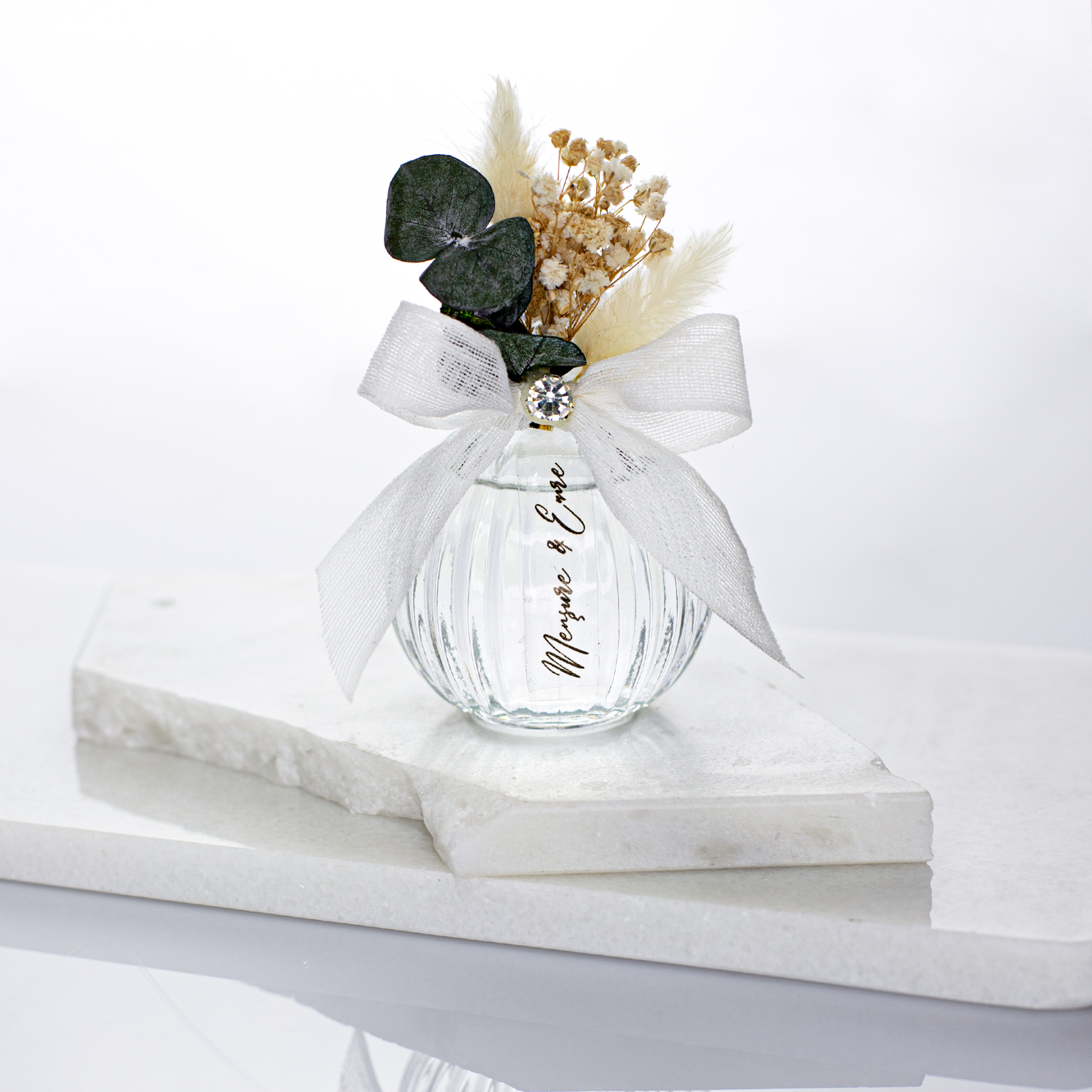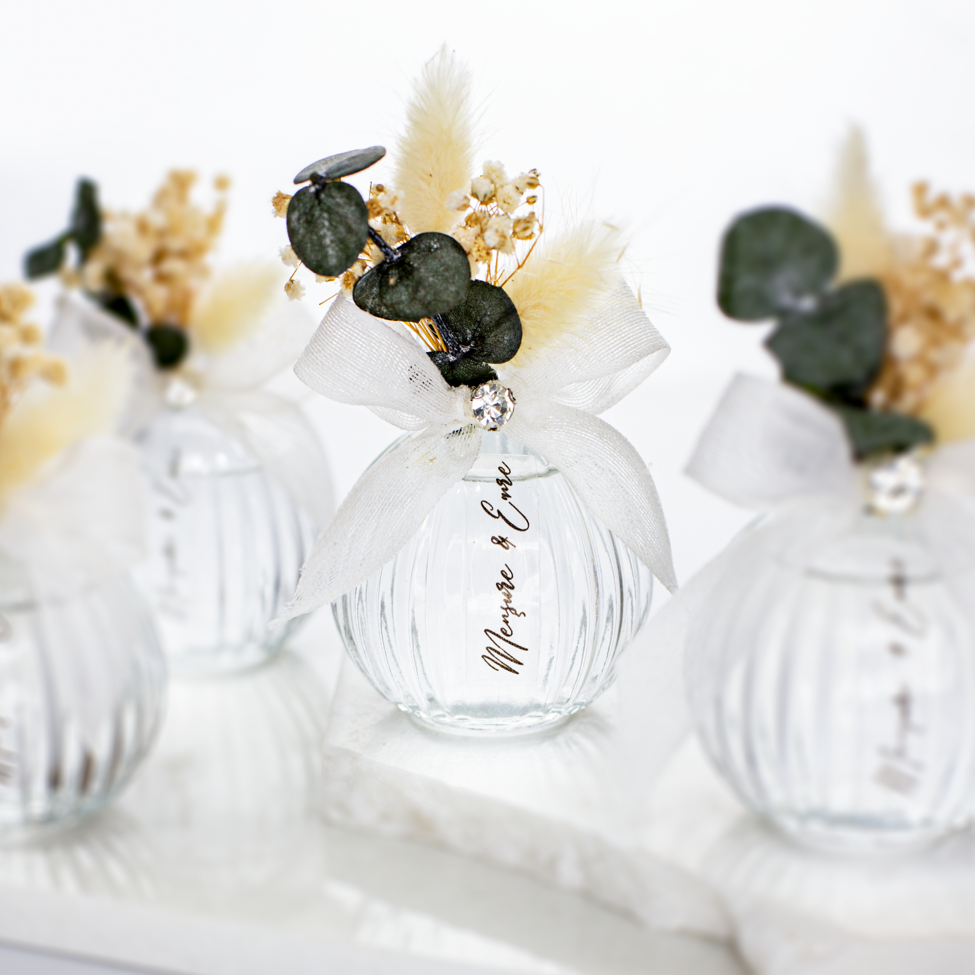 Çizgili yüzey tasarımına sahip yuvarlak cam şişe kolonya, üzerine isim yazılabilmesi sayesinde kişiye özel hediyelik olarak tercih edilebilecek şık ve zarif bir üründür. Estetik görünümüyle hem günlük kullanım hem de özel günlerde anlamlı bir hatıra sunmak için ideal bir seçenektir. Kız isteme, söz, nişan, kına, düğün, nikah, mevlit, baby shower, doğum günü ve çeşitli organizasyonlarda kişiselleştirilebilir hediyelik olarak kullanıma uygundur.