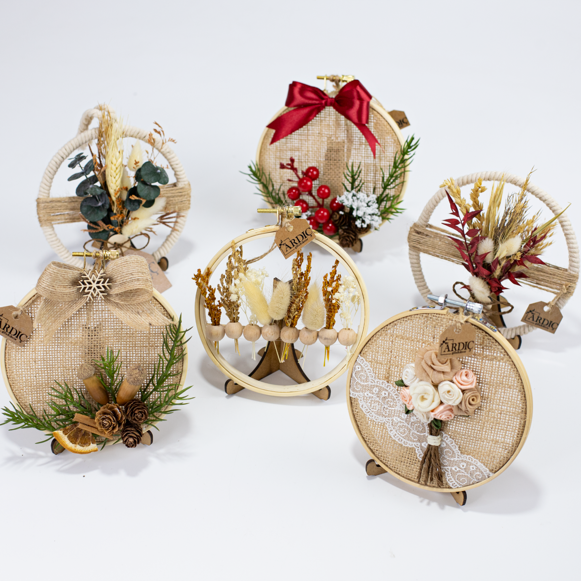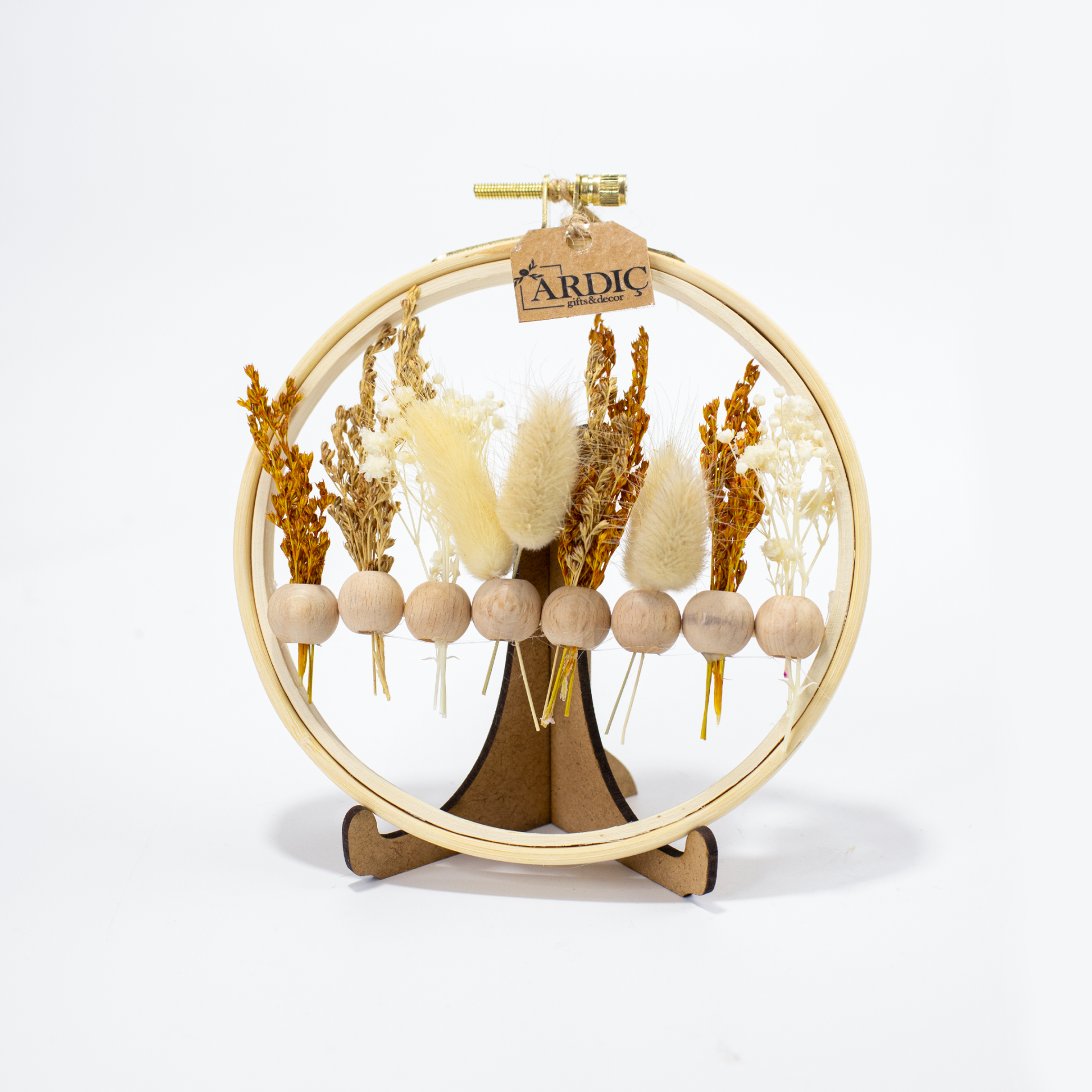 Dekoratif kasnak, duvar veya masa dekorasyonu için tercih edilebilecek şık ve tamamlayıcı bir dekoratif objedir. Farklı konseptlere uyum sağlayan tasarımı sayesinde ev dekorasyonunda, özel gün süslemelerinde ve hediye alternatiflerinde estetik bir görünüm sunar. Yaşam alanlarına sıcak ve zarif bir dokunuş katmak isteyenler için ideal bir seçenektir.