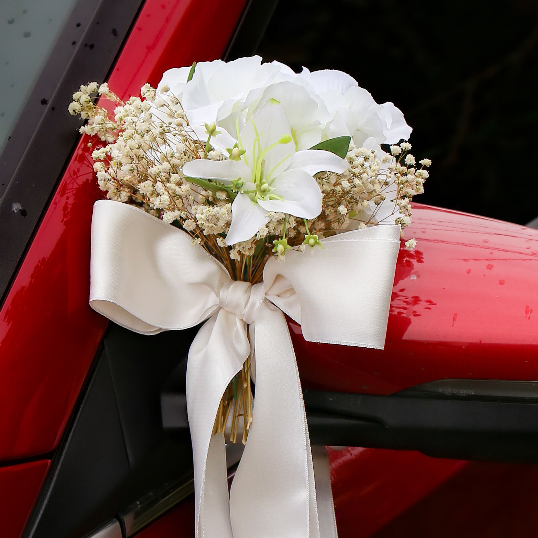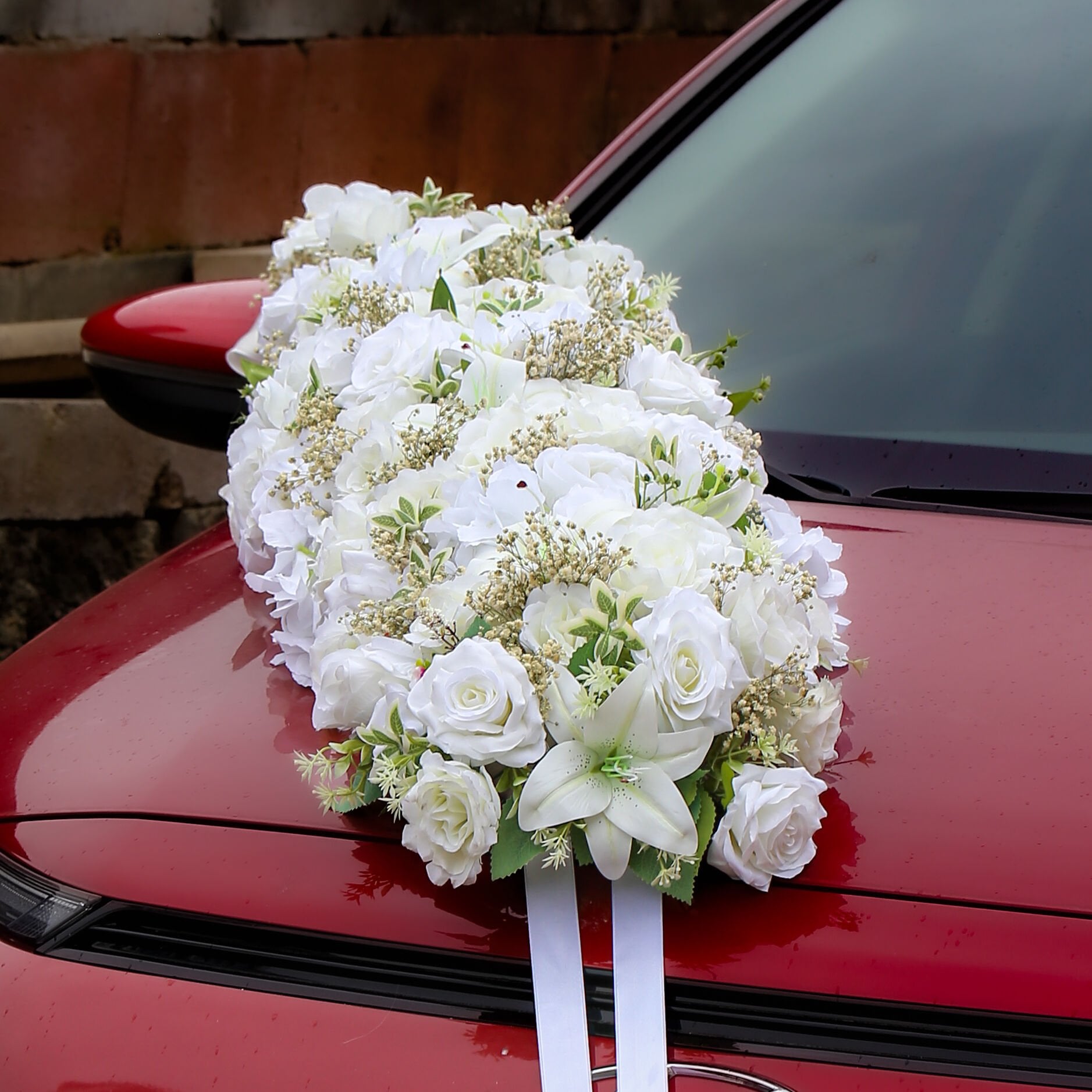Büyük lilyum ve gül aranjmanlı araç kaput süslemesi