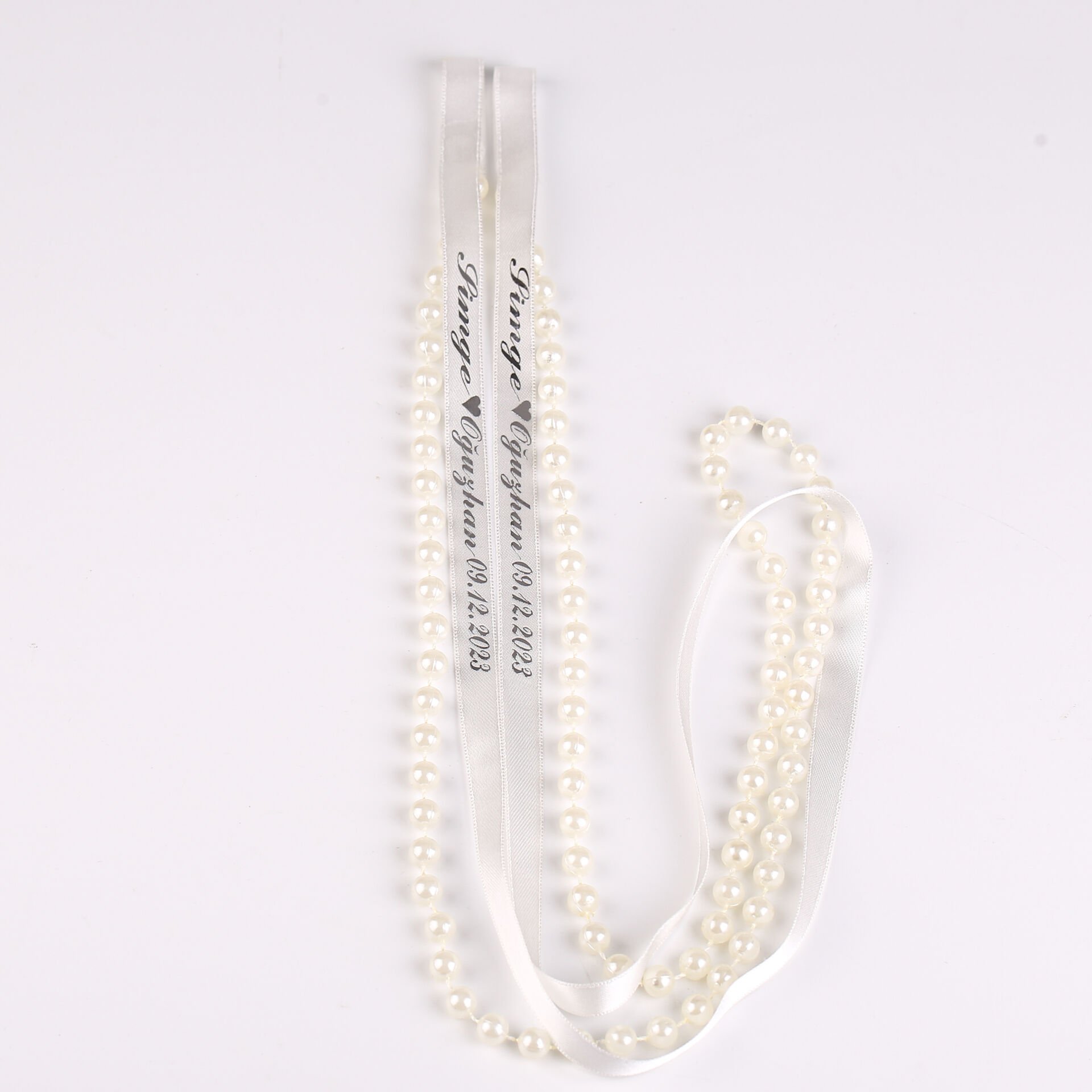 Dökülmeyen incili beyaz söz kurdelesi
