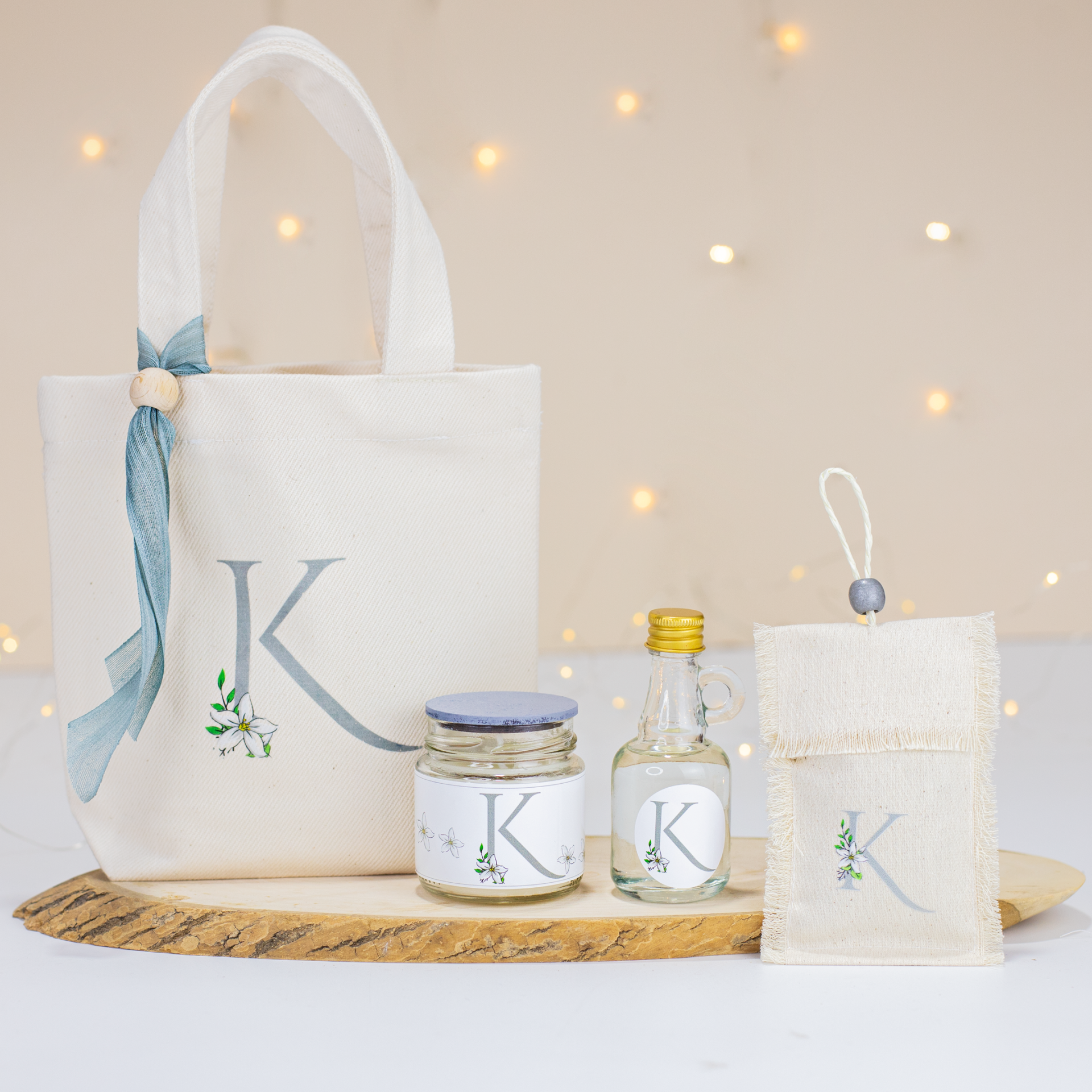 Kanvas çantalı baş harf baskılı set, özel günlerde misafirlerinize hem kullanışlı hem de şık bir hatıra hazırlamak için tercih edilebilecek çok parçalı bir hediyelik seçeneğidir. Bebek mevlüdü, hastane çıkışı, baby shower, doğum günü gibi anne-bebek organizasyonlarında kullanılabileceği gibi söz, nişan, düğün, nikah ve özel davetlerde de tercih edilebilir. Kanvas çanta üzerine baş harf baskısı sayesinde kişiselleştirilebilir ve organizasyonunuza özel anlamlı bir hatıra oluşturur.