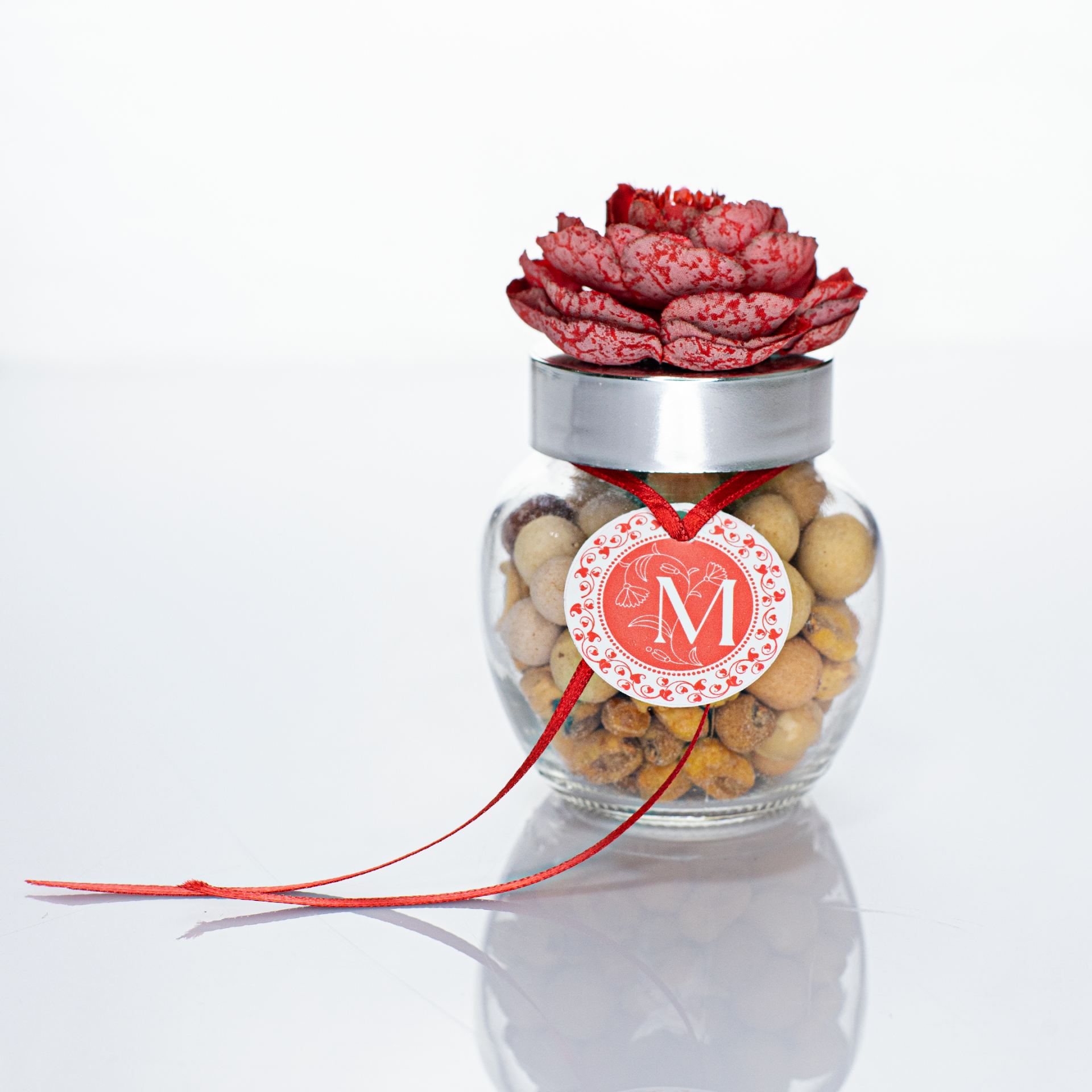 Kapak kısmı süslemeli olarak hazırlanan kuruyemiş kavanozu, kına gecesi başta olmak üzere kız isteme, söz, nişan, düğün ve nikah organizasyonlarında şık bir hediyelik alternatifi olarak tercih edilebilir. Zarif tasarımı sayesinde misafirlerinize özel gününüzü hatırlatacak anlamlı bir hatıra sunar. Aynı zamanda mevlit, baby shower, doğum günü ve çeşitli davetlerde ikramlık sunumu için de kullanıma uygun dekoratif bir seçenektir.