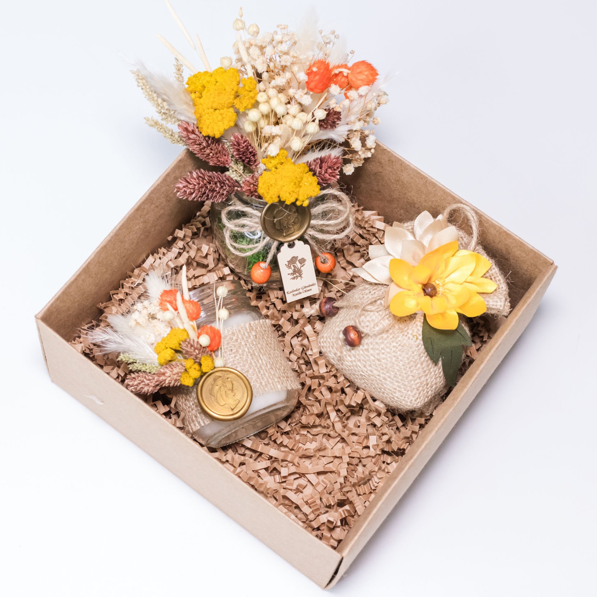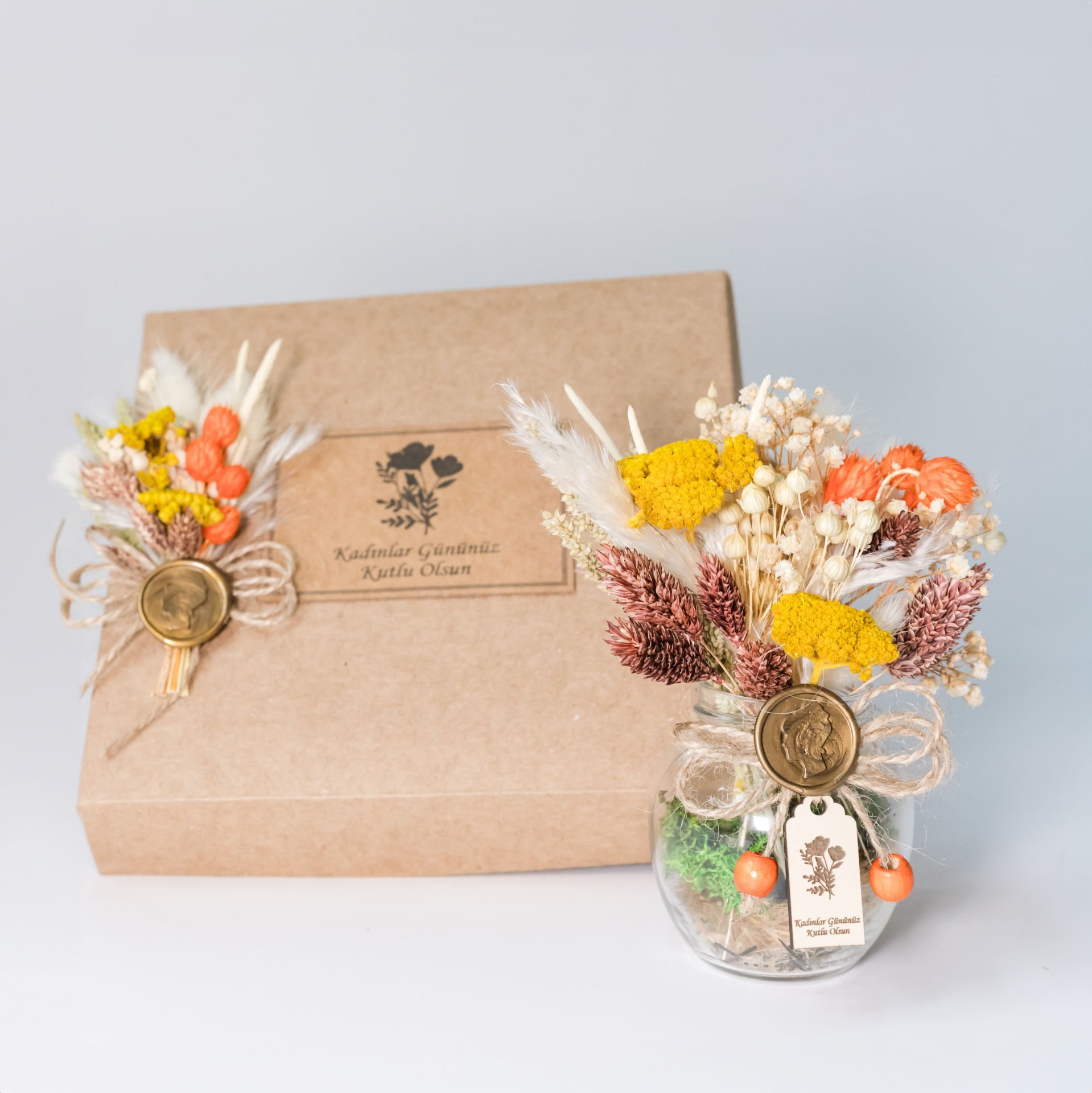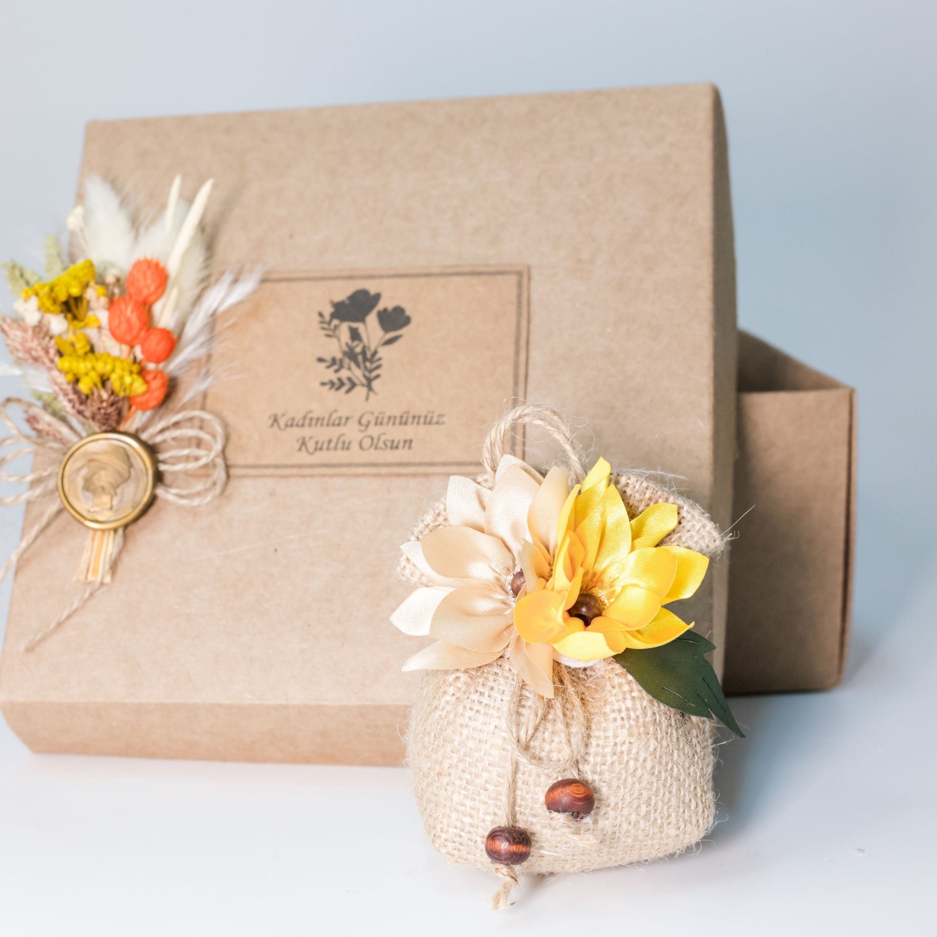 Kadınlar Gününe özel hazırlanan bu zarif hediye seti, sevdiklerinize kendilerini özel hissettirecek anlamlı bir Kadınlar Günü hediyesidir. Kırpık kağıt dolgulu ve süslemeli kraft karton kutu içerisinde sunulan set; süslemeli cam mum, dekoratif vazo ve lavanta dolu kese ile özenle tamamlanmıştır. Estetik ve anlamlı tasarımı sayesinde hem görsel olarak hoş bir dokunuş sağlar hem de sevdiklerinize duyduğunuz değeri hissettirir. Özel günlerde hediye edilebilecek, unutulmaz bir Kadınlar Günü hediyesi olarak öne çıkar.