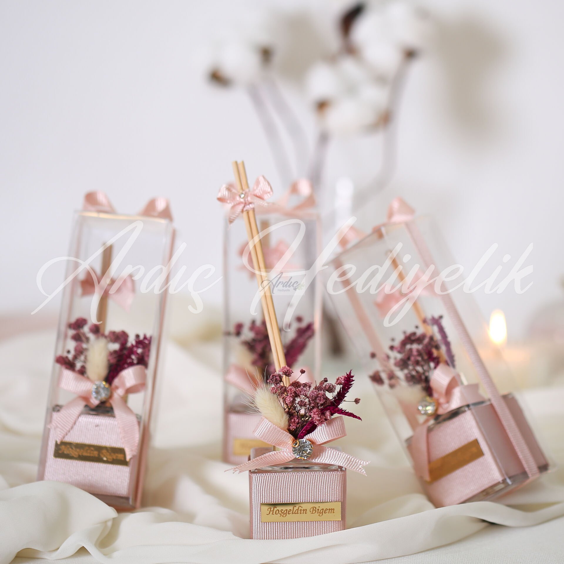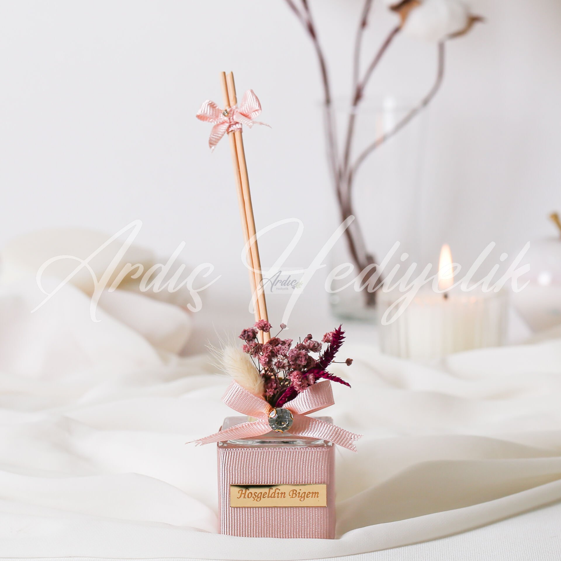 Bambu Çubuklu Oda Kokulu - Bordo Çiçekli, ev dekorasyonu, nikah hediyeliği ve özel gün organizasyonları için şık ve dekoratif bir koku alternatifidir. Söz ve nişan daveti, düğün organizasyonu, baby shower ve butik etkinliklerde masa üstü hediyelik olarak tercih edilir. Çiçekli bambu oda kokusu, dekoratif şişe oda parfümü ve organizasyon hediyelik oda kokusu aramalarına uygundur. Bordo çiçekli tasarımı sayesinde hem romantik hem zarif bir sunum sağlar. Su & esans karışımlı ya da orijinal oda kokulu seçenekleri ile ihtiyaca göre tercih edilebilir.
