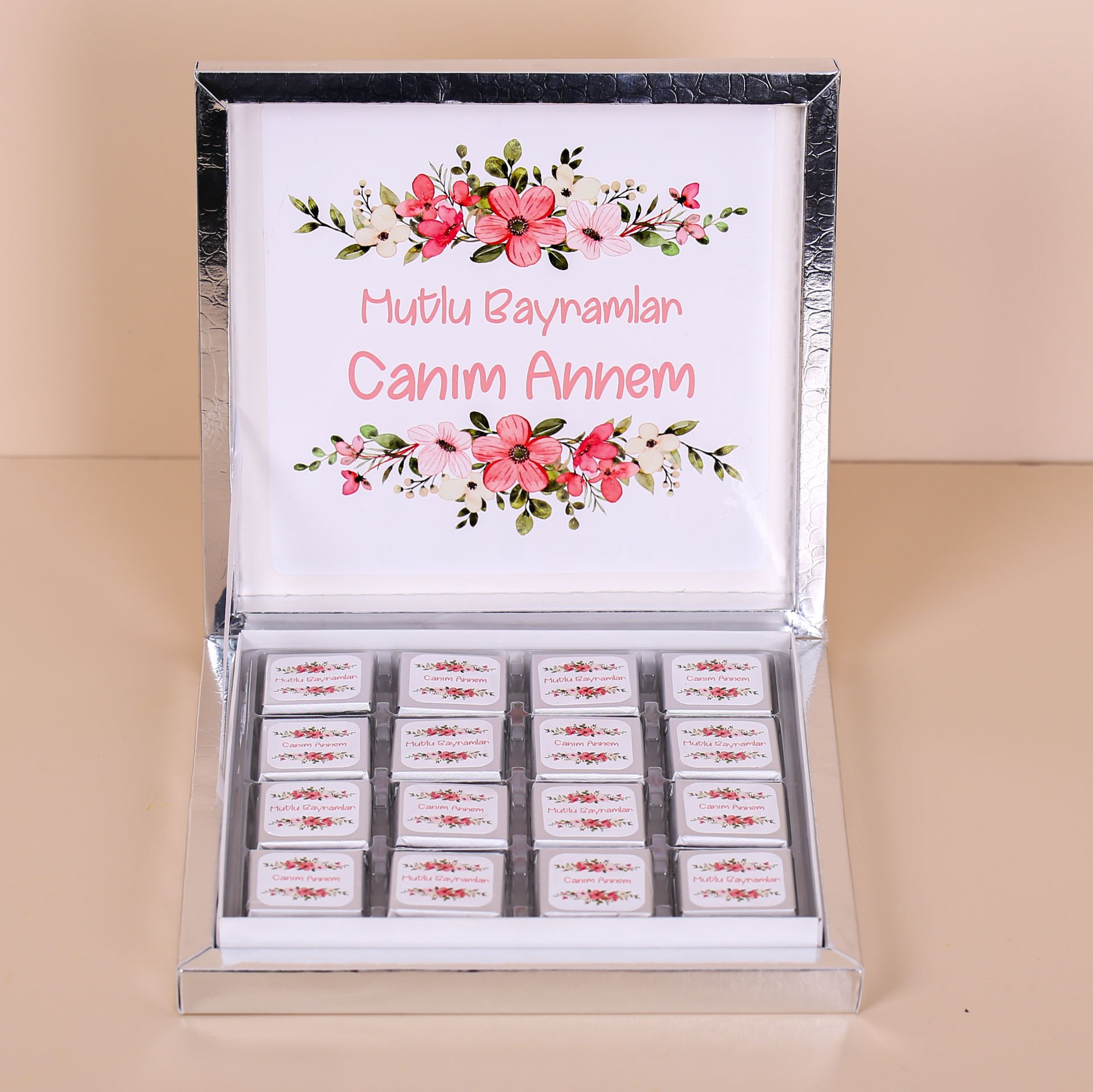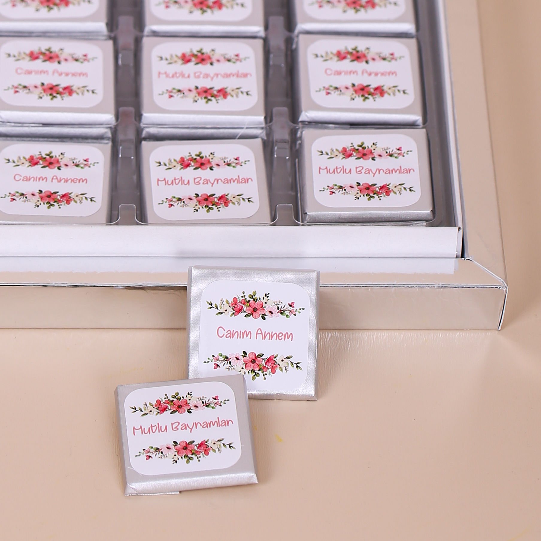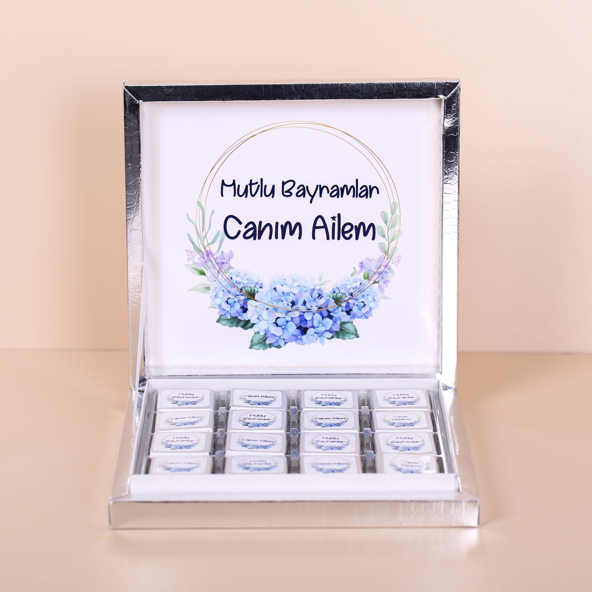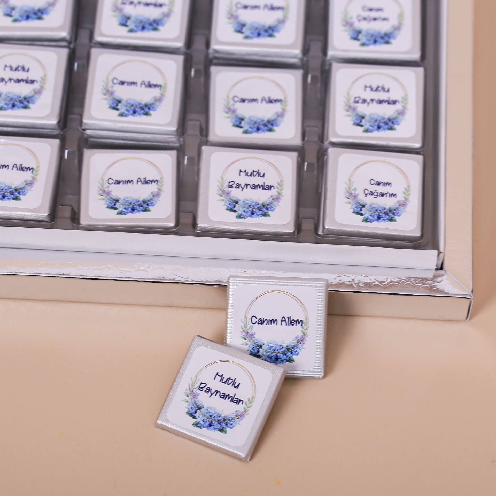 Gümüş kare kutu tasarımı sayesinde zarif ve dikkat çekici bir sunum sağlar. Size özel etiket ile isim, firma logosu veya bayram mesajı eklenerek kişiselleştirilebilir. Bayram ikramlığı ve kurumsal bayram çikolatası arayanlar için hem estetik hem anlamlı bir seçenektir.