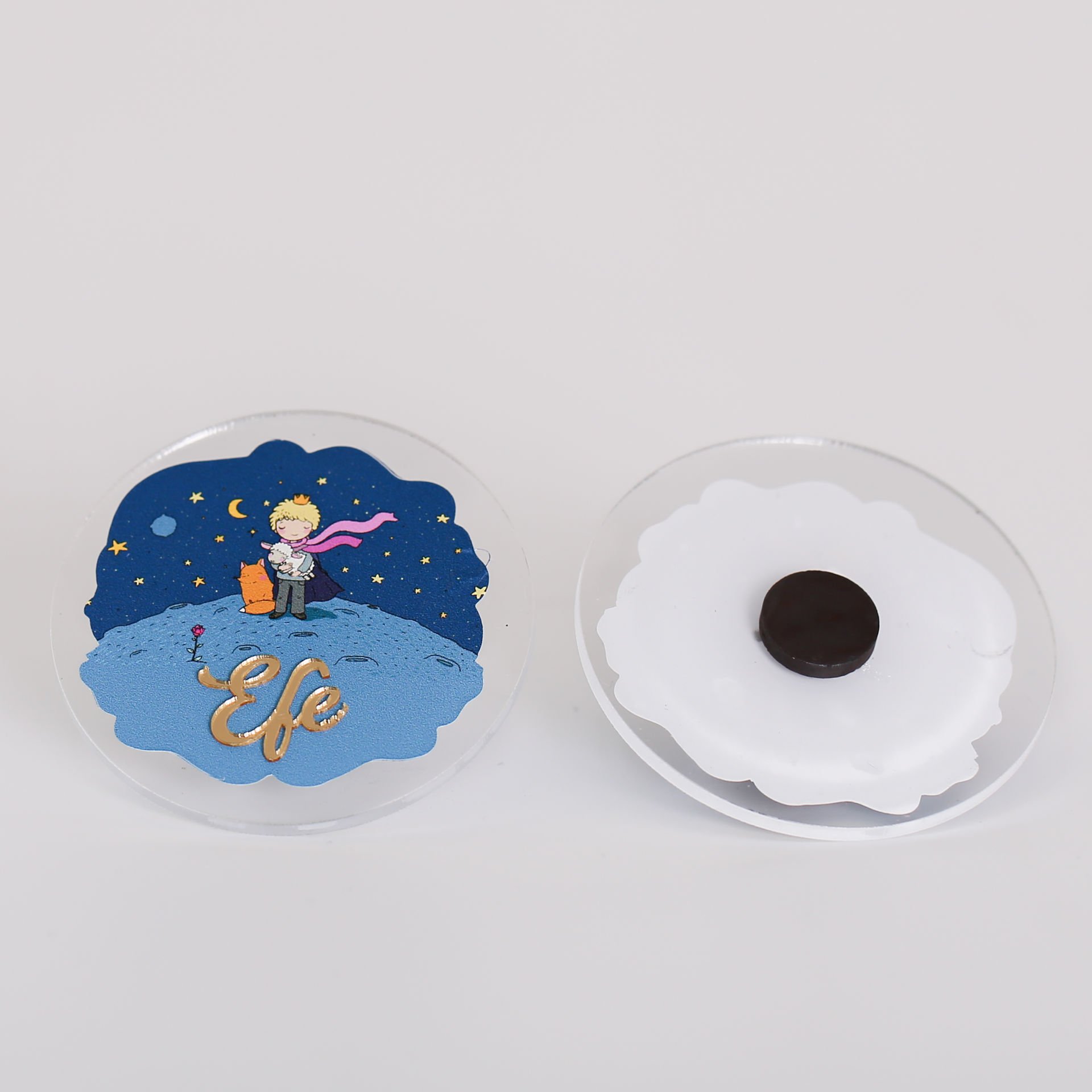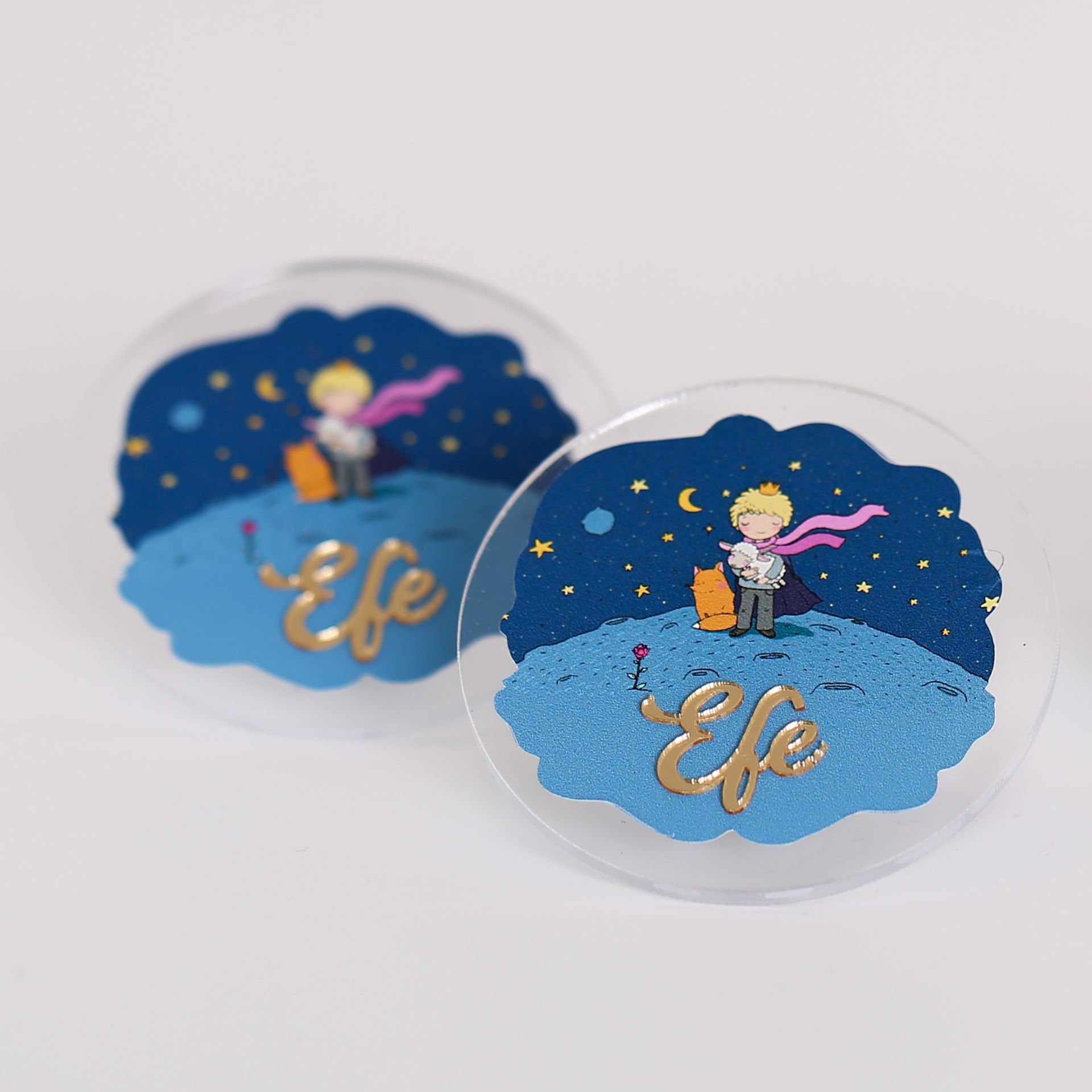 Bebek Magnet - Küçük Prens temalı tasarım, hastane çıkışı bebek hediyeliği, doğum magneti ve mevlüt hatırası arayanlar için özel olarak hazırlanır. Baby shower organizasyonu, diş buğdayı partisi ve 1 yaş doğum günü hatıralığı için anlamlı ve konsept uyumlu bir alternatiftir. Küçük Prens konseptli bebek magneti, isimli bebek hediyeliği ve kişiye özel doğum magneti aramalarına uygundur. Renkli özel kesim sticker ve pleksi isim etiketi ile hazırlanarak hem dekoratif hem kalıcı bir bebek anı hediyesi sunar.