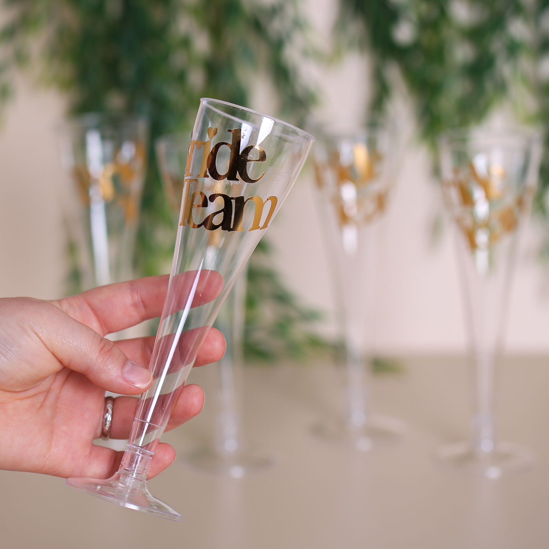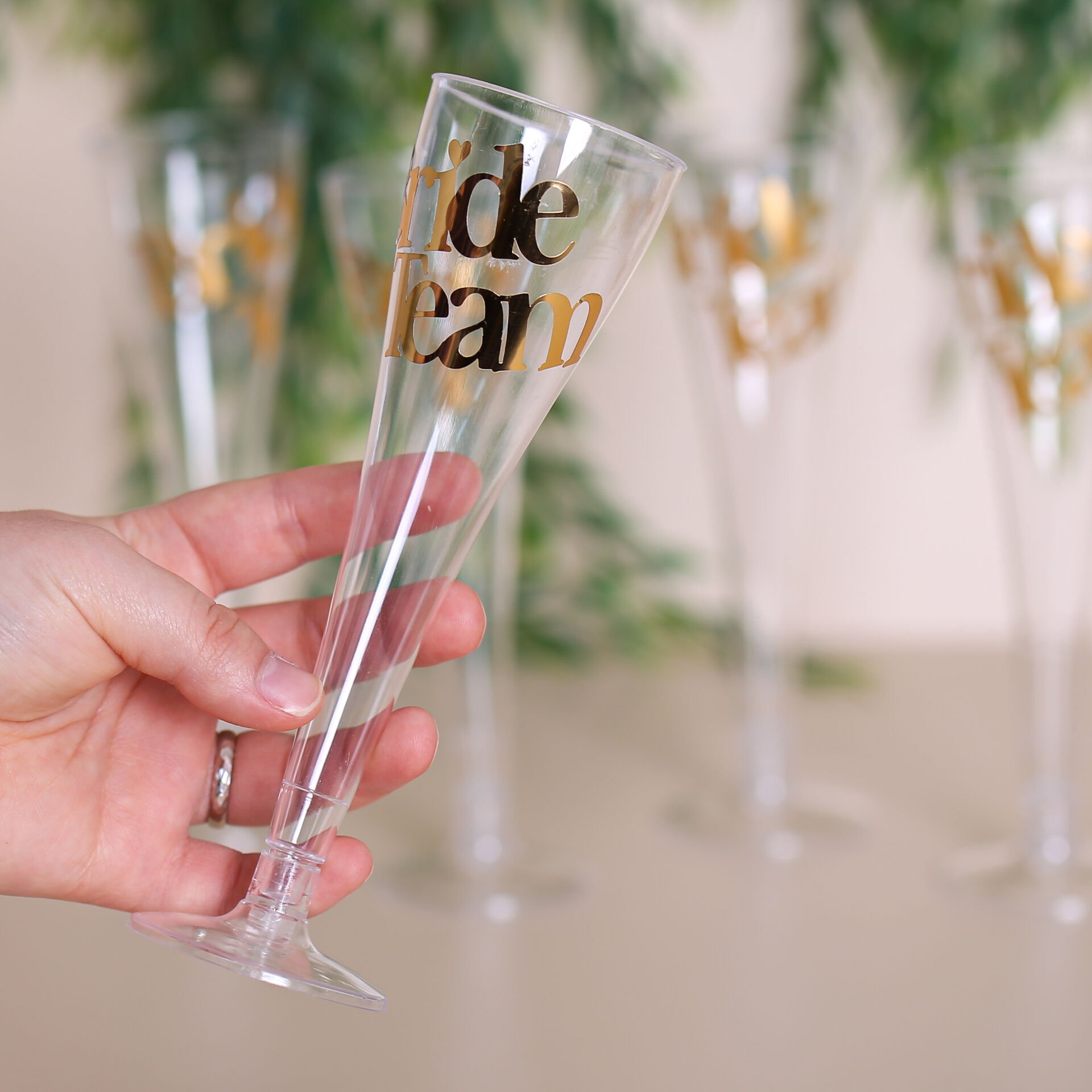 Bride & Bride Team yazılı plastik şampanya kadehi