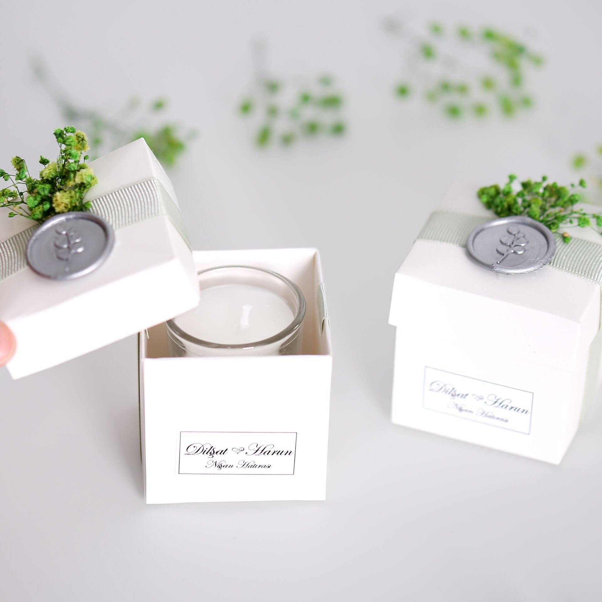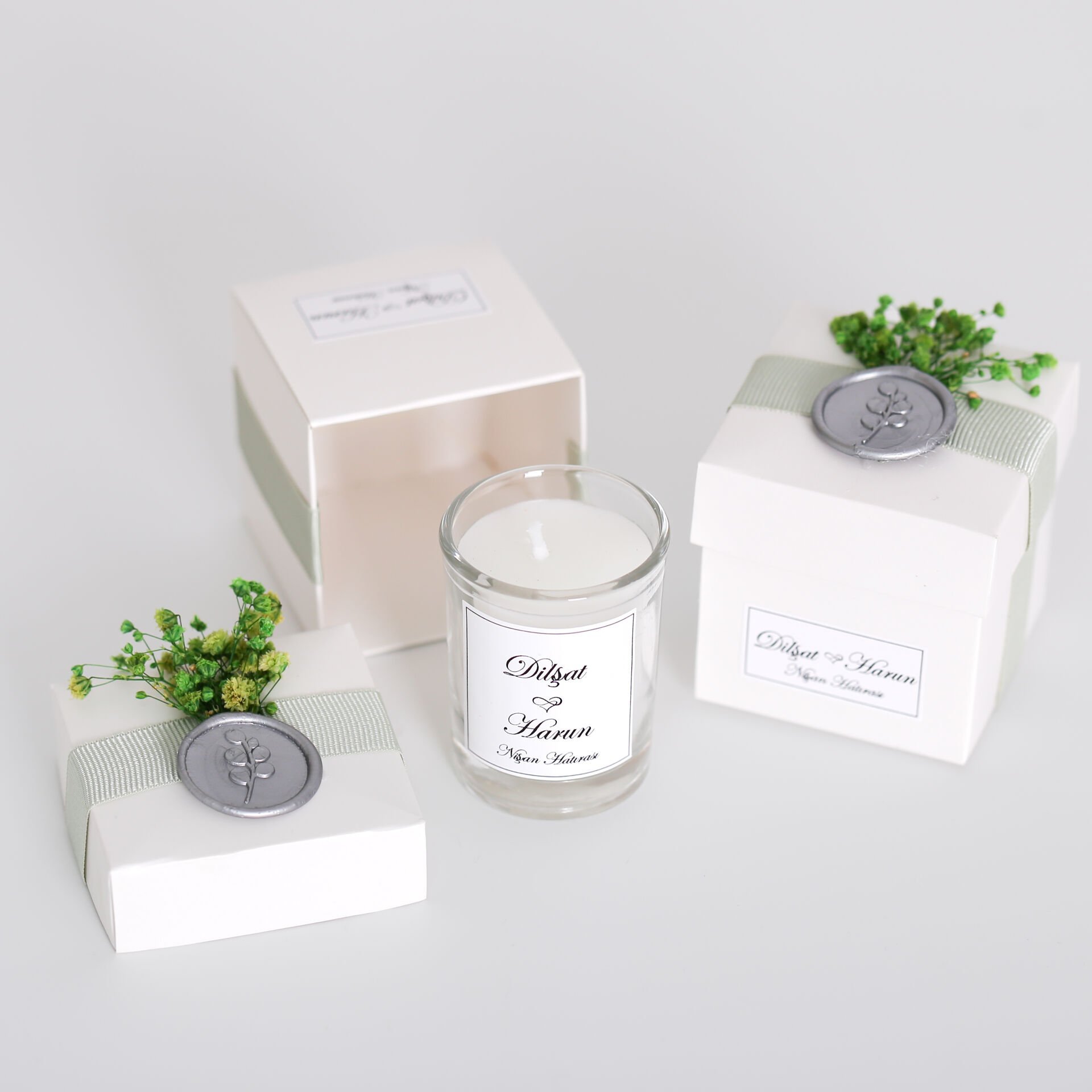 Renkli cipso süslemeleri ve mühür detaylı beyaz kutusu ile hazırlanan cam bardak mum; söz, nişan, düğün, kına gecesi, nikah, mevlit, baby shower, doğum günü ve özel gün organizasyonlarında misafirlere sunulabilecek zarif bir hediyelik alternatiftir. Şık tasarımı sayesinde hem dekoratif amaçlı kullanılabilir hem de özel gün hatırası olarak saklanabilir.