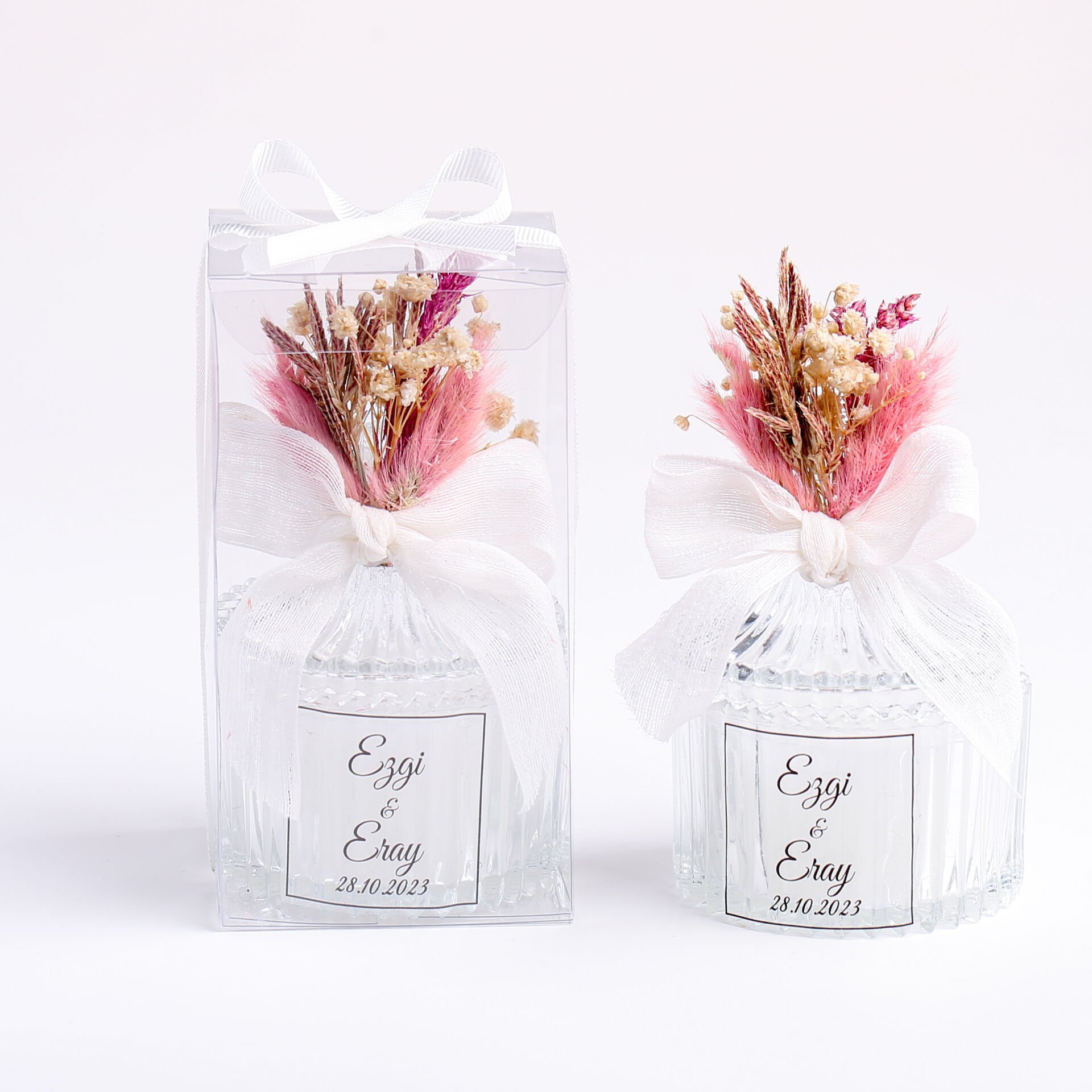 Cam şekerlik mum, zarif tasarımıyla özel günlerde hem dekoratif hem de işlevsel bir seçenek sunar. Kutulu olarak sunulan bu şık mum, düğün, nişan, kına gecesi ve diğer organizasyonlarda estetik bir dokunuş yaratır. 6,5 x 6,5 x 12 cm boyutlarında olan bu mum, hem hediye olarak verilebilir hem de masalarınızı süsleyebilir.