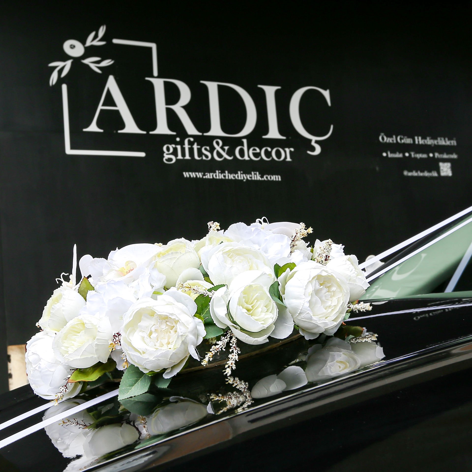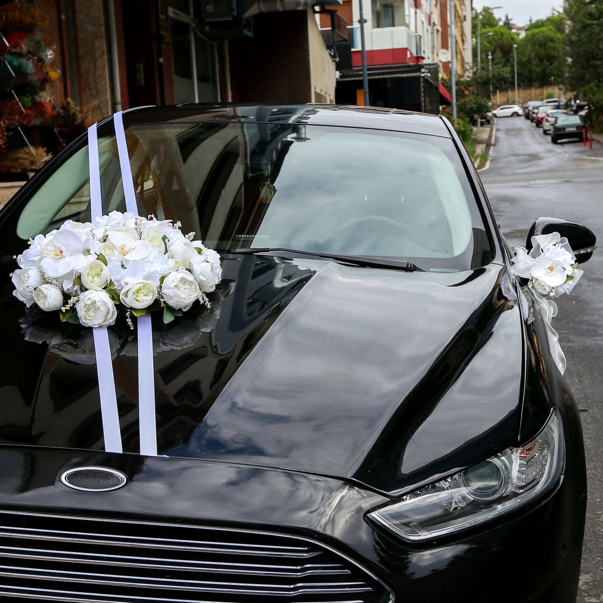Beyaz orkide detaylarıyla hazırlanan düğün aracı süsleme seti; zarif ve romantik görünümüyle gelin arabanıza şıklık katar. Özel gün konseptine uyum sağlayan tasarımı sayesinde düğün konvoyunda bütünlük oluşturur ve unutulmaz anlarınıza estetik bir dokunuş ekler.