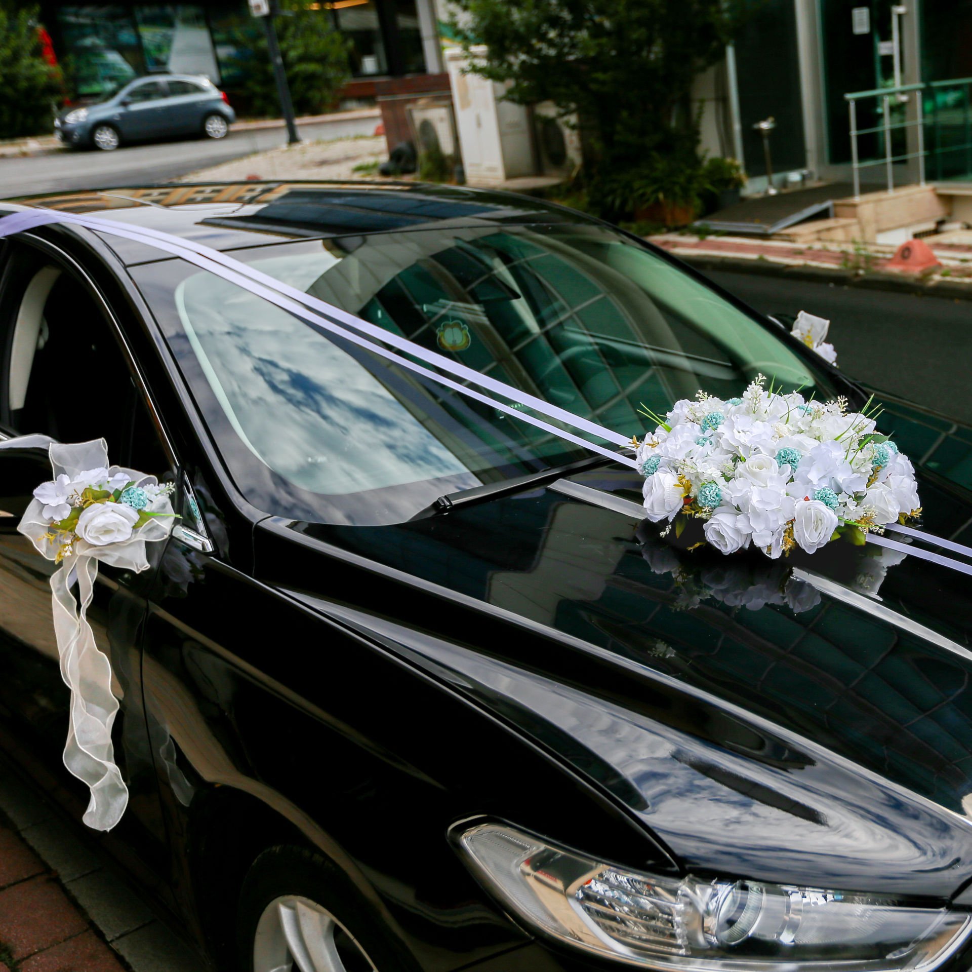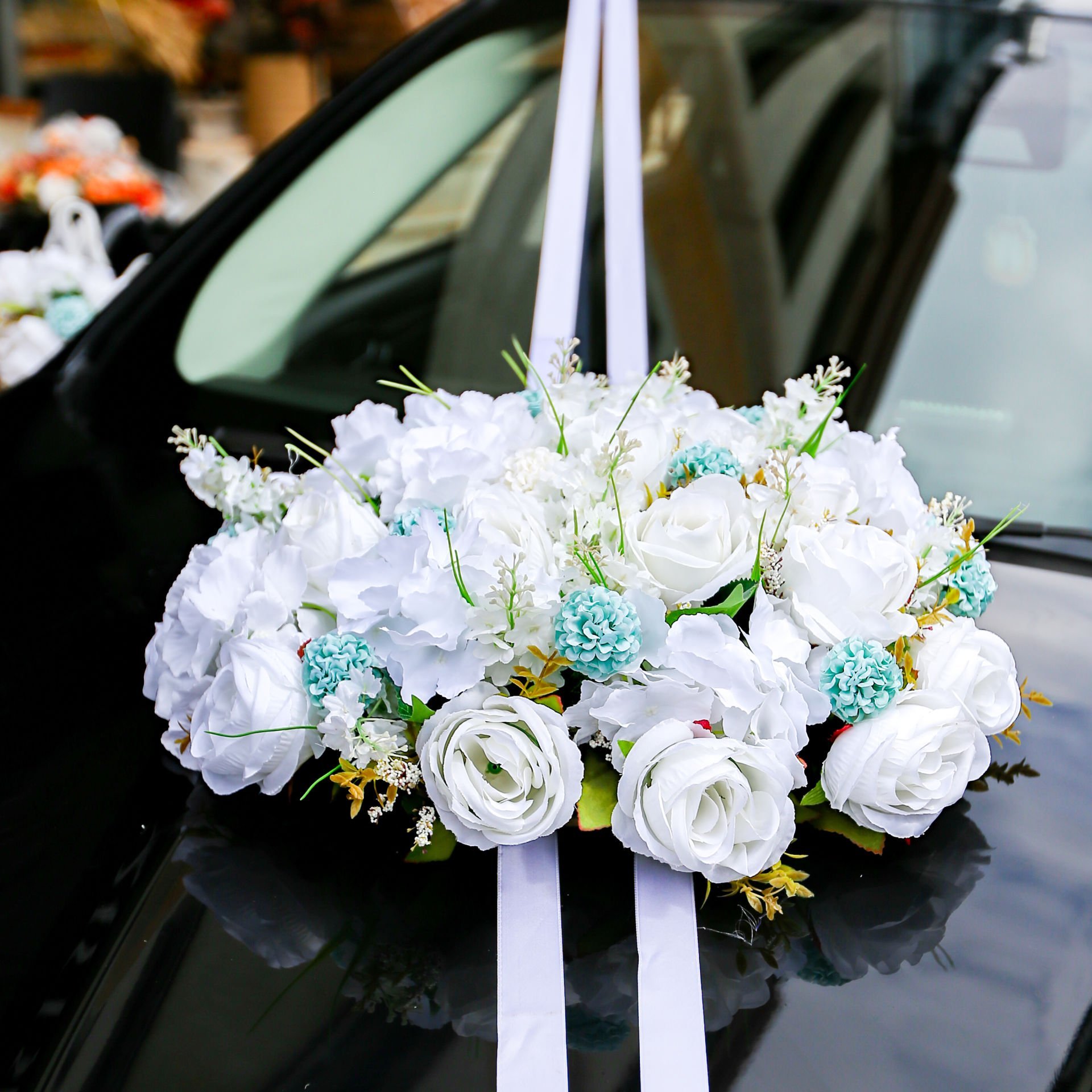 Mavi ve beyaz gül detaylarıyla hazırlanan düğün aracı süsleme seti; zarif ve dikkat çekici tasarımıyla gelin arabanıza şık bir görünüm kazandırır. Düğün konvoyunda bütünlük sağlayan uyumlu parçaları sayesinde özel gününüzün atmosferini tamamlayan estetik bir dekorasyon alternatifidir.