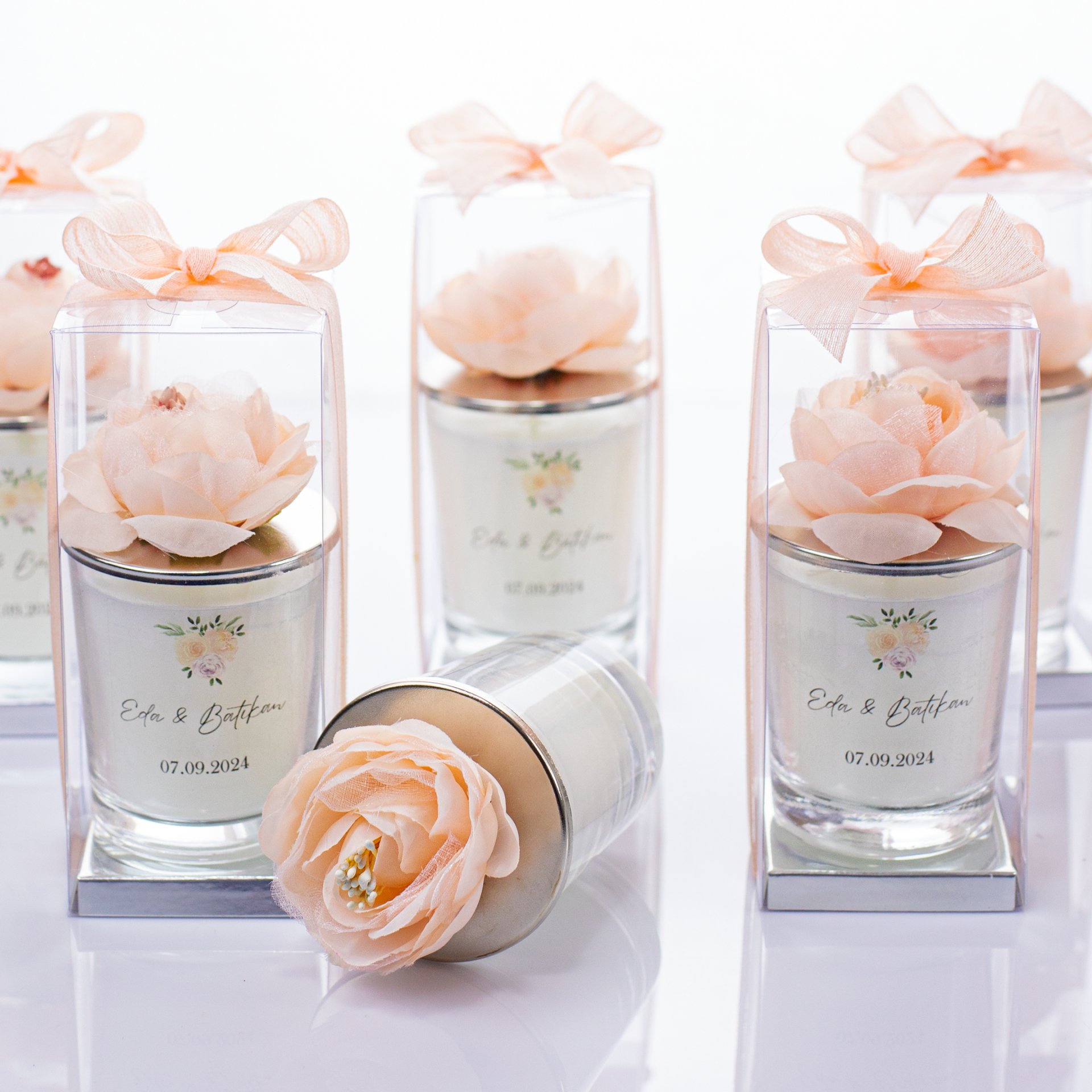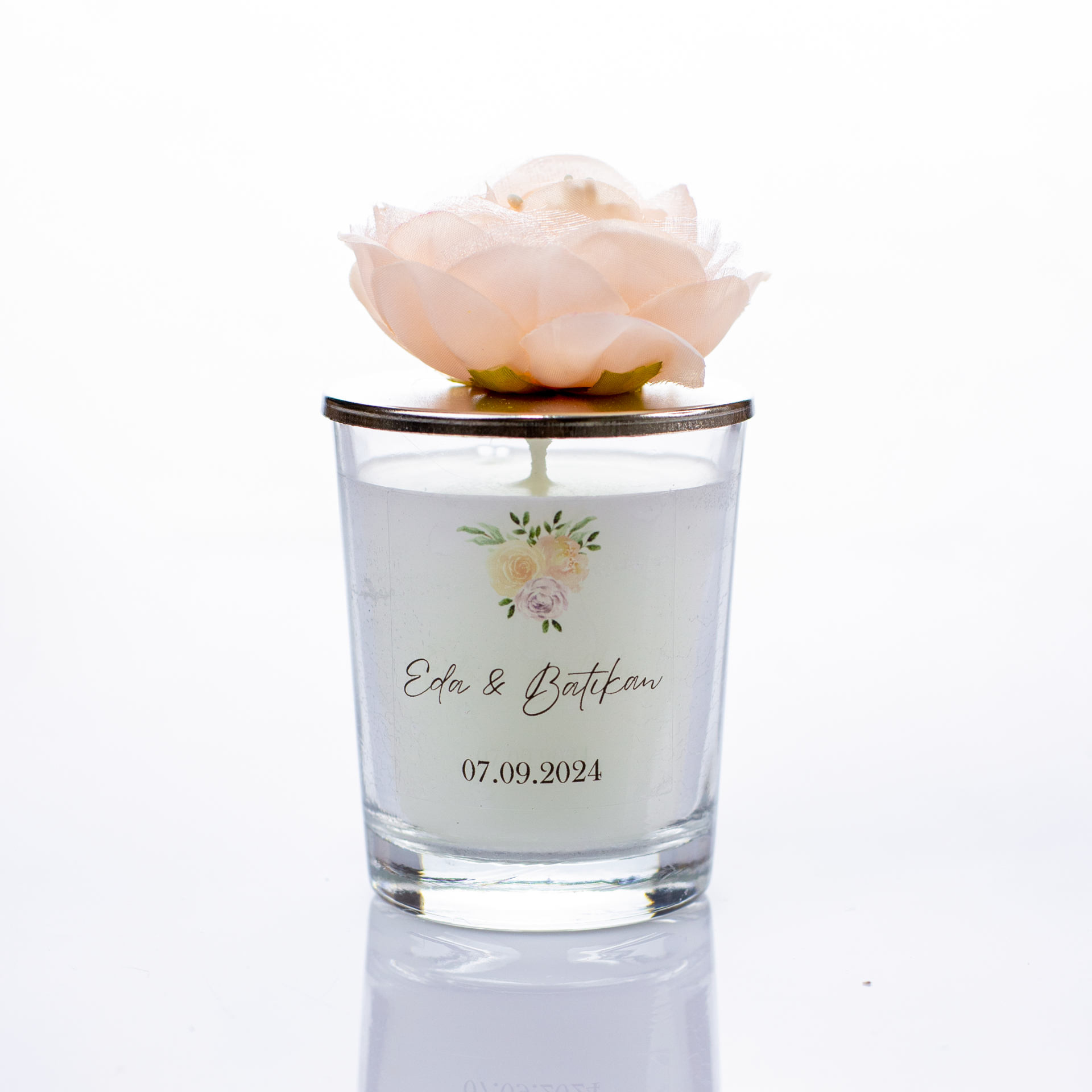 Somon tonlarında güllerle süslenen bardak mum, zarif ve romantik tasarımıyla söz, nişan, kına, nikah, düğün, mevlit, doğum günü ve özel davetlerde şık bir hediyelik olarak tercih edilebilir. İsteğe bağlı kişiselleştirme seçeneği sayesinde isim, tarih veya kısa not eklenerek hem organizasyon hatırası hem de dekoratif bir hediye olarak kullanılabilir.