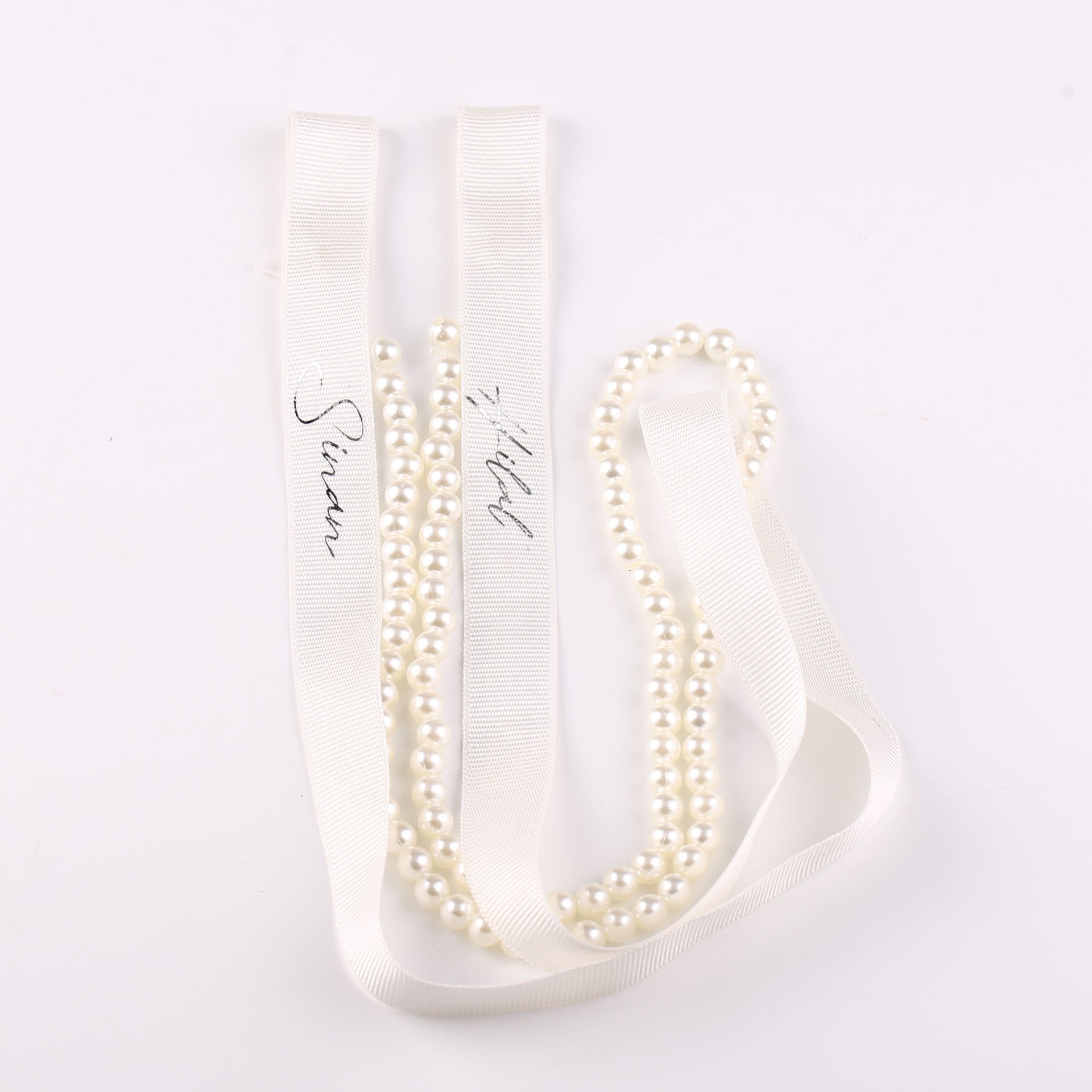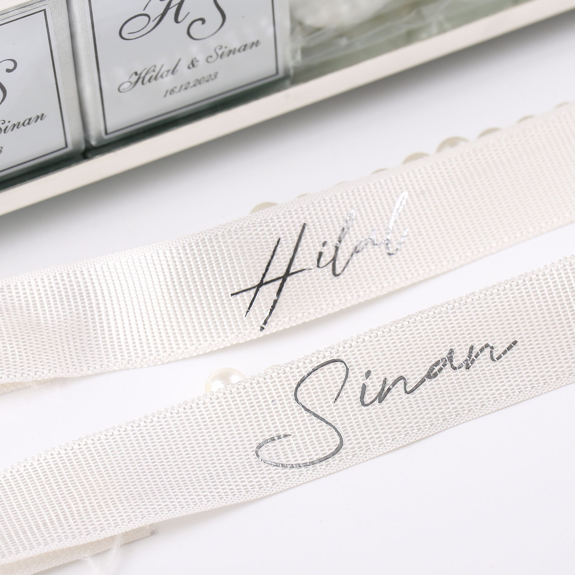 İsim baskılı dökülen incili yüzük kurdelesi; söz, nişan ve isteme törenlerinde yüzük kesme anına zarif ve şık bir dokunuş katan özel bir aksesuardır. Grogren kurdele üzerine uygulanan kişiye özel isim baskısı ve dökülen inci detaylarıyla organizasyon konseptine uyum sağlar, fotoğraflarda estetik bir görünüm oluşturur ve hatıra olarak saklanabilir.