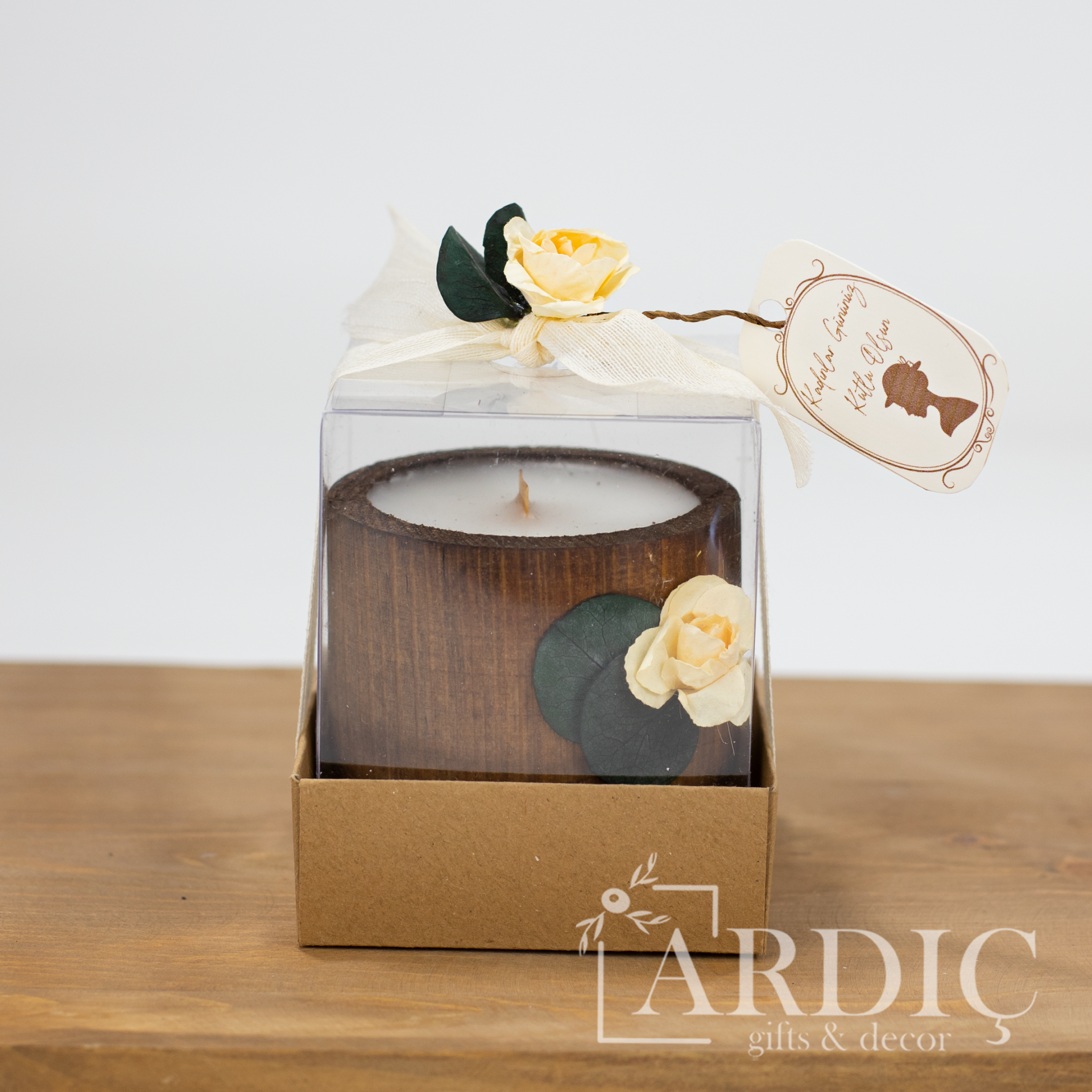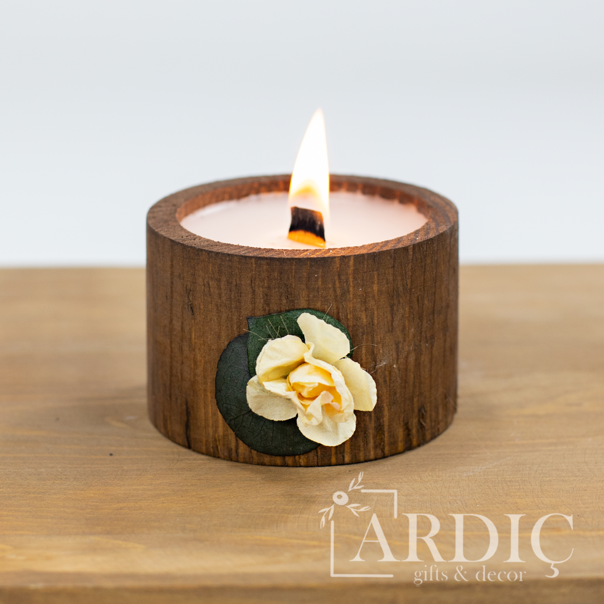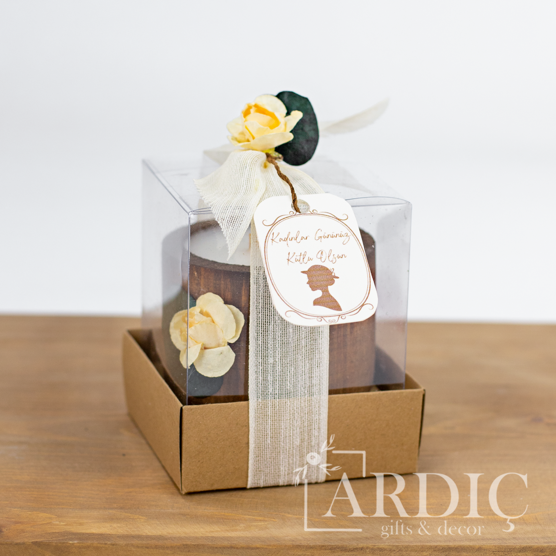 Kadınlar Gününe özel süslenmiş asetat kutu sunumunda veya kutusuz olarak tercih edilebilen bu doğal ahşap mum, sevdiklerinize kendilerini özel hissettirecek anlamlı bir Kadınlar Günü hediyesi sunar. Açık ve koyu renk seçenekleriyle, hem dekoratif hem de şık bir hediye alternatifi olarak öne çıkar.