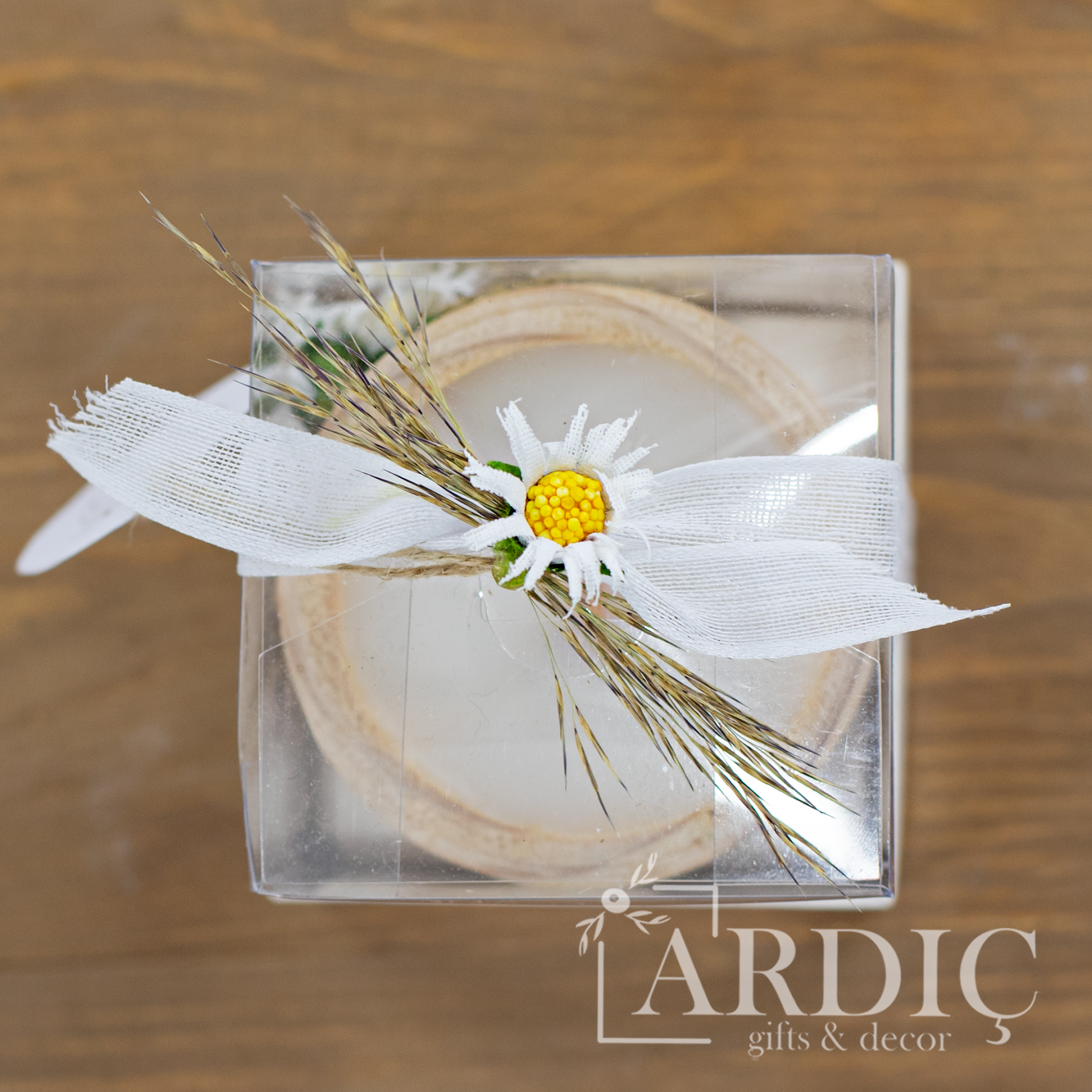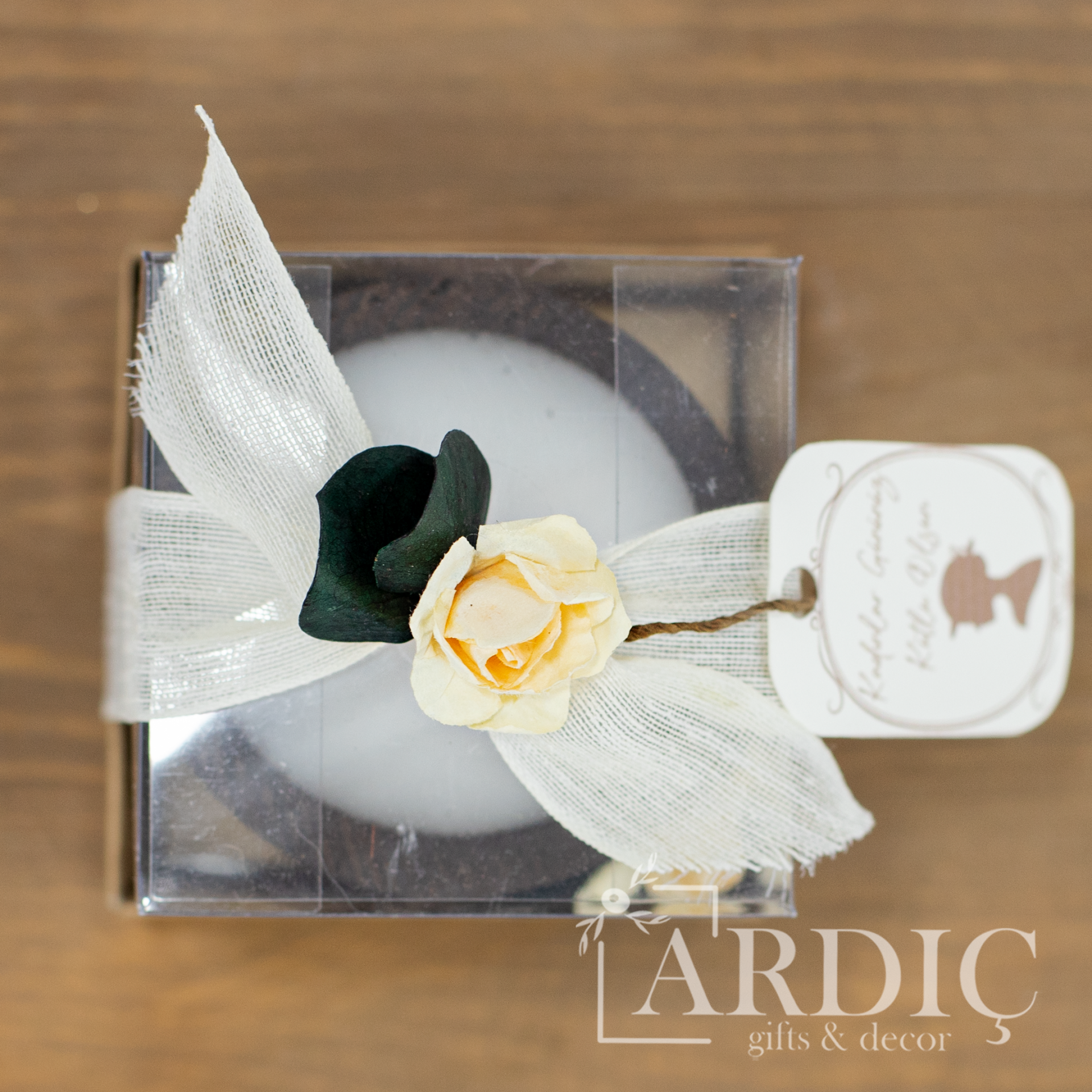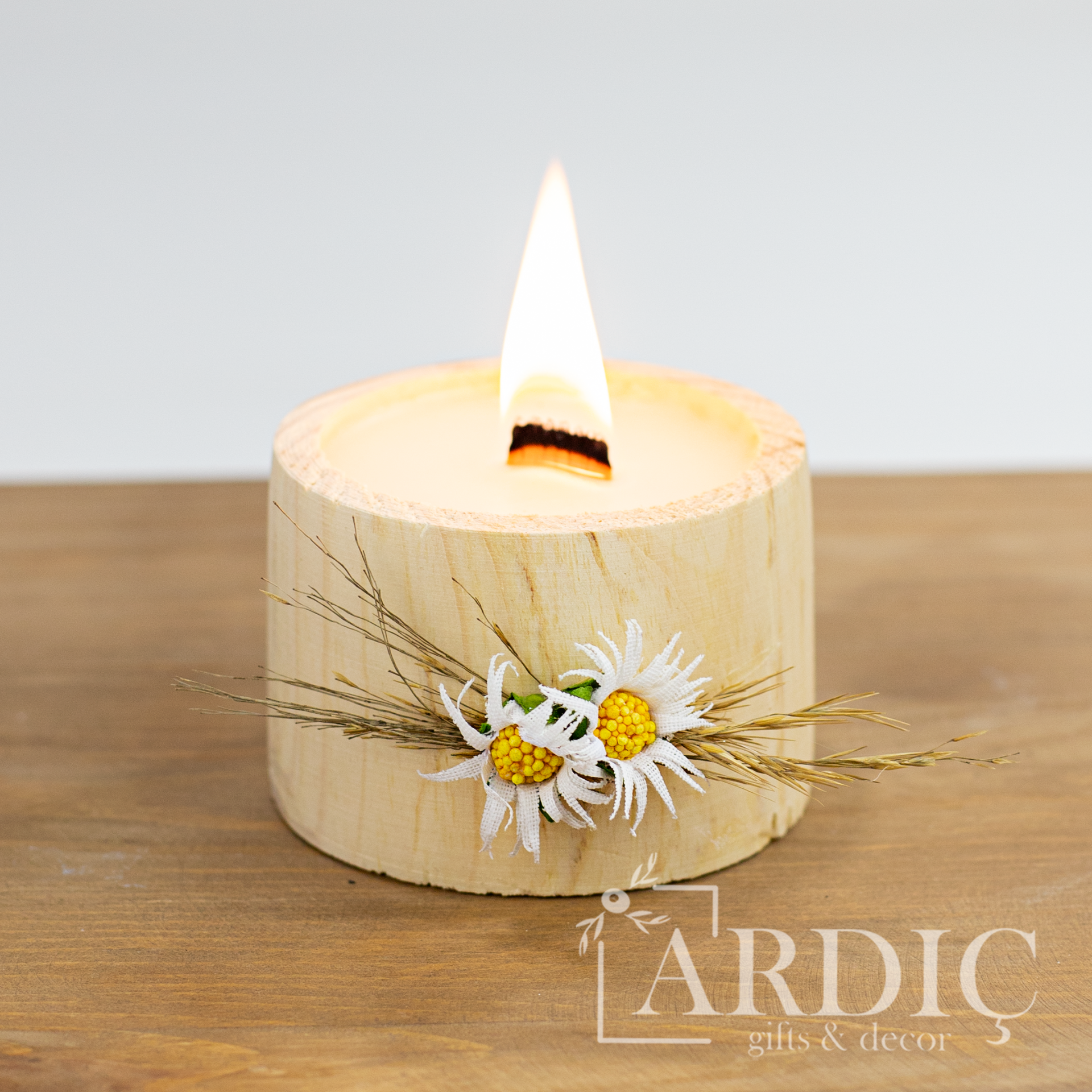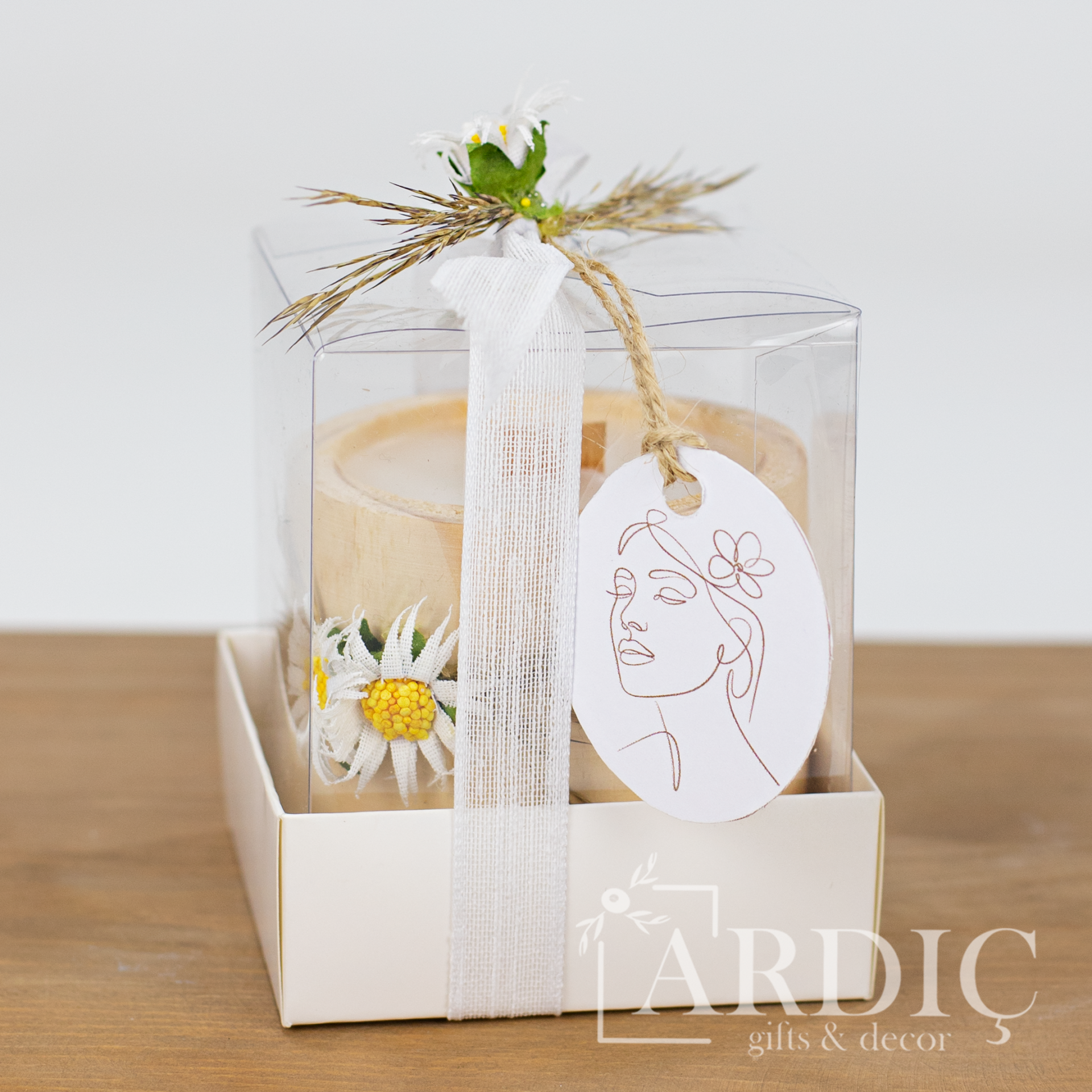 Kadınlar Gününe özel süslenmiş asetat kutu sunumunda veya kutusuz olarak tercih edilebilen bu doğal ahşap mum, sevdiklerinize kendilerini özel hissettirecek anlamlı bir Kadınlar Günü hediyesi sunar. Açık ve koyu renk seçenekleriyle, hem dekoratif hem de şık bir hediye alternatifi olarak öne çıkar.