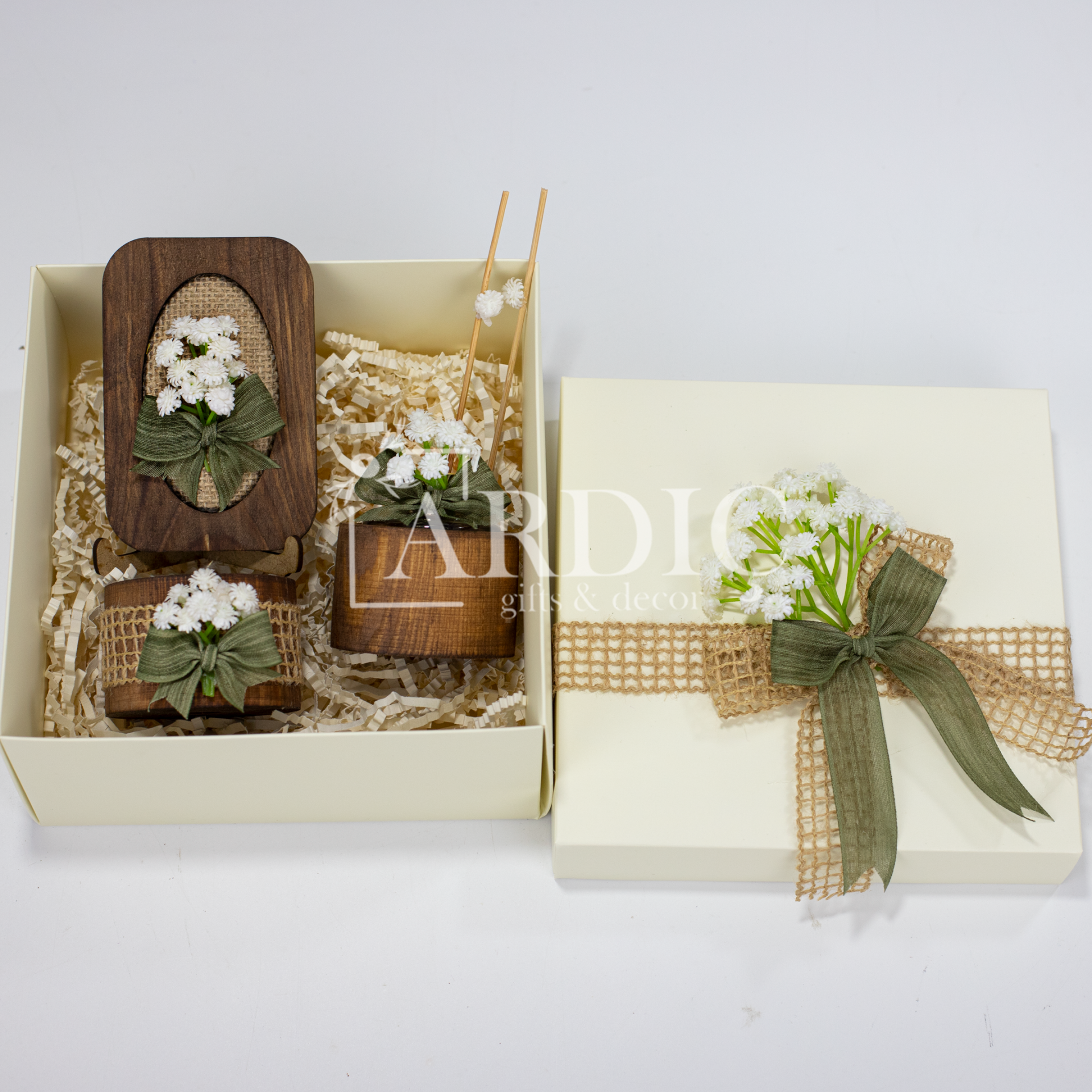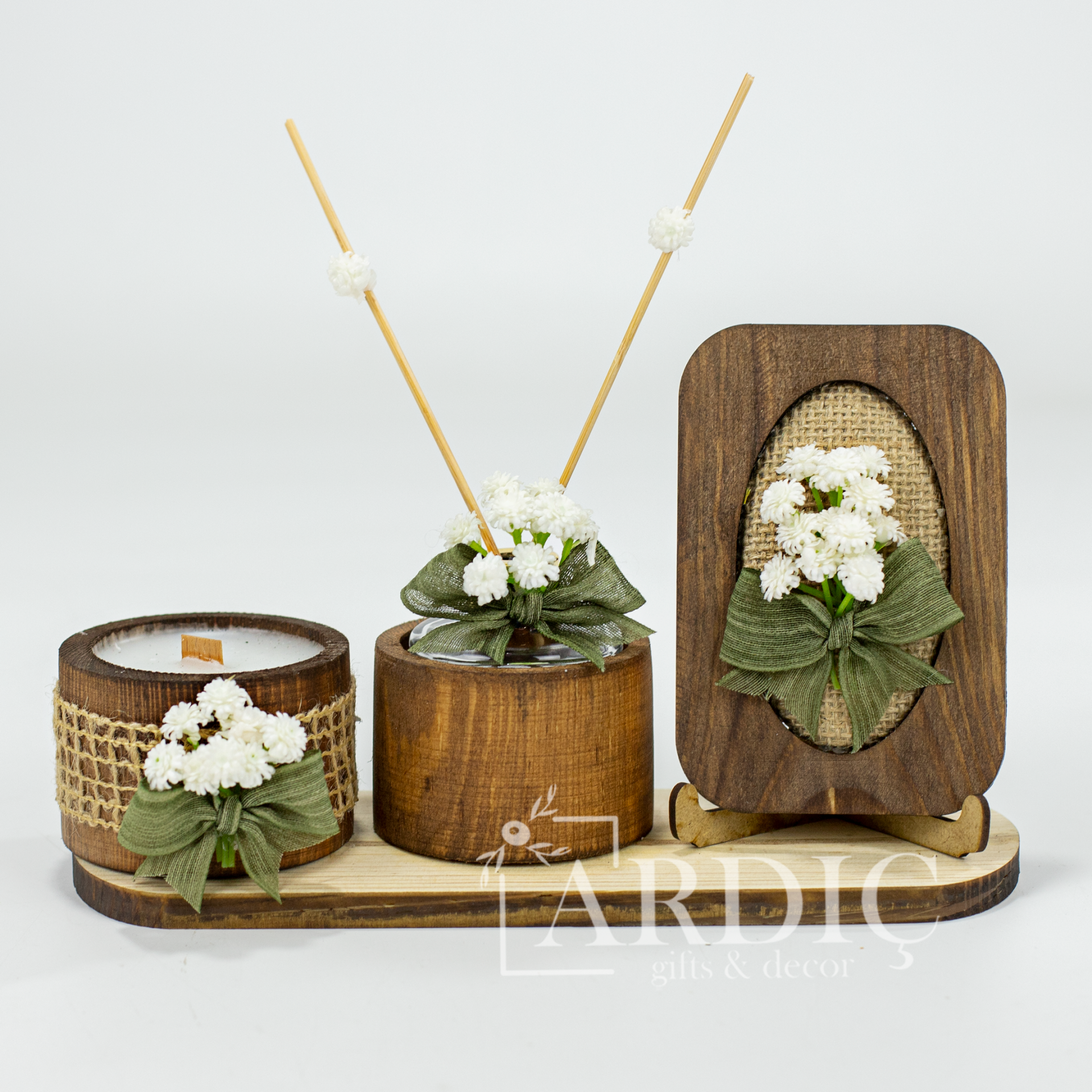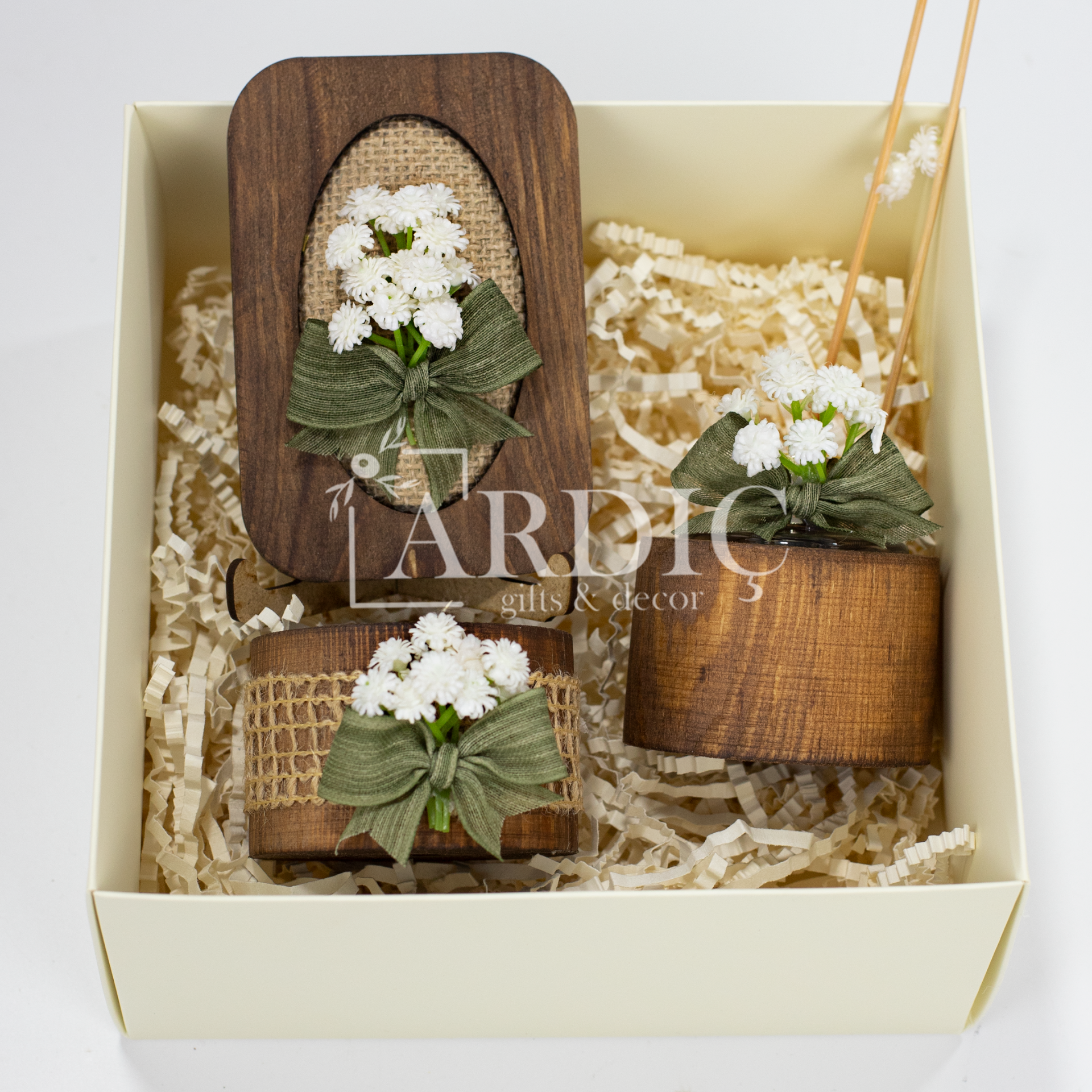 Zarif sunumu ve doğal tasarımıyla hazırlanan bu özel set, anlamlı bir Kadınlar Günü hediyesi arayanlar için özenle oluşturulmuştur. Şık hediye kutusu içerisinde dekoratif mum, cam şişe oda kokusu ve ahşap zeminli kuru çiçek pano yer alır. Hem estetik hem de kullanışlı parçaları bir araya getiren bu set, kalıcı ve şık bir Kadınlar Günü hediyesi seçeneği sunar. Özel günlerde annenize, eşinize ya da sevdiklerinize verebileceğiniz unutulmaz bir Kadınlar Günü hediyesi olarak tercih edebilirsiniz.