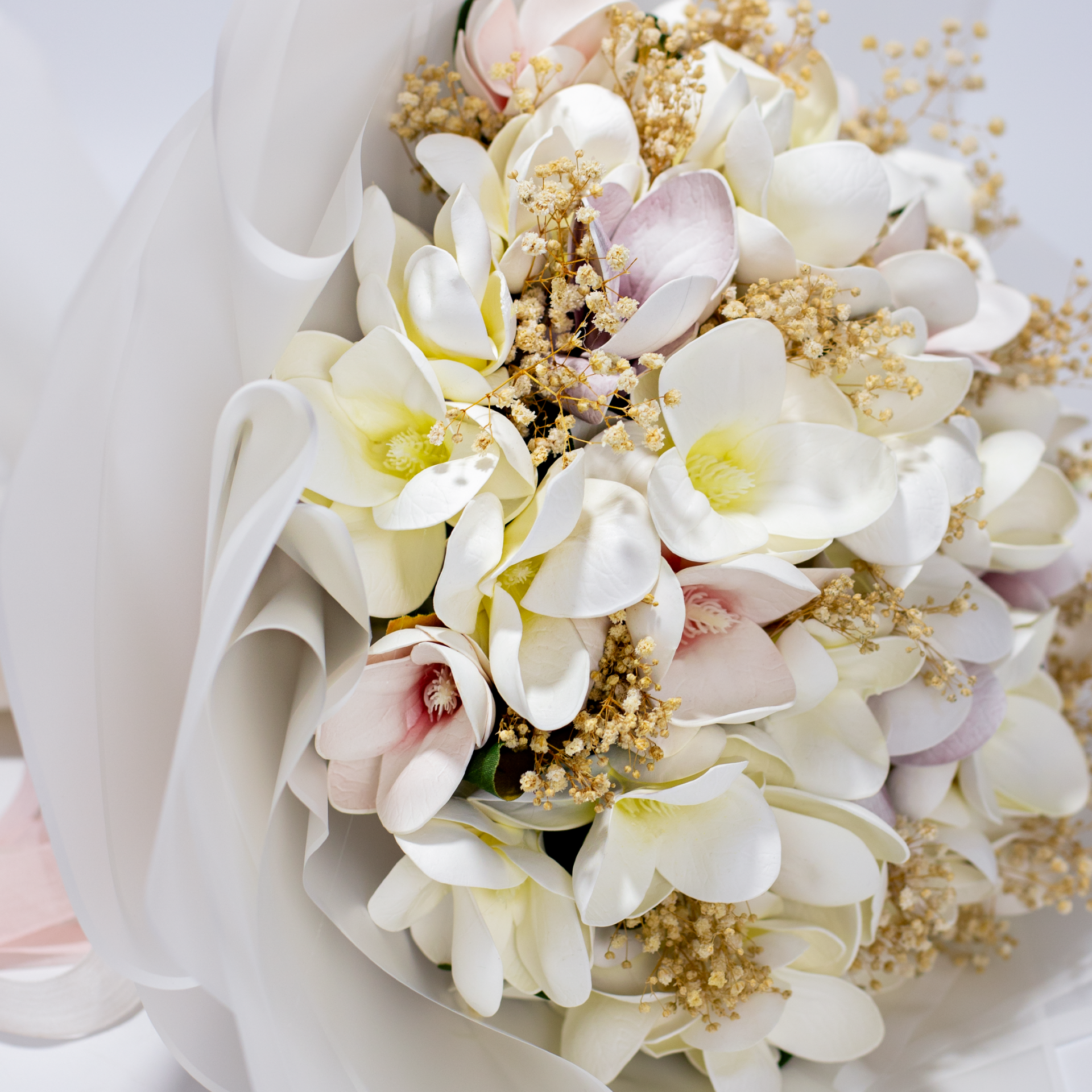 Soft renk tonlarıyla hazırlanan manolya buketi, kız isteme, söz, nişan, düğün ve nikah organizasyonlarında zarif bir dekor ve şık bir hediye alternatifi olarak tercih edilebilir. Romantik ve sade konseptlere uyum sağlayan estetik tasarımı sayesinde özel günlerinize zarafet katar. Aynı zamanda özel davetler, kutlamalar ve farklı organizasyonlar için de kullanıma uygun dekoratif bir aranjmandır.