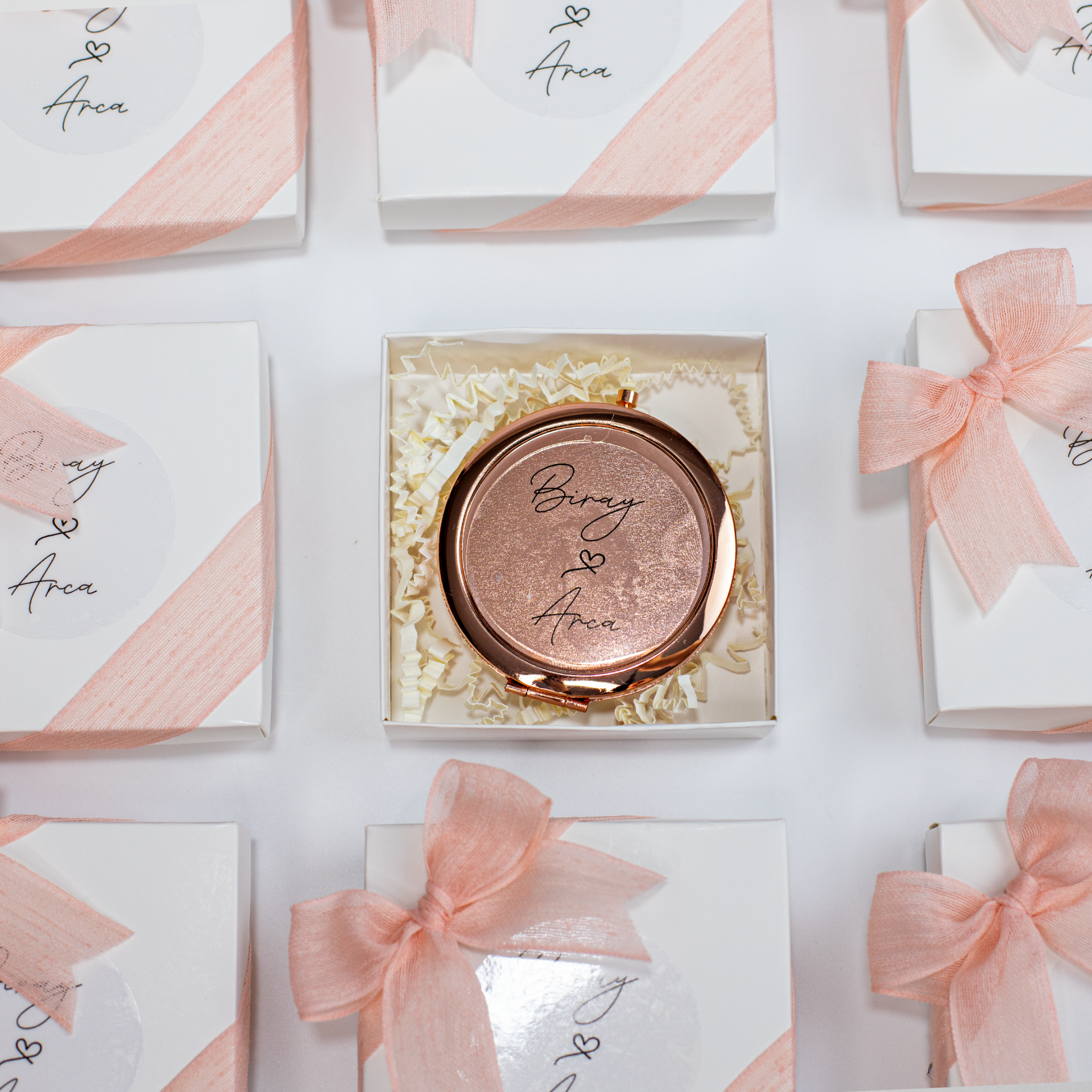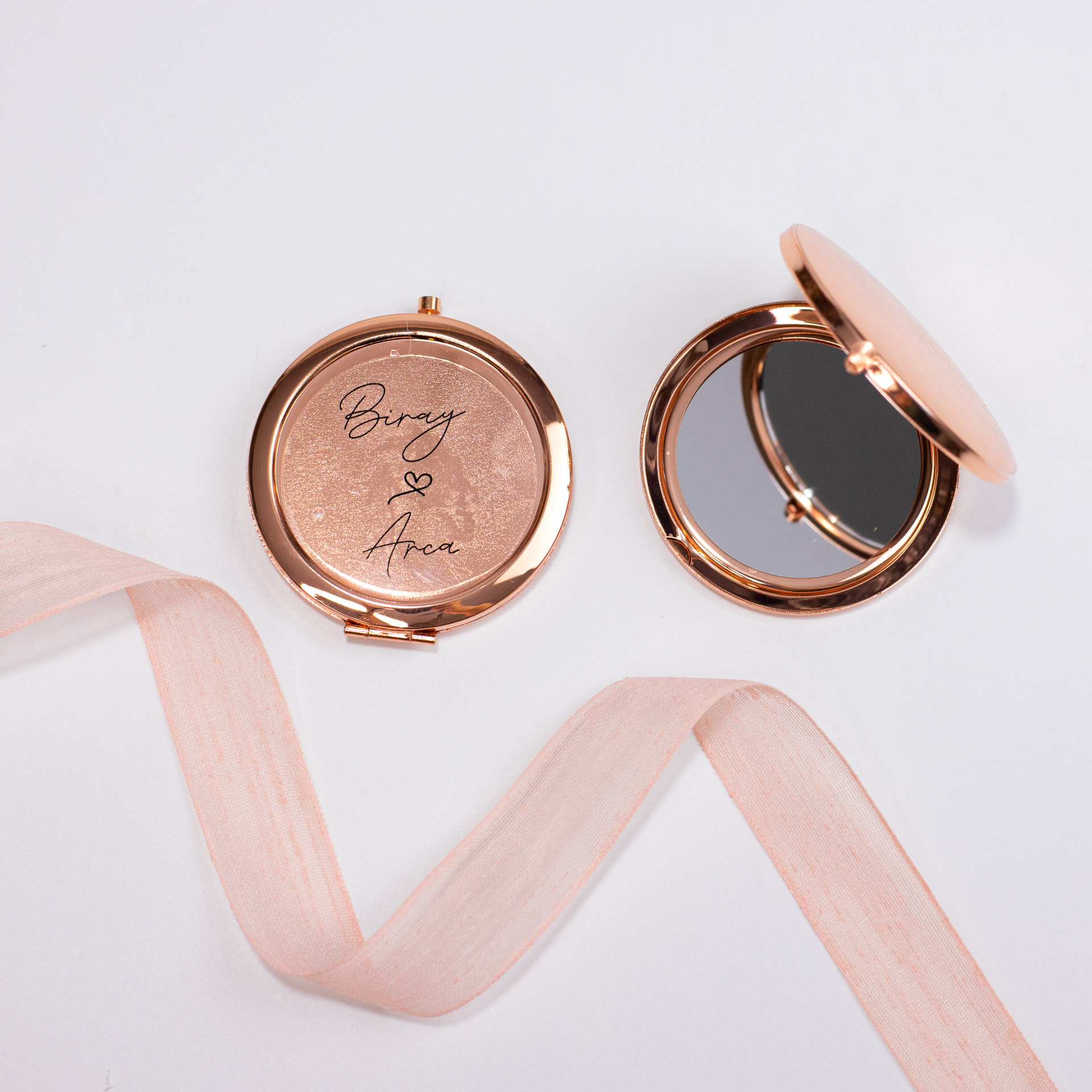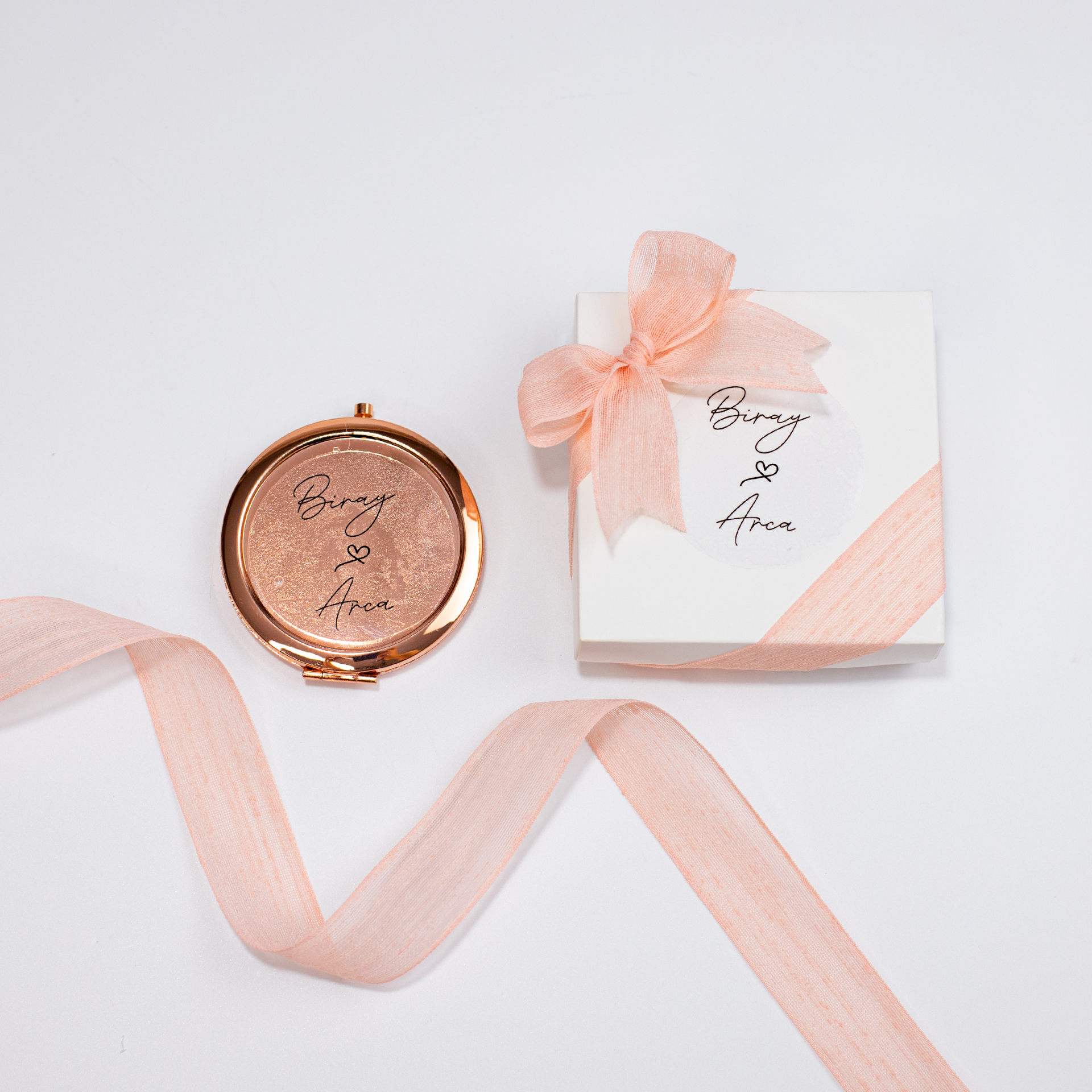 Rose renk metal çerçeveli yuvarlak ayna, şık ve modern tasarımıyla hem günlük kullanım hem de hediye alternatifi olarak tercih edilebilecek zarif bir dekoratif üründür. Makyaj aynası, masa üstü dekoru veya hediye sunumlarında estetik bir tamamlayıcı olarak kullanılabilir. Aynı zamanda kız isteme, söz, nişan, kına, düğün ve nikah organizasyonlarında konsept dekor veya sunum aksesuarı olarak da tercih edilebilir.