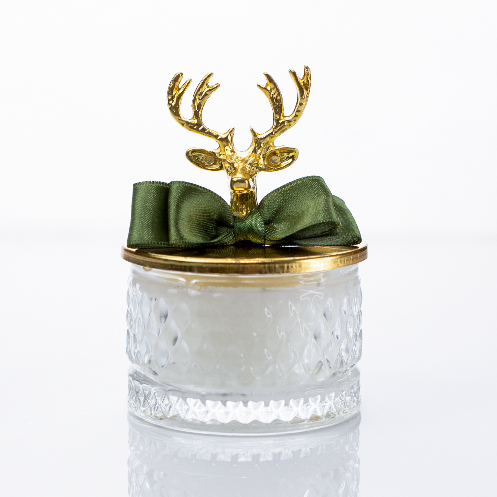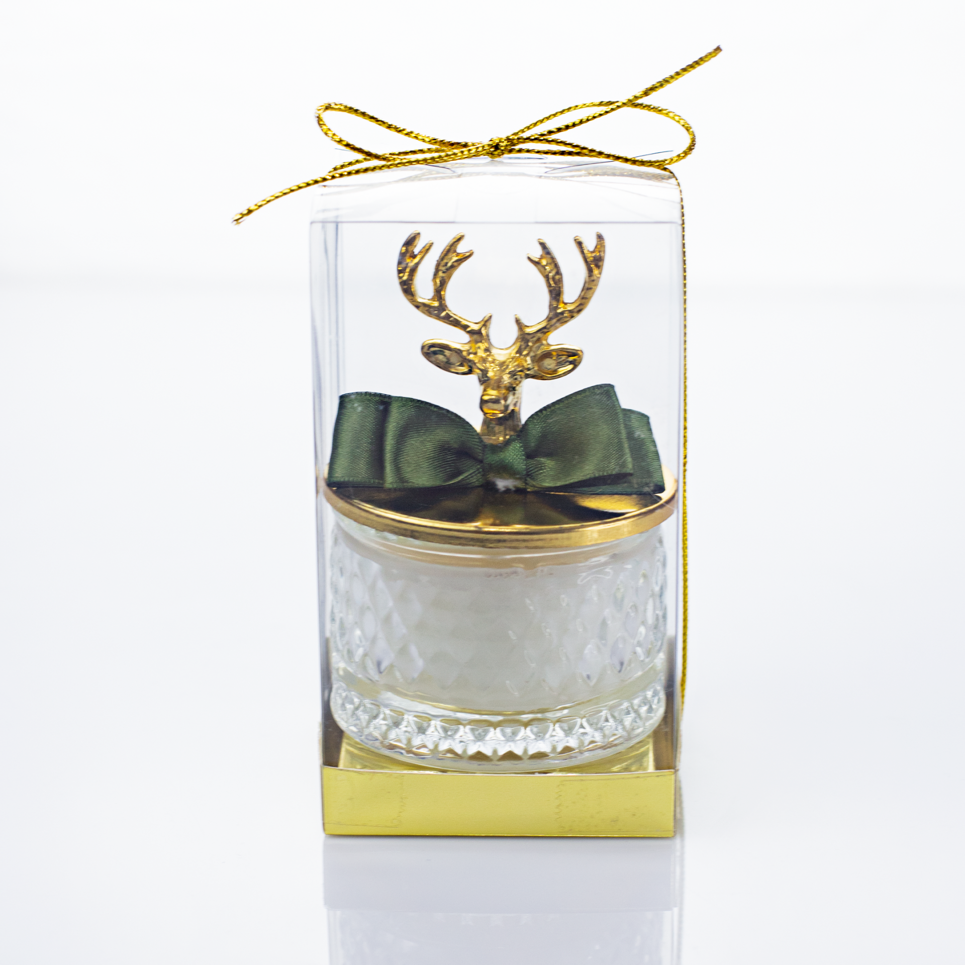 Geyik figürlü metal kapak detayı ve baklava desen cam tasarımı ile yılbaşı konseptine uygun estetik bir görünüm sağlar. Yeni yıl masa üstü dekoru, yılbaşı mum süsü ve konsept hediye seti tamamlayıcısı olarak kullanılabilir. Şeffaf asetat kutulu sunumu sayesinde organizasyonlarda hazır hediyelik olarak dağıtıma uygundur.