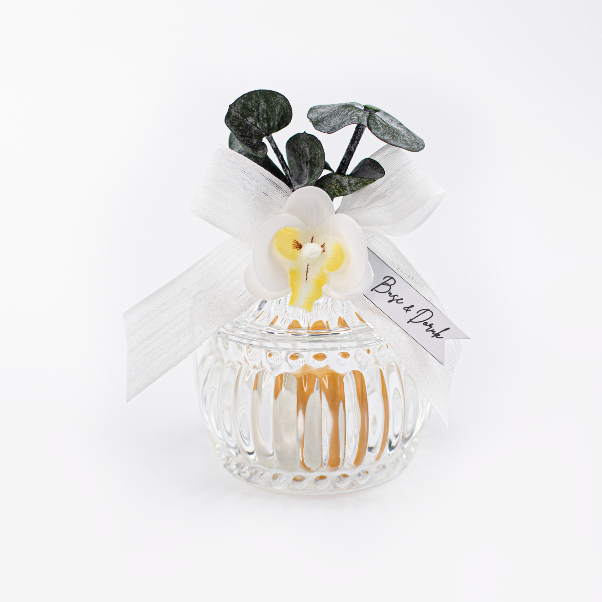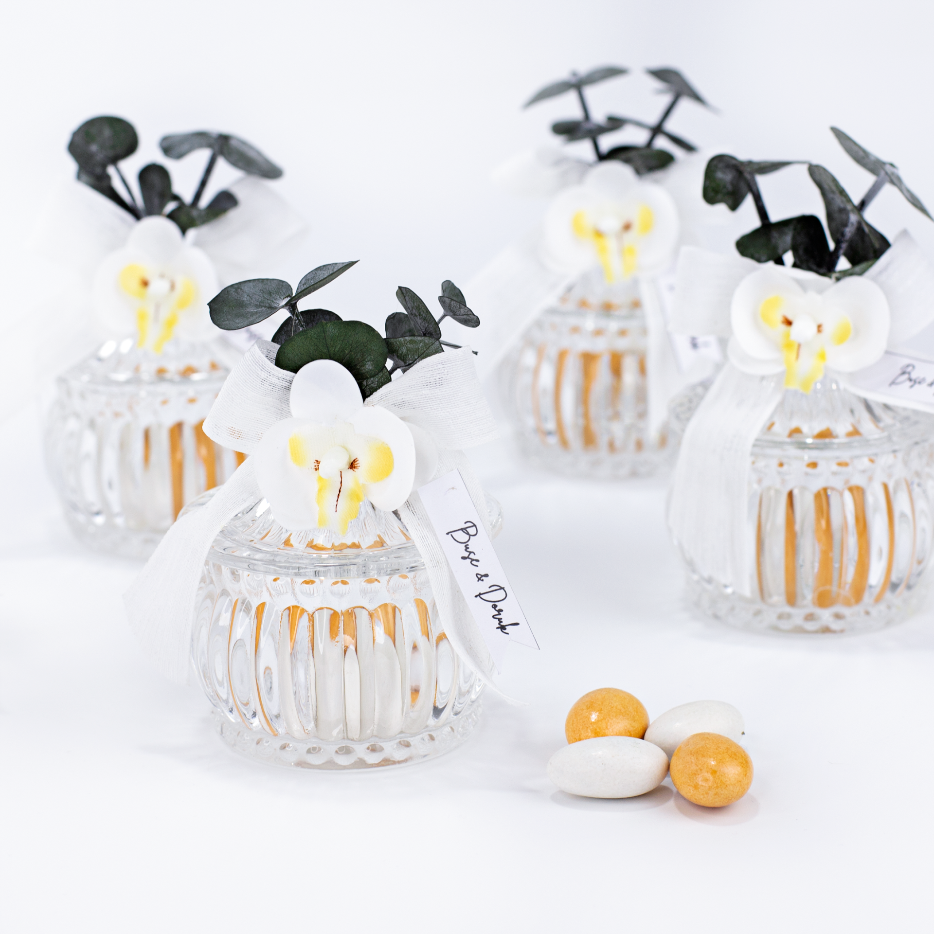 Orkide çiçek detaylarıyla süslenen cam şekerlik, zarif tasarımıyla söz, nişan, kına, nikah, düğün, mevlit ve özel davetlerde şık bir sunumluk veya hediyelik olarak tercih edilebilir. Dekoratif görünümü sayesinde evlerde şekerlik, lokumluk veya aksesuar amaçlı kullanılabilecek estetik bir üründür. İsteğe bağlı kişiselleştirme seçeneği ile isim, tarih veya özel not eklenerek organizasyonunuza özel hale getirilebilir ve anlamlı bir hediye alternatifi sunar.