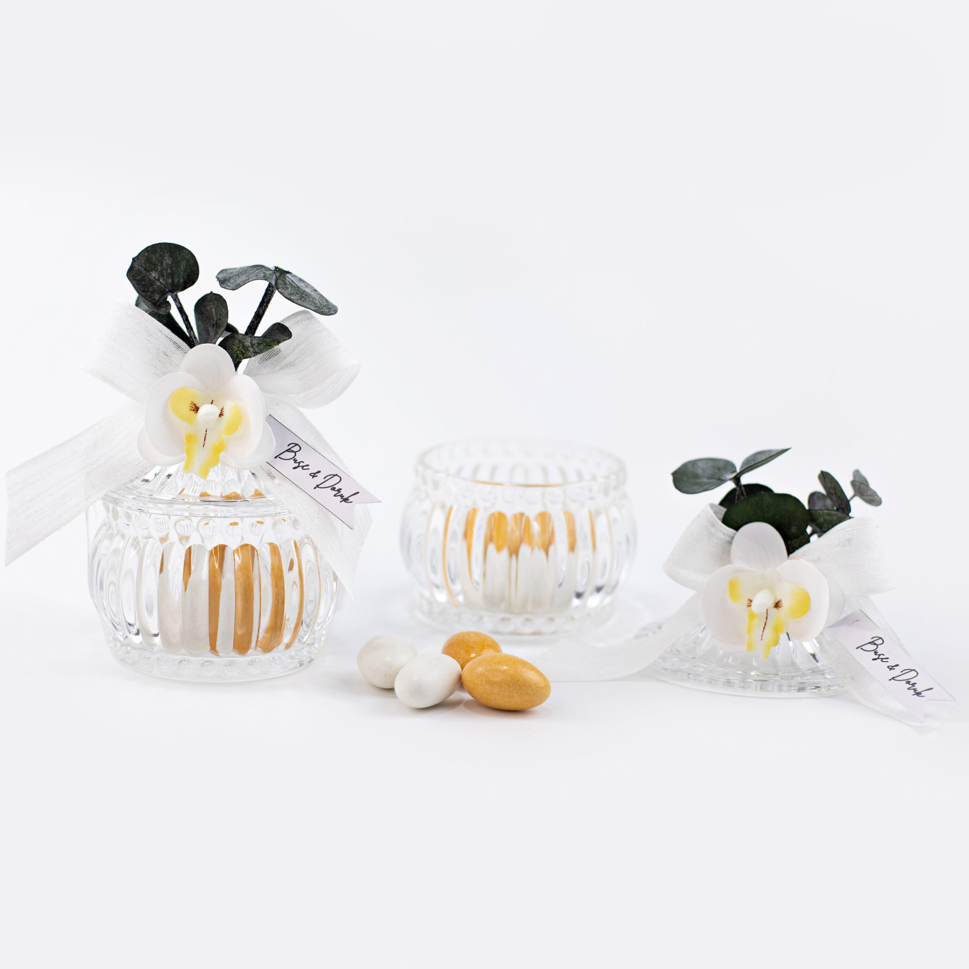 Orkide süslemeli cam şekerlik / drajelik