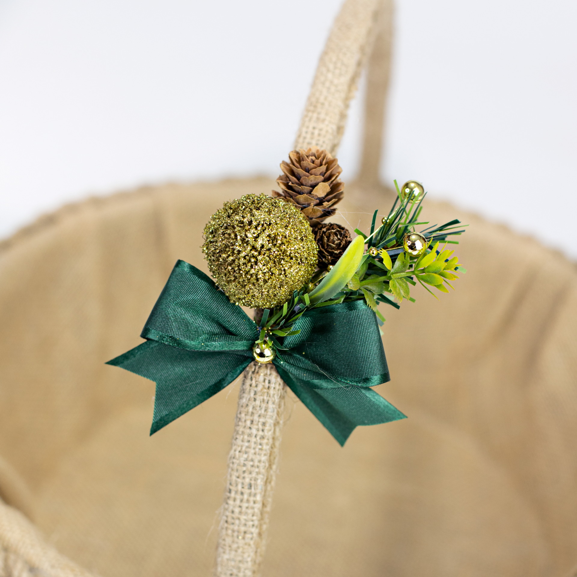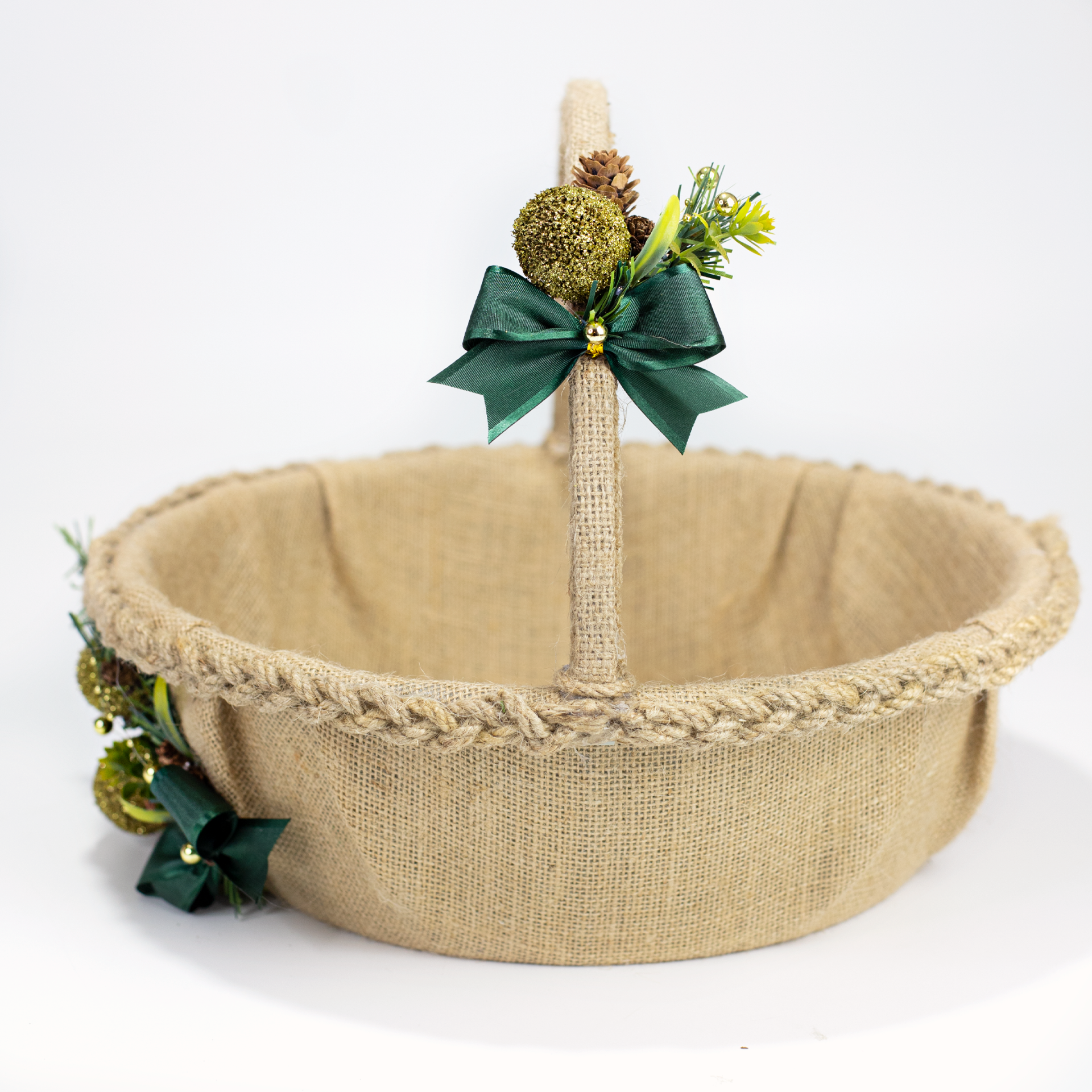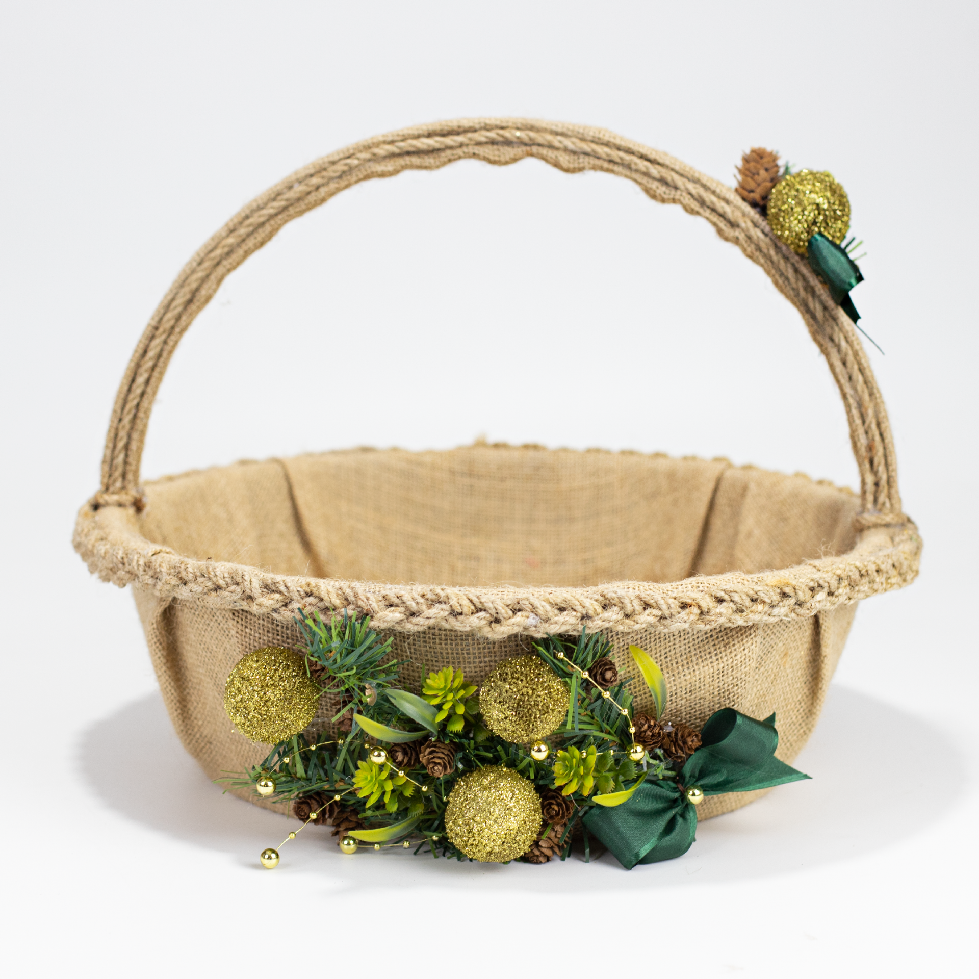 Yılbaşı konseptine uygun olarak hazırlanan jüt hediye sepeti, yeni yıl hediyeleri, kurumsal yılbaşı paketleri, hediye setleri ve özel gün organizasyonlarında kullanılabilecek dekoratif bir tamamlayıcıdır. Doğal dokusu sayesinde içerisine yerleştirilecek ürünlerle uyumlu bir görünüm oluşturur ve farklı konseptlerde rahatlıkla değerlendirilebilir. Yılbaşı dışında doğum günü, söz, nişan, özel davetler ve hediye sunumlarında da kullanılabilecek çok amaçlı bir seçenektir.