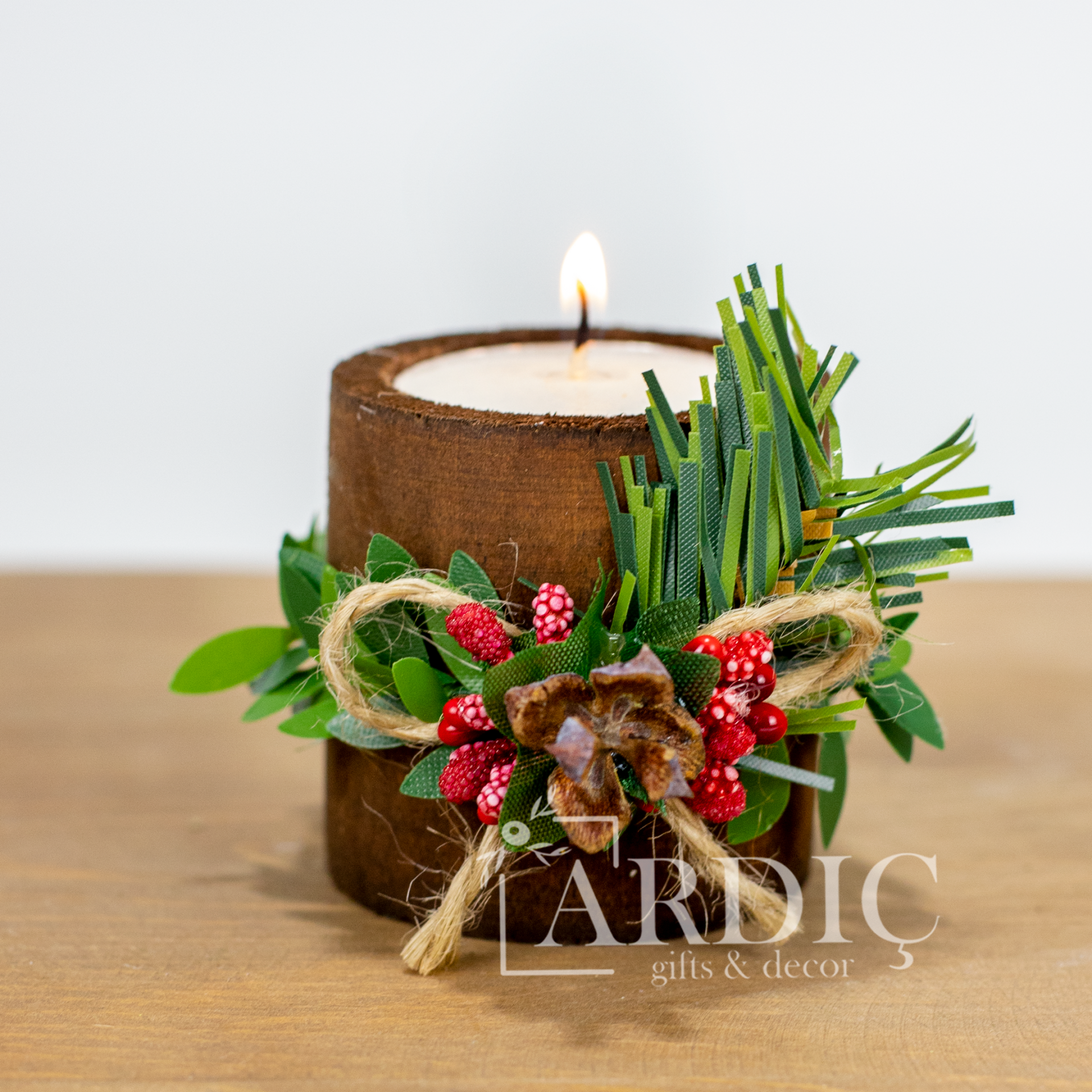 Doğal kütük görünümlü yılbaşı temalı mum, sıcak ve rustik tasarımıyla hem ev dekorasyonunda hem de hediye alternatifi olarak tercih edilebilecek şık bir üründür. Doğal ahşap görünümü sayesinde yaşam alanlarınıza hoş bir atmosfer katar ve özel günlerde anlamlı bir dekoratif tamamlayıcı olur. Yılbaşı kutlamaları, davetler ve çeşitli organizasyonlarda dekoratif kullanım için de uygundur.